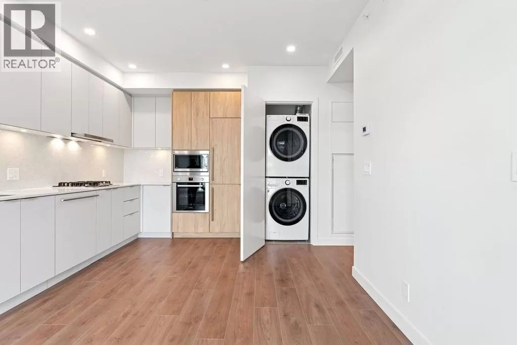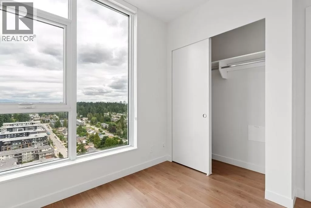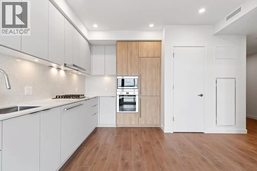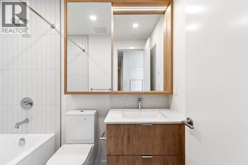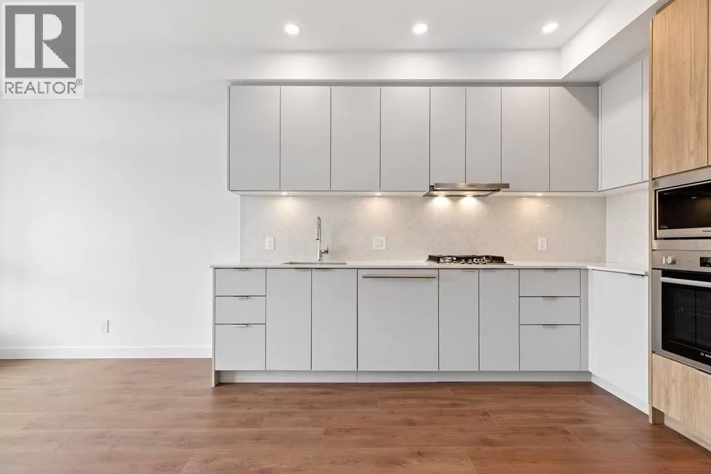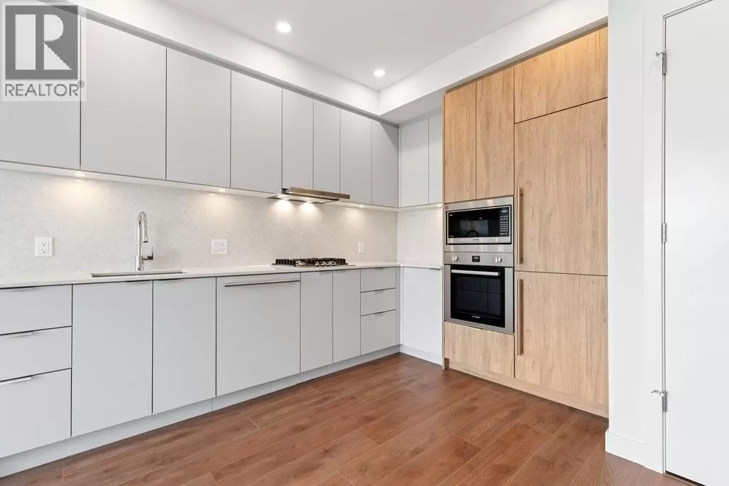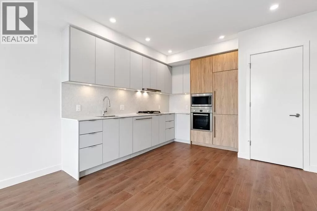 This brand new 535 sf 1-bedroom, 1-bathroom unit features an 80 sf covered balcony, 9' ceilings, laminate wood floors, and in-suite heating and cooling (system only). Enjoy stunning views of Coquitlam parks, Fraser River, and Surrey cityscape. The foyer offers a coat closet and space for shoe racks. A rectangular living-dining area opens to the balcony. The kitchen boasts two-toned cabinetry, quartz countertops with matching backsplash, under-mount stainless steel sink, pot lights, under-cabinet lighting, and stainless steel appliances including a gas cooktop. The bright bedroom offers large windows and views. The 4-piece bath includes quartz counters, soaker tub with shower, and wood-accented vanity. Rent includes one parking stall and a bike locker. (id:27476)