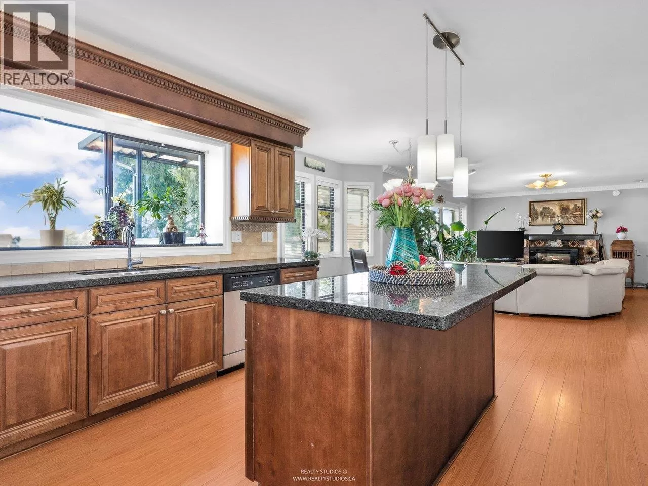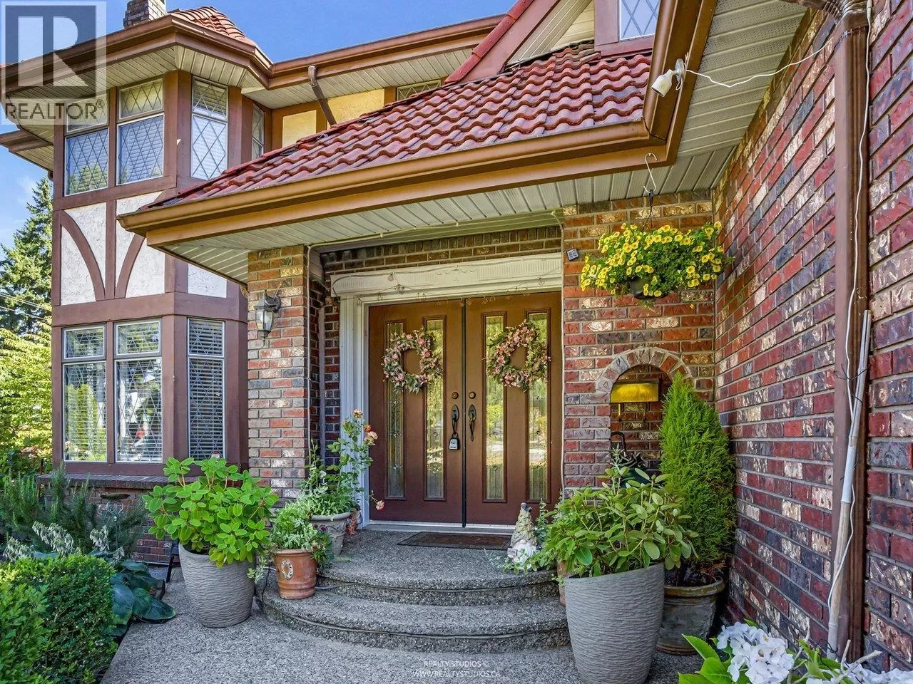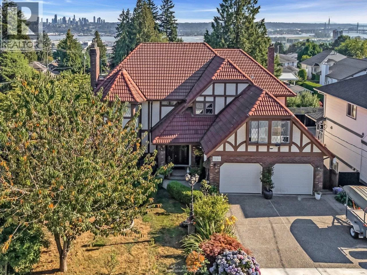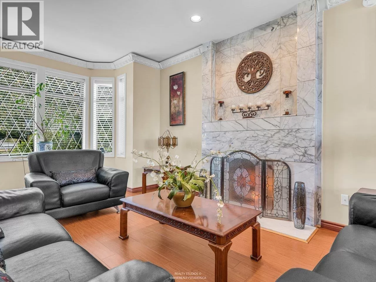Welcome to this charming Tudor-style home with stunning south-facing views of the Fraser River! This 4700 square ft home offers both elegance and functionality, featuring a grand foyer with a spiral staircase. Upstairs, you'll find 4 spacious bedrooms, including a master suite with a cozy reading area and fireplace. The kitchenfeature granite counters with stainless steel appliances opens to a large family room. The walk-out basement boasts a 2-bedroom suite with separate entry, plus a 1-bedroom suite, perfect for mortgage helpers. With a beautifully landscaped garden, it's ideal for entertaining. Close to shopping, golf, and restaurants, skytrain and highway! (id:27476)