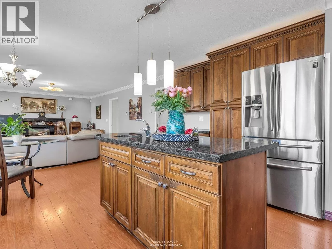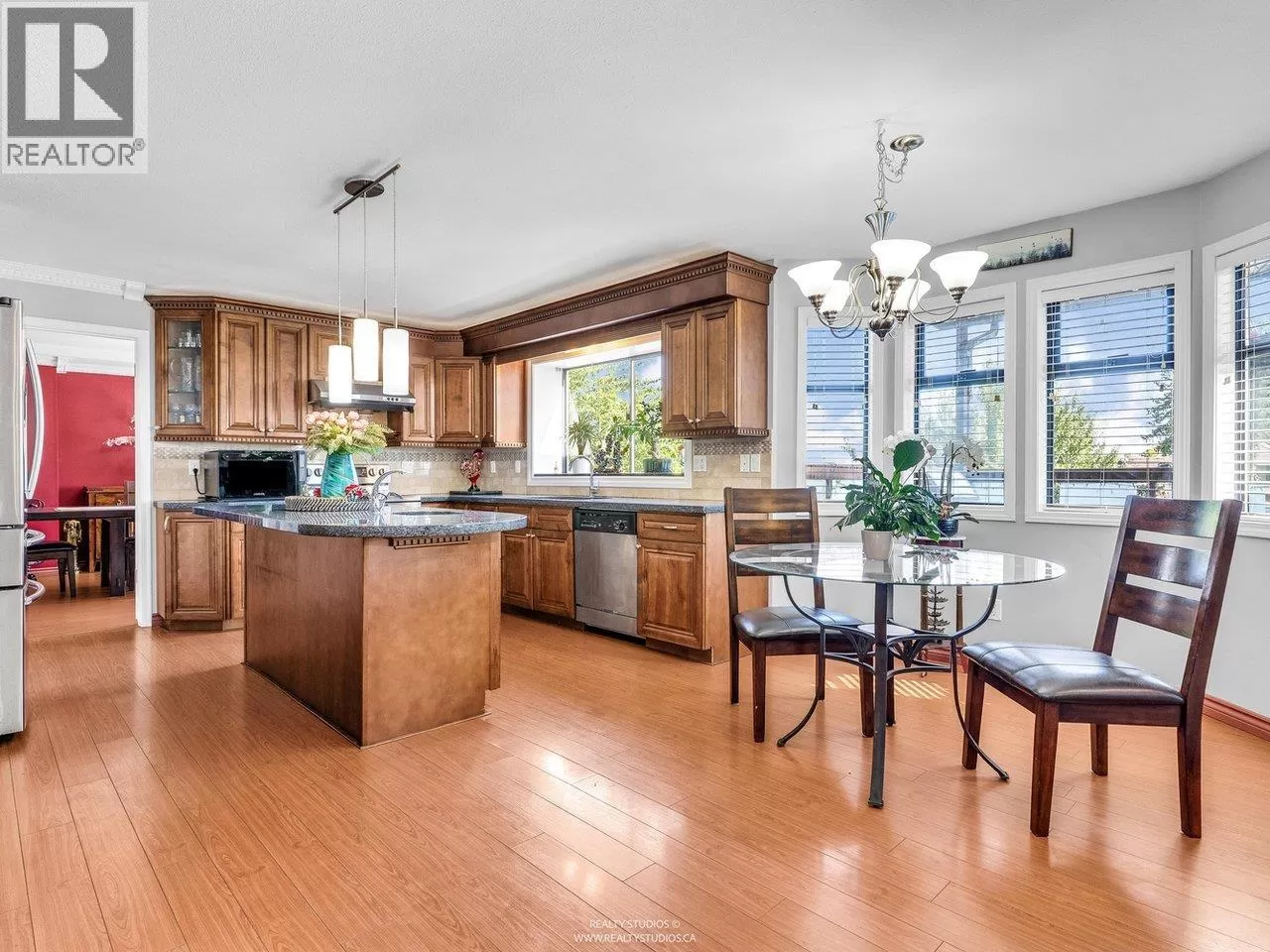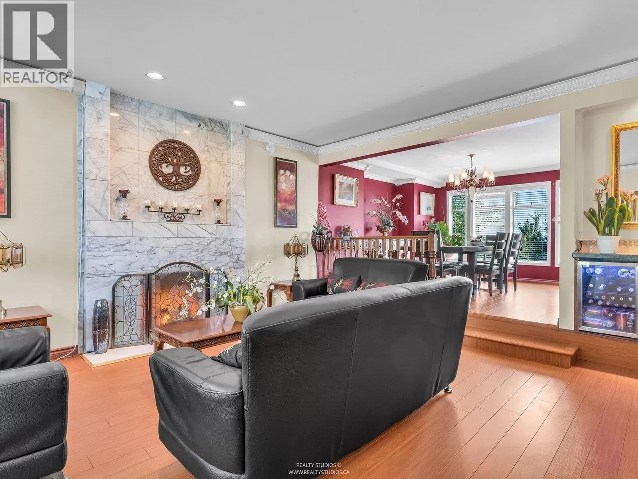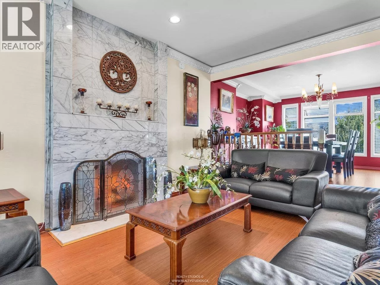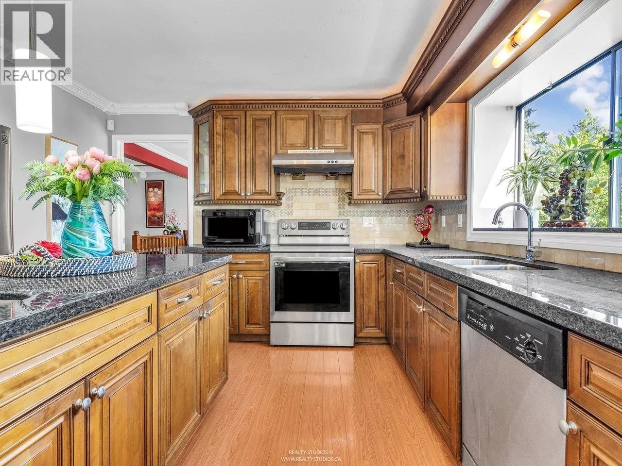 Welcome to this charming Tudor-style home with stunning south-facing views of the Fraser River! This 4700 square ft home offers both elegance and functionality, featuring a grand foyer with a spiral staircase. Upstairs, you'll find 4 spacious bedrooms, including a master suite with a cozy reading area and fireplace. The kitchenfeature granite counters with stainless steel appliances opens to a large family room. The walk-out basement boasts a 2-bedroom suite with separate entry, plus a 1-bedroom suite, perfect for mortgage helpers. With a beautifully landscaped garden, it's ideal for entertaining. Close to shopping, golf, and restaurants, skytrain and highway! (id:27476)