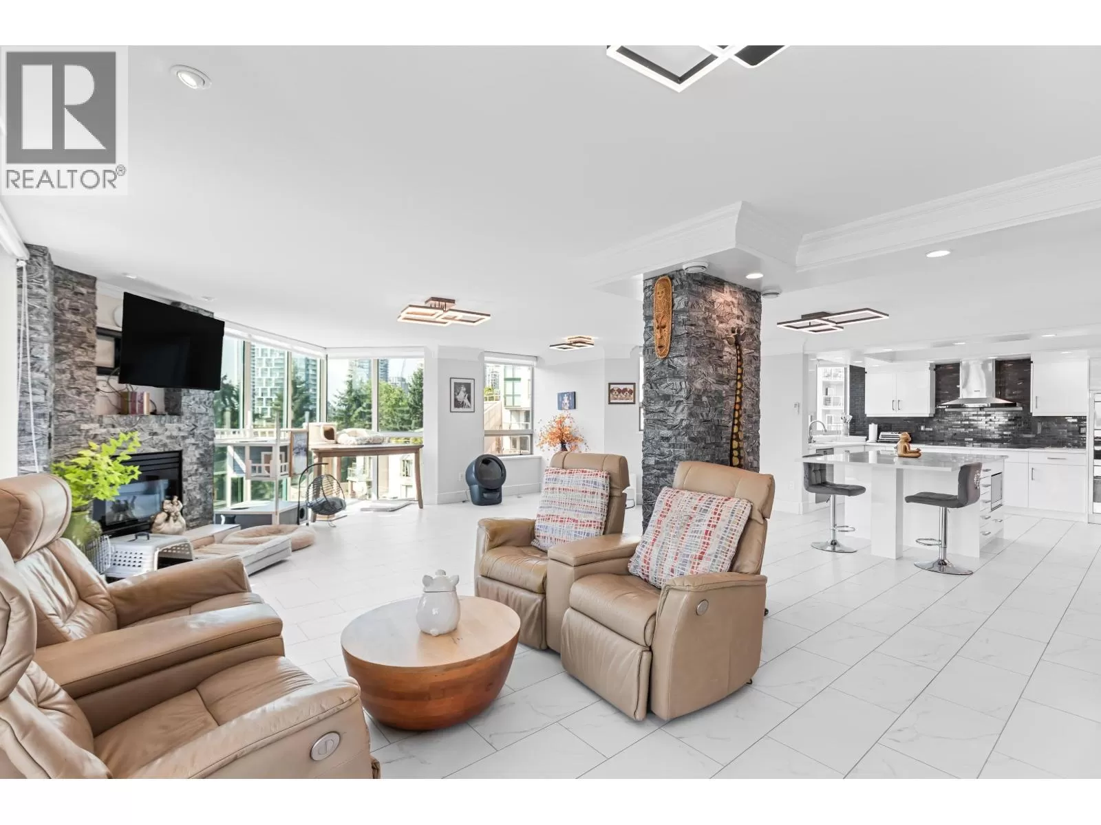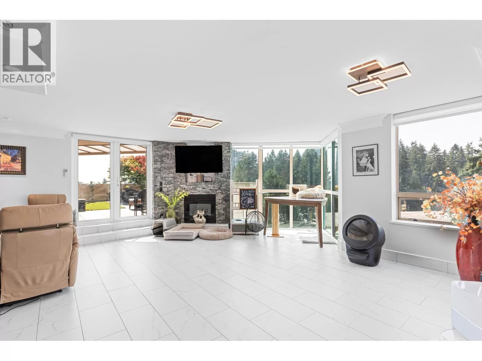 Prestigious 3,654 SF Bosa-built Apartment with 1,800 SF private patio and breathtaking mountain views. Ideal for multigenerational living or a luxury work-from-home lifestyle. 5 spacious bedrooms, 3 full baths, 3 fireplaces, full A/C, and excellent Feng Shui with natural light and open layout. Gourmet kitchen with Wolf steam + convection ovens, Miele dishwasher, LG ThinQ fridge, wine & beverage fridges, and quartz counters. Spa-inspired ensuite with bidet, rain shower, double vanity, and heated floors. Includes 5 secure parking stalls and 3 full-height storage lockers (combined into 1). Steps to SkyTrain, Lafarge Lake, top schools, and Coquitlam Centre. Call your Realtor for a private viewing. (id:27476)