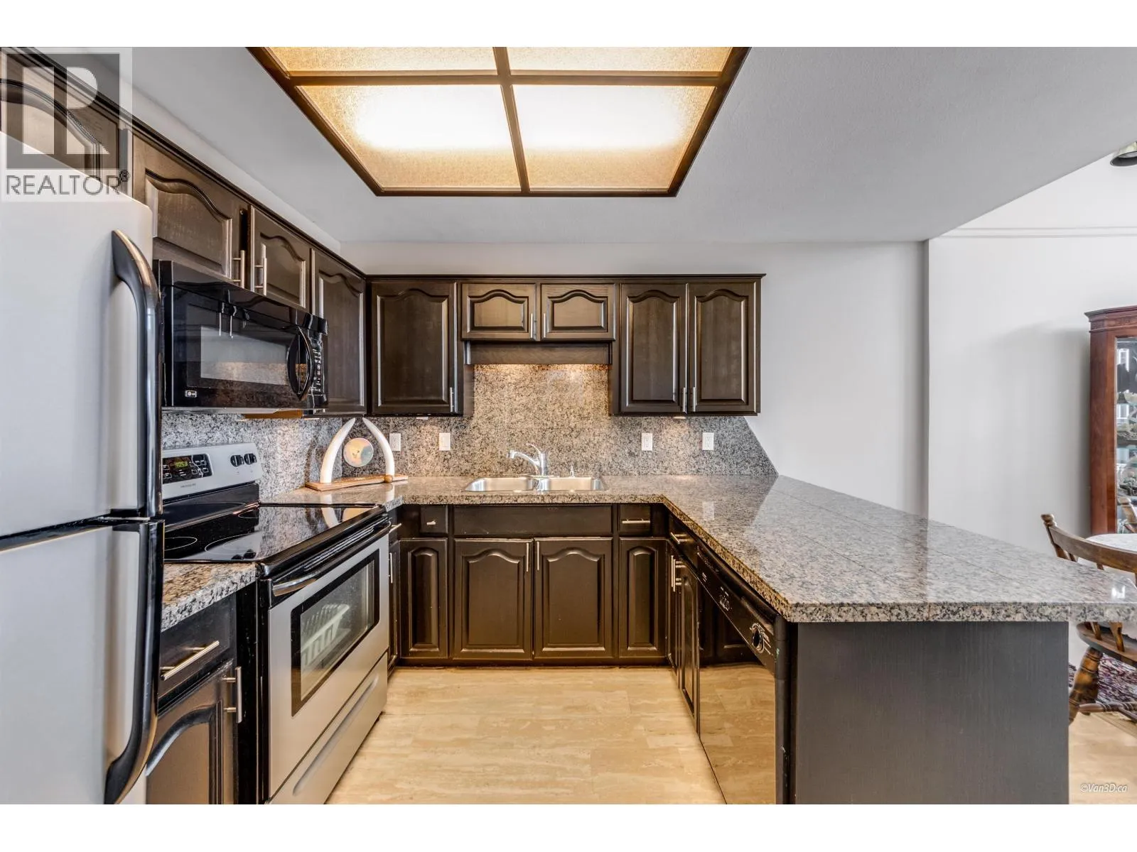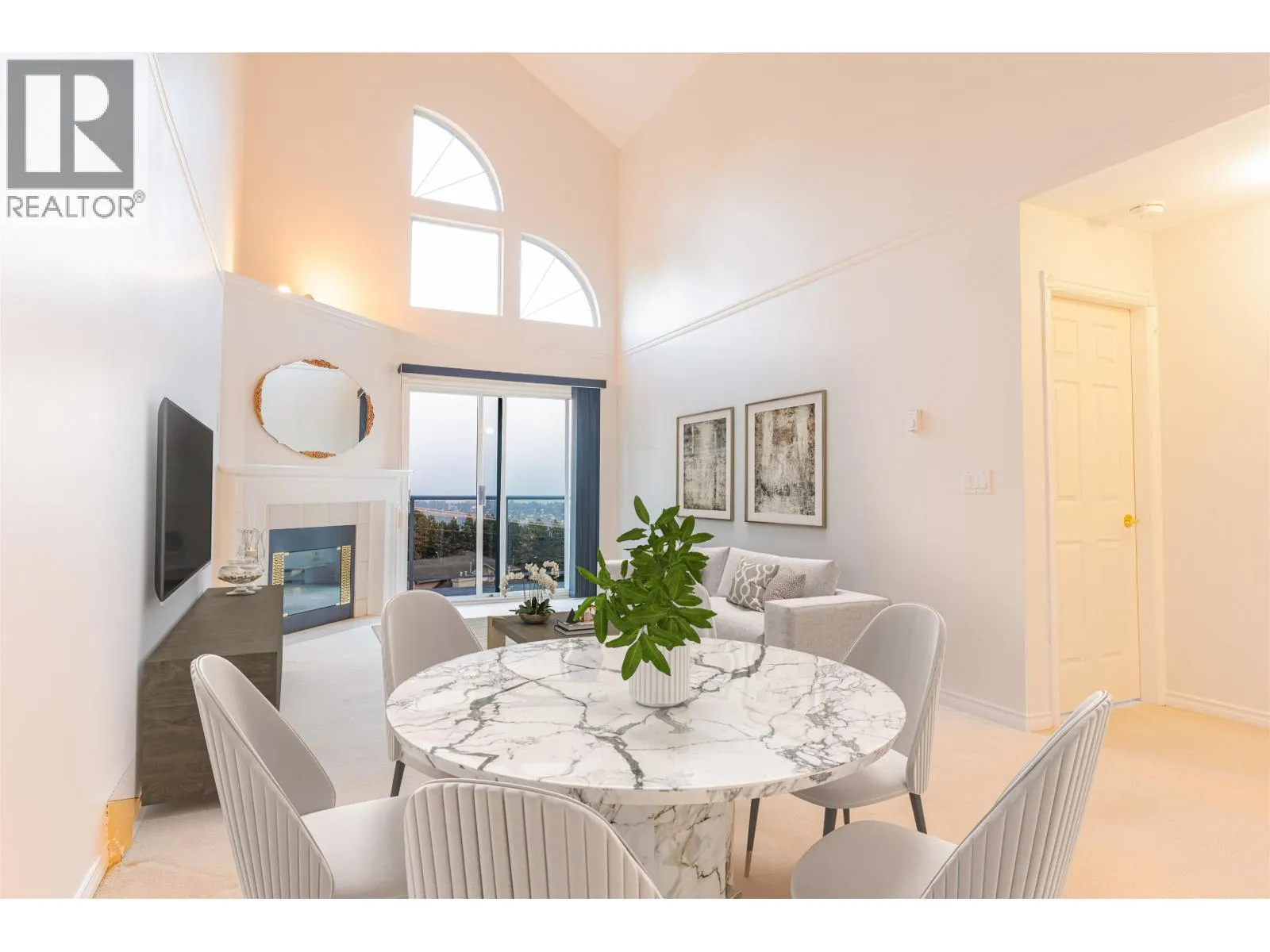 ONLY home available in the whole development! Penthouse Corner unit in adult oriented building with breathtaking mountain & city views from every window. Freshly painted and move in ready, this nearly 1,200 square ft home features a spacious bedroom with double closets, full bath and a bedroom sized loft ( 15' x 13') perfect as a second bedroom or rec room. Highlights include soaring vaulted ceilings, in-suite laundry with ample storage and new washer/dryer, a private wrap-around balcony and a cozy gas fireplace. Nestled in a quiet 26 residence, owner oriented building in a prime Coquitlam location just steps to Starbucks, Save-On-Foods, restaurants, 1 24 hr. gym, shops & Mundy Park. Includes 1 parking & 1 locker. Age Restriction in place contact LR for details. (id:27476)