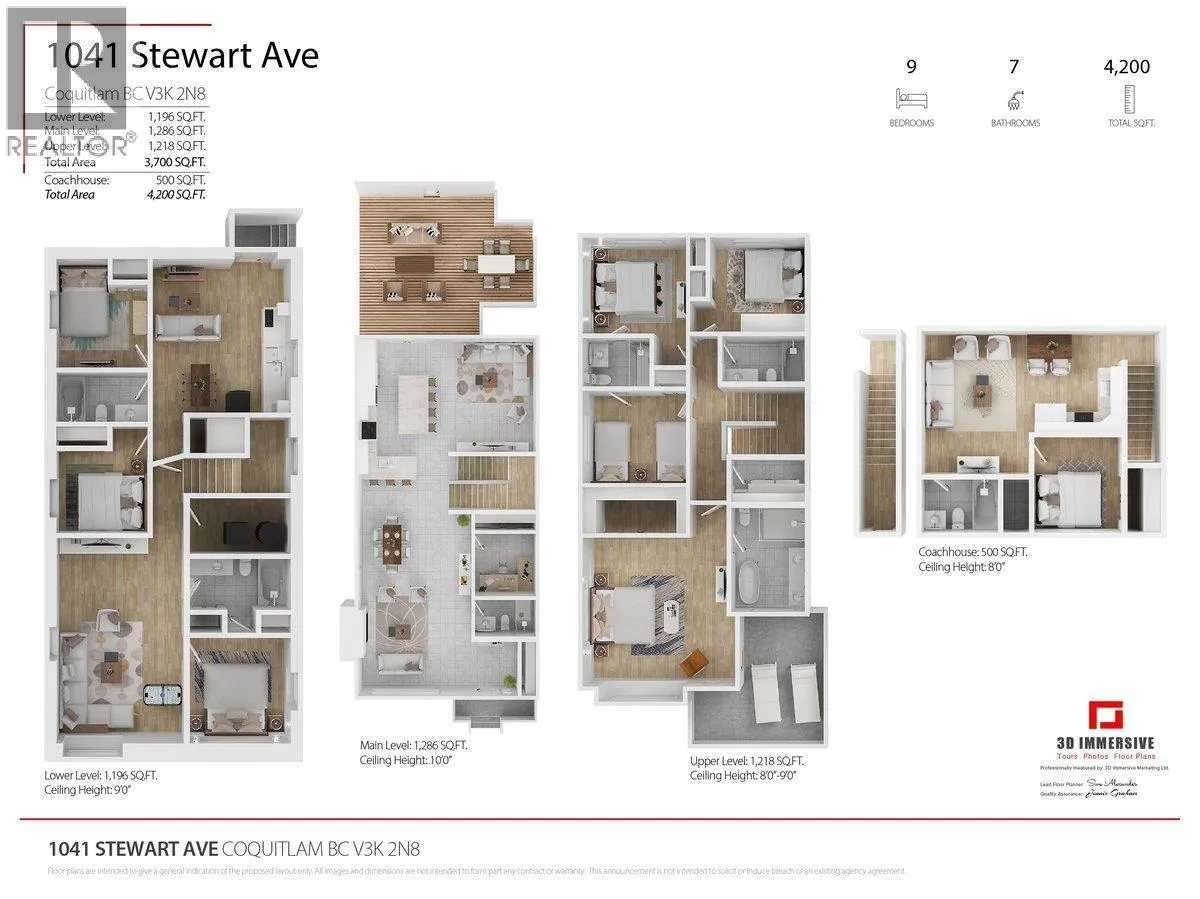 This extraordinary residence showcases 9 bedrooms, 7 bathrooms, and 4,200 square ft of refined living space, complete with a captivating coach home. Enjoy breathtaking city and water views, radiant in-floor heating, and exquisite exterior detailing. The chef's kitchen features custom cabinetry, Shelf Genie upgrades, stainless steel appliances, quartz countertops, spa-like baths, and soaring 10-ft ceilings. Recent upgrades include turf landscaping and a waterproof deck planking for added outdoor enjoyment. Mortgage helpers include a 1-bed coach home and separate 2-bed in-law suite, each with private entrances. Perfectly situated in Coquitlam, you'll have easy access to parks, all levels of schools, the Vancouver Golf Club, and transit. (id:27476)