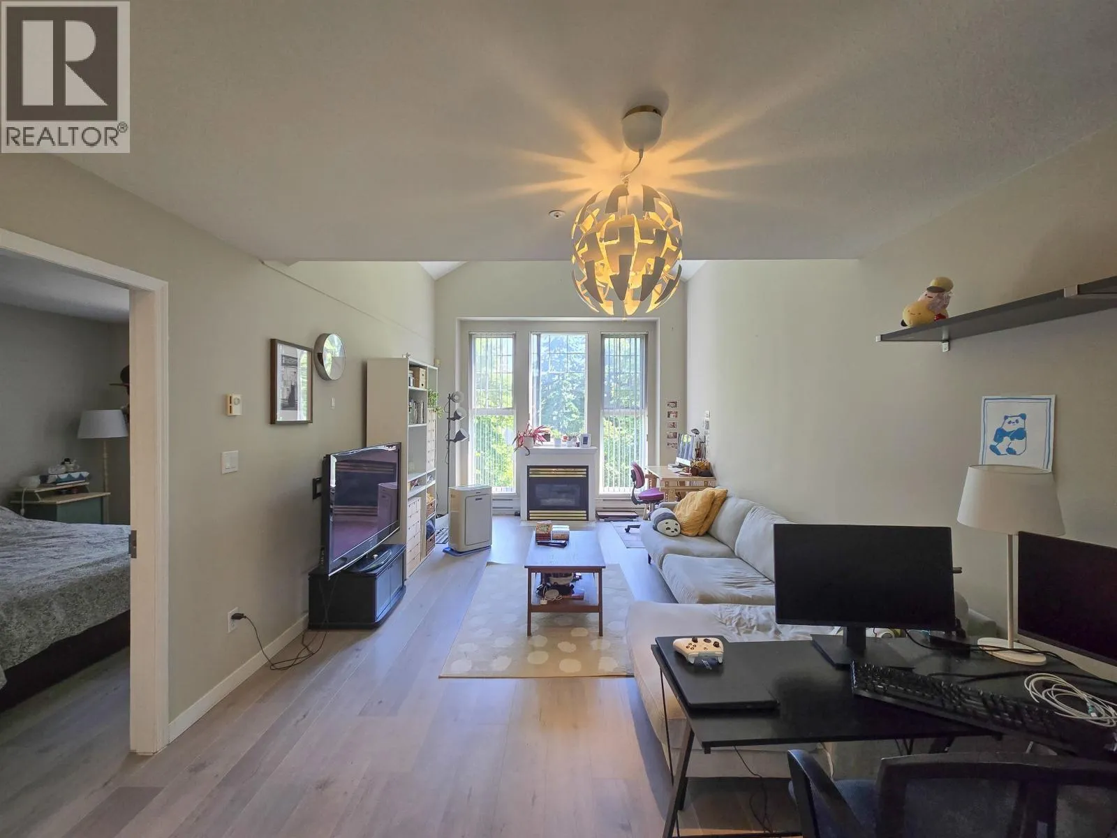 Airy top-floor unit in an amazing complex at an amazing location. The home is already large at 700SF, but the vaulted ceilings in the living room make the space feel truly huge. The deck is massive and gets plenty of sun, looking out over leafy green trees and oh-so-quiet Eastwood Street. The bedroom is a very good size with walk-through closet and the bathroom boasts both a bathtub and separate walk-in shower. The complex is a sprawling acreage covering almost an entire city block at the very heart of Coquitlam. Water features and lush green lawns throughout give it the feel of a resort holiday destination. There is an indoor pool, two hot tubs, a dry sauna and a large exercise centre. Lafarge Lake is one minute away. The SkyTrain stop is right there too. Full-size parking and storage. OVER 25% of strata fee goes to CRF. The exceptionally rare BC strata that actually attempts to avoid levies entirely. (id:27476)