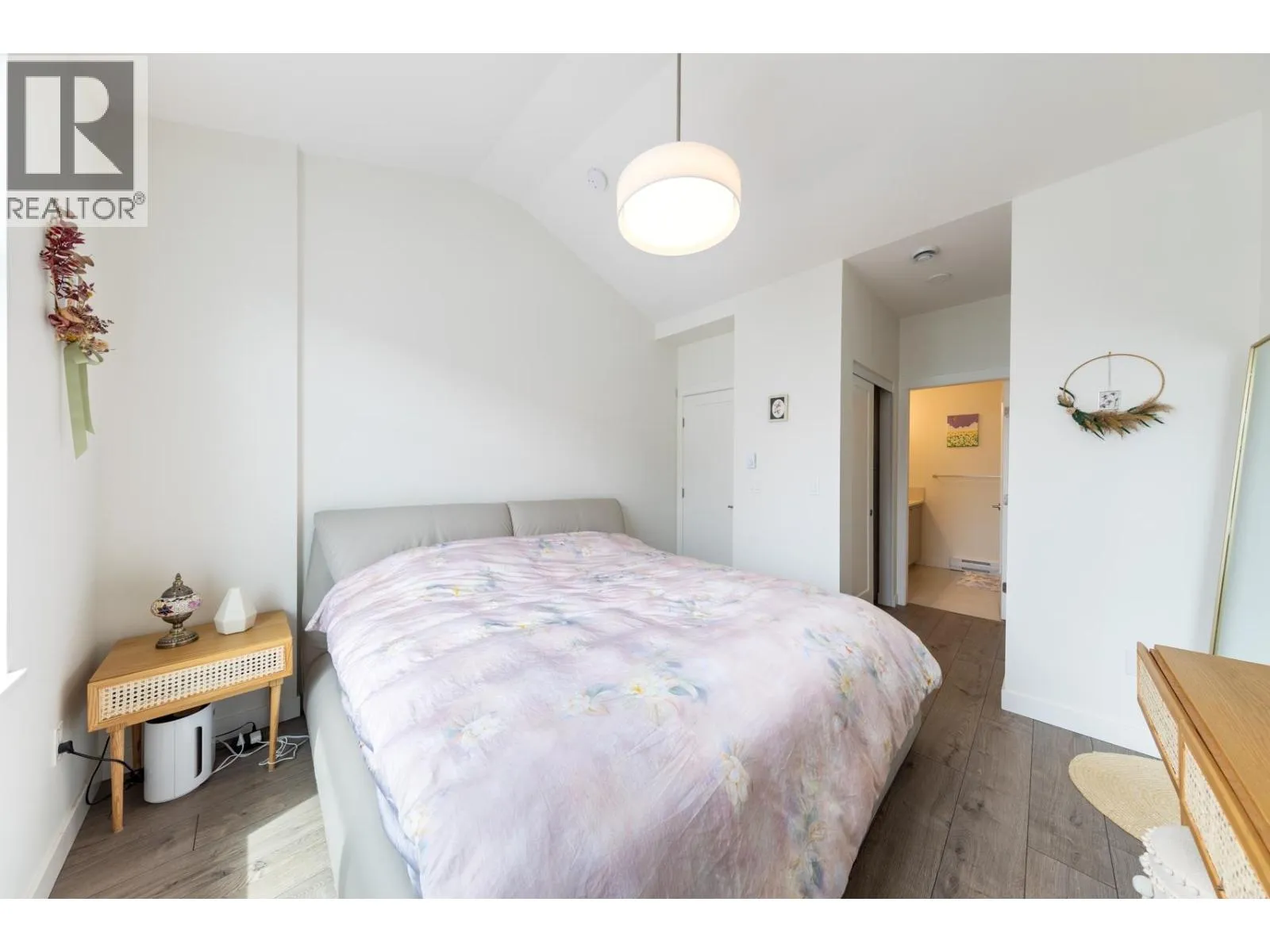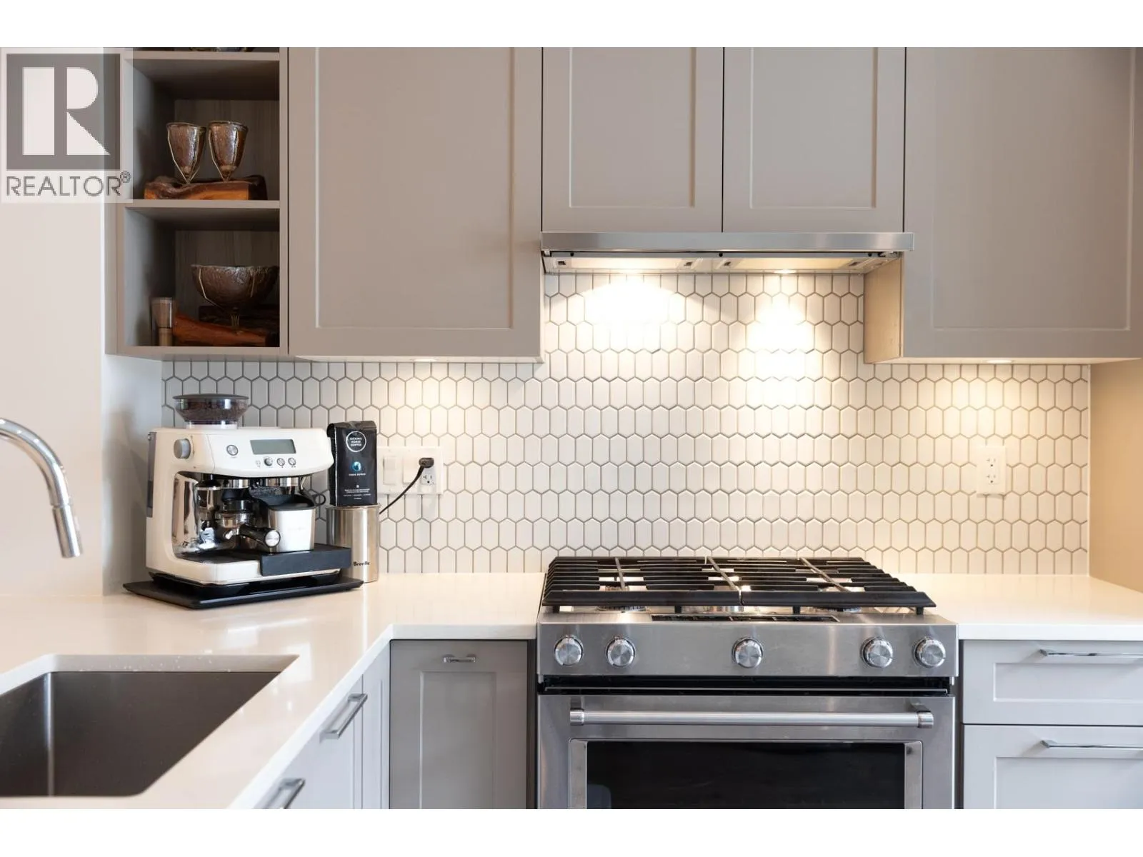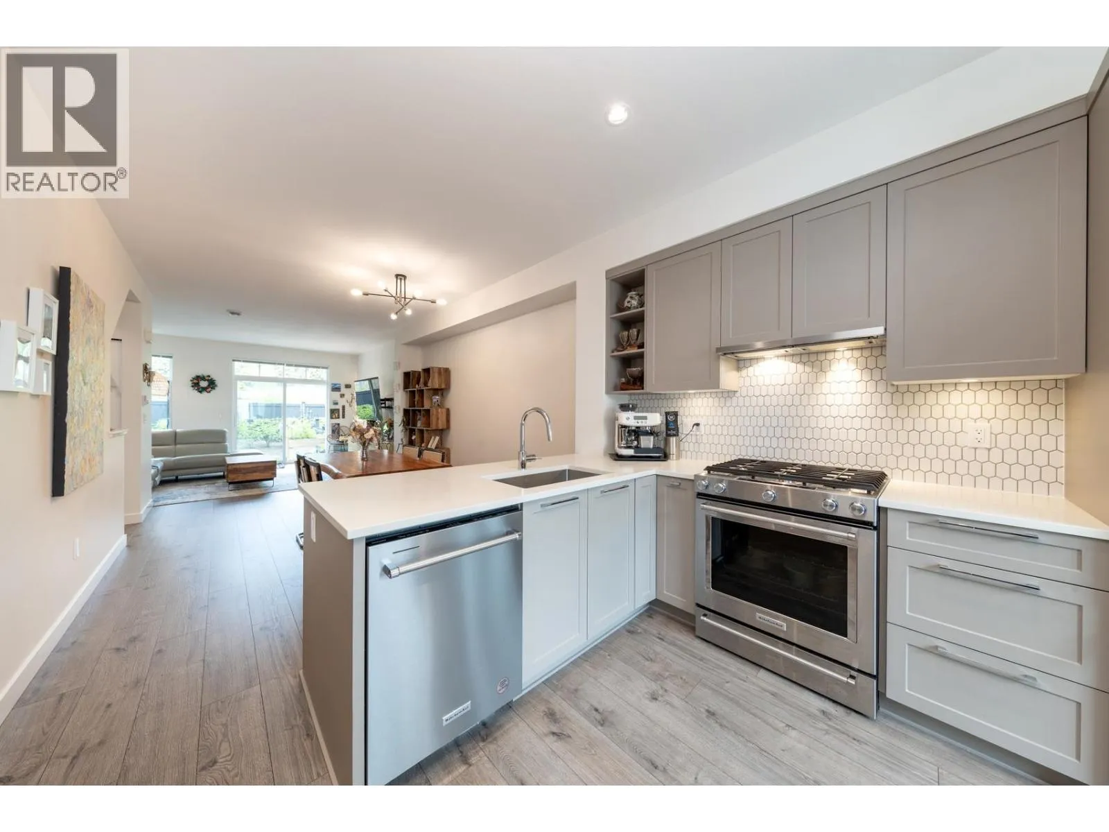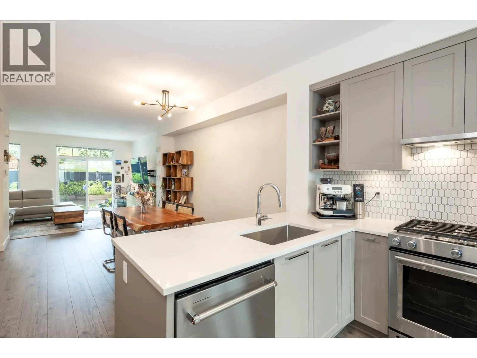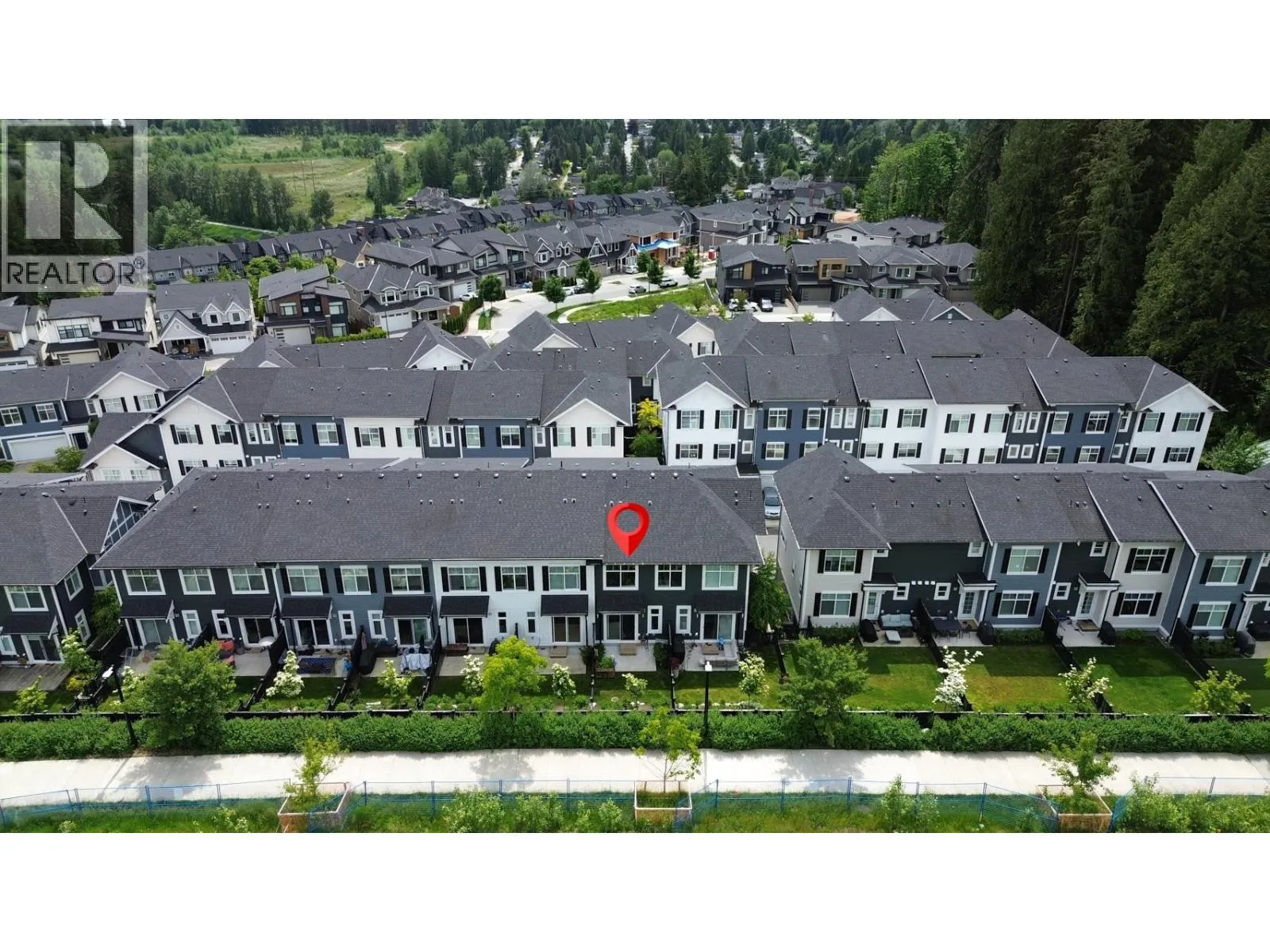 Welcome to this meticulously kept, nearly new townhome in the heart of Burke Mountain, Coquitlam. This home features a highly functional 3-bed, 3-bath layout with no wasted space, a private south/north orientation, and a massive backyard with greenbelt and mountain views. The main floor includes a spacious living and dining area, plus a gourmet oversized kitchen with a large island and KitchenAid stainless steel appliances. Upstairs offers three generous bedrooms, including a primary suite with a vaulted ceiling, walk-in closet, and an ensuite with double sinks.Upgrades include laminate flooring throughout, a finished garage with polyaspartic flooring, and convenient upstairs laundry.Located in a family-friendly community with easy access to schools and the future largest community cetre. (id:27476)