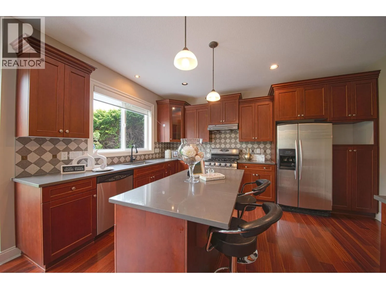 Beautifully maintained 5-bedroom home by award-winning Dan Perreault Homes Ltd. Features include Brazilian oak hardwood floors, a gourmet kitchen with maple shaker cabinets, stainless steel appliances, gas range, and a walk-through butler´s pantry to the spacious dining room. The great room boasts a stunning stone-faced gas fireplace, with a den nearby for quiet moments. Upstairs offers four generously sized bedrooms, while the fully finished basement provides a large rec room (with roughed-in kitchen plumbing), 5th bedroom, and 3-piece bath-perfect for family or suite potential. Enjoy year-round comfort with a high-efficiency furnace and heat pump. The level, fully fenced backyard is ideal for kids, pets, or a vegetable garden. A versatile floor plan with quality finishes throughout. (id:27476)