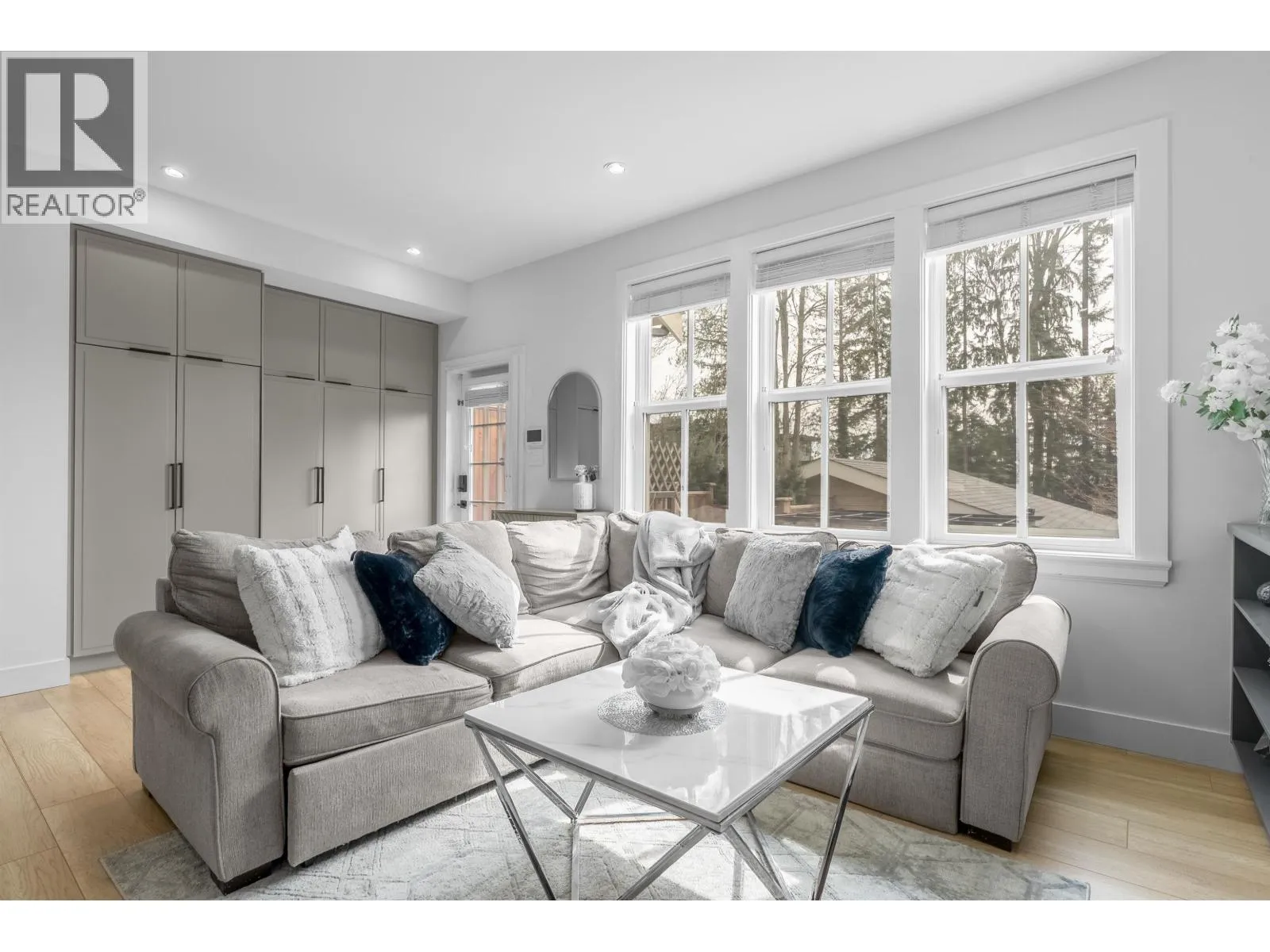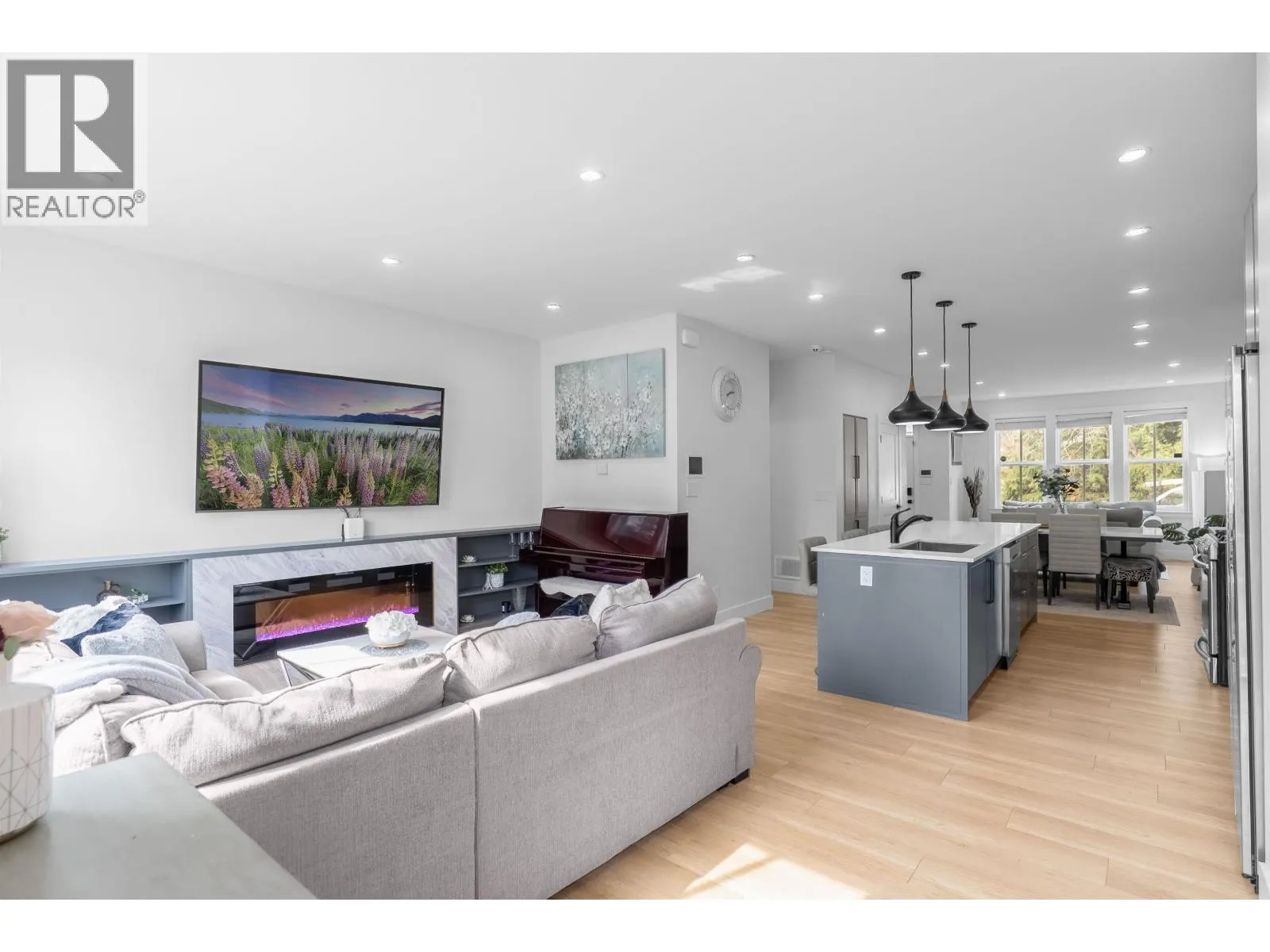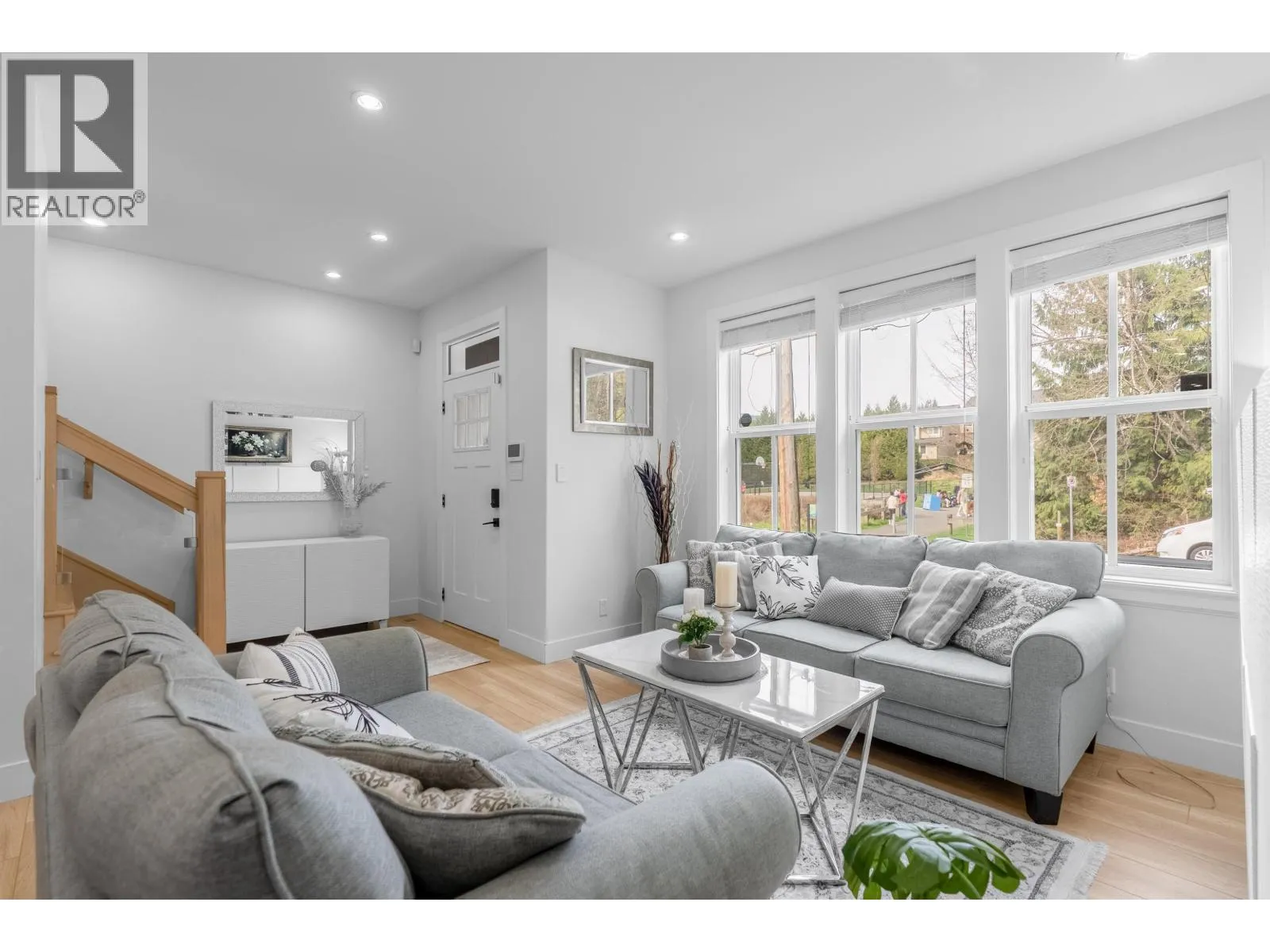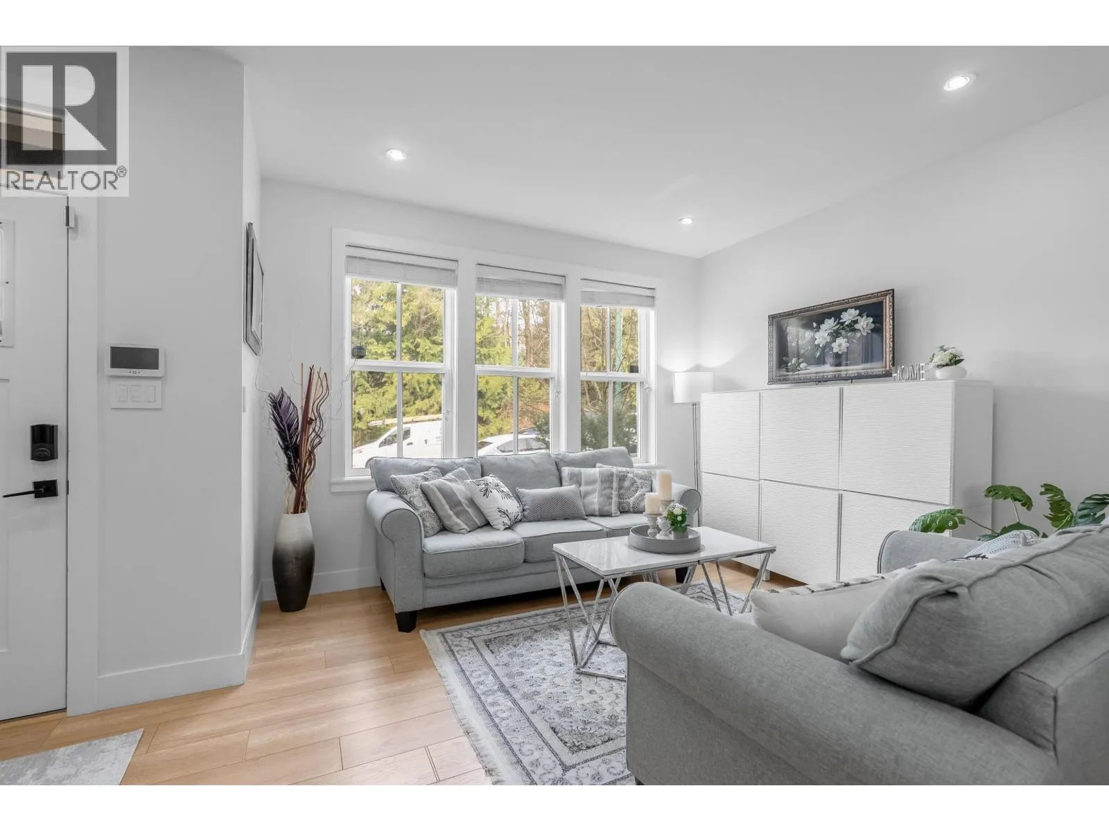 **NO STRATA FEES! Corner Unit Available. ** This modern row home in Burke Mountain features 4 bedrooms, 4 bathrooms, and a media room. The open layout includes a family room, living room, and formal dining room on the main floor, with 3 bedrooms and 2 bathrooms upstairs, and a guest bedroom with a full bathroom downstairs and a media room with a wet bar. The master bedroom has a stylish ensuite, feature wall, and walk-in closet. The property boasts a private yard with patio, three parking spaces, and street parking, all within a 5-minute walk to the elementary school and Queenston Park. Additional upgrades include air conditioning, home automation, a security system/camera, EV charging, central vacuum, paved backyard and more. Priced to Sell - Motivated Seller! (id:27476)