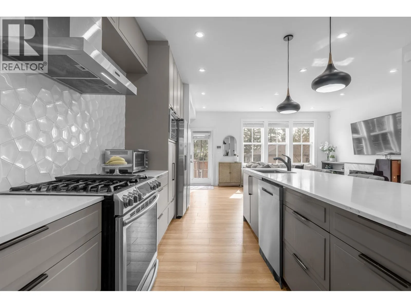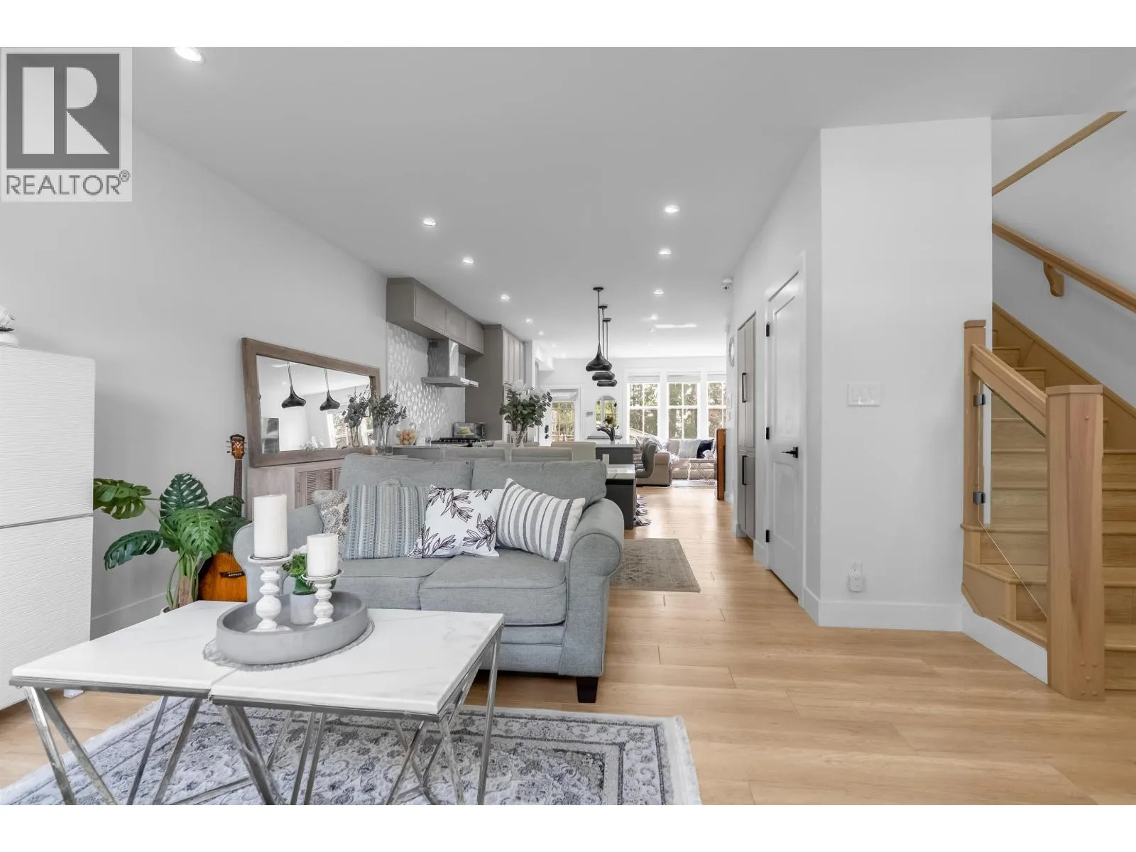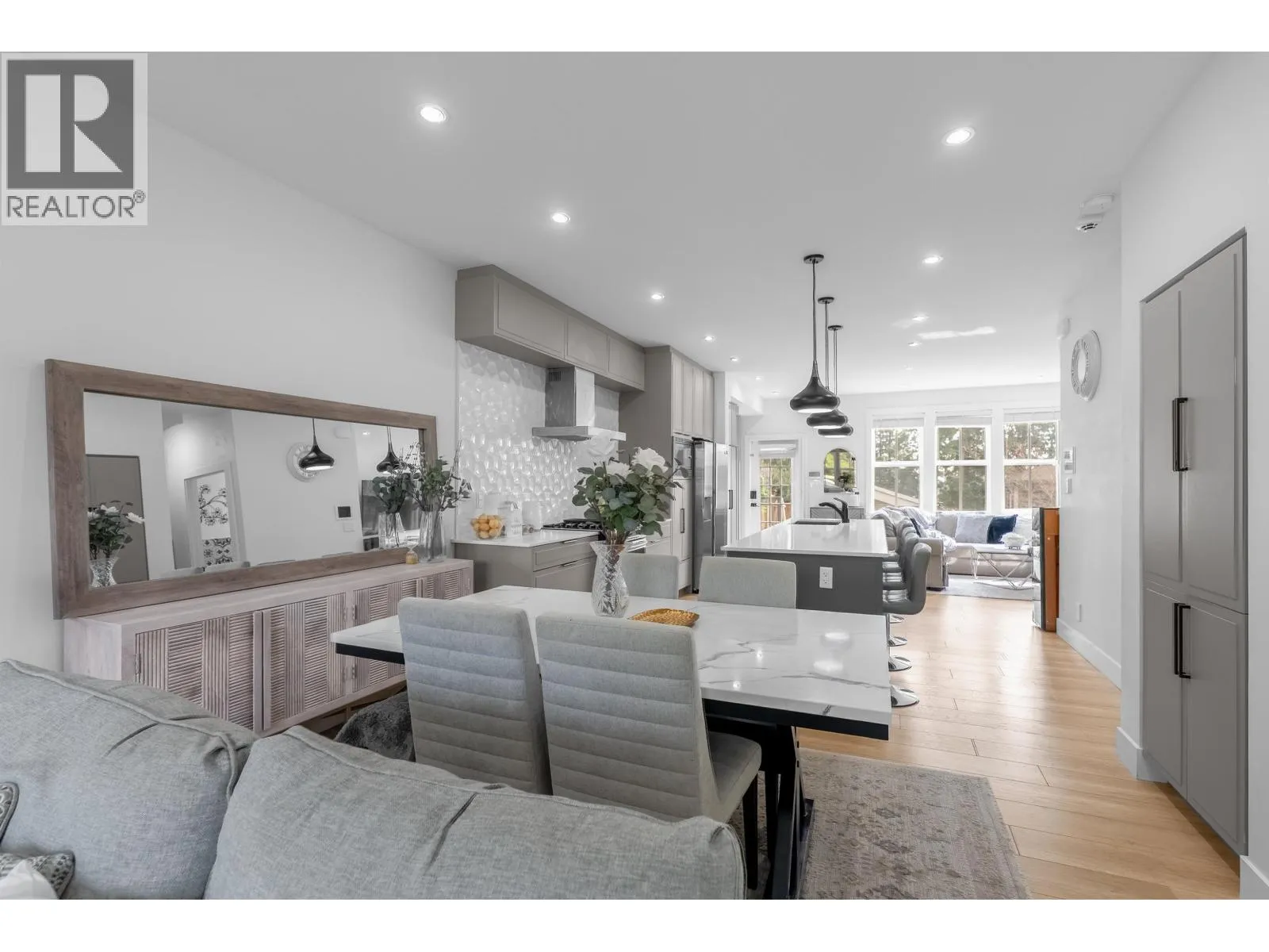 **NO STRATA FEES! Corner Unit Available. ** This modern row home in Burke Mountain features 4 bedrooms, 4 bathrooms, and a media room. The open layout includes a family room, living room, and formal dining room on the main floor, with 3 bedrooms and 2 bathrooms upstairs, and a guest bedroom with a full bathroom downstairs and a media room with a wet bar. The master bedroom has a stylish ensuite, feature wall, and walk-in closet. The property boasts a private yard with patio, three parking spaces, and street parking, all within a 5-minute walk to the elementary school and Queenston Park. Additional upgrades include air conditioning, home automation, a security system/camera, EV charging, central vacuum, paved backyard and more. Priced to Sell - Motivated Seller! (id:27476)