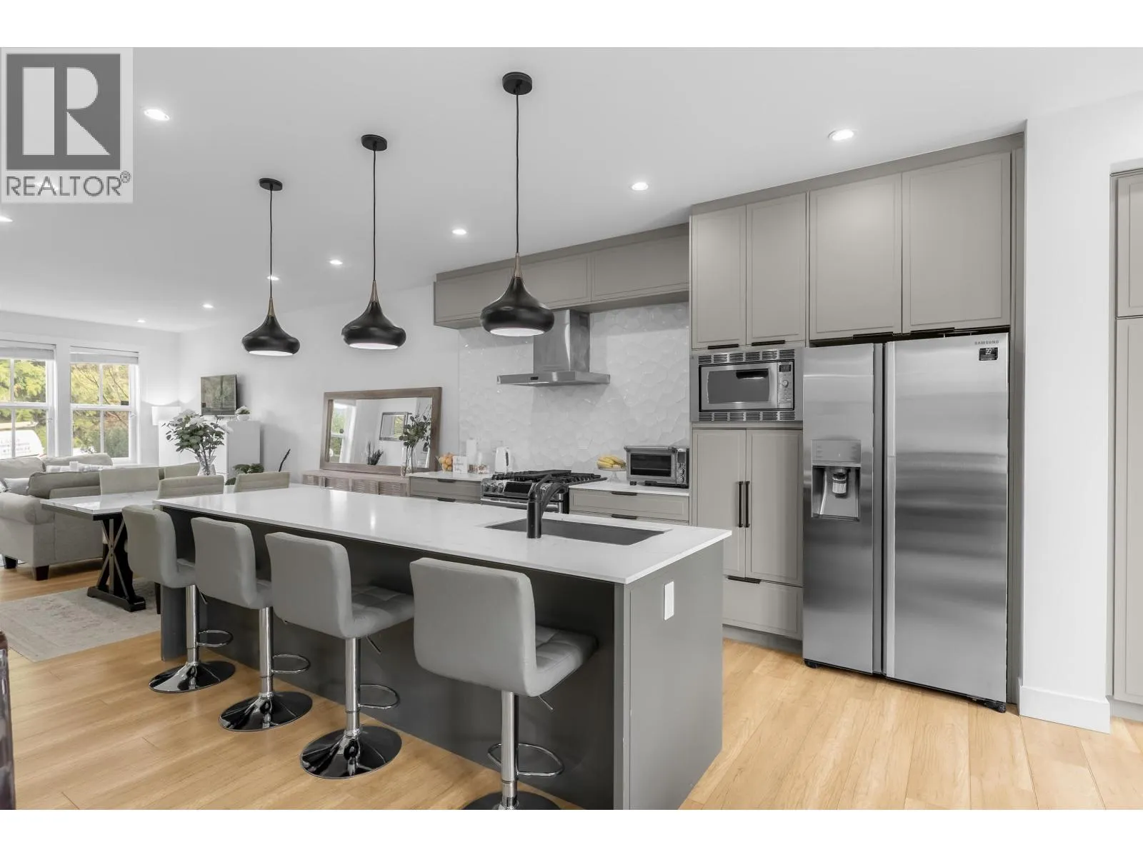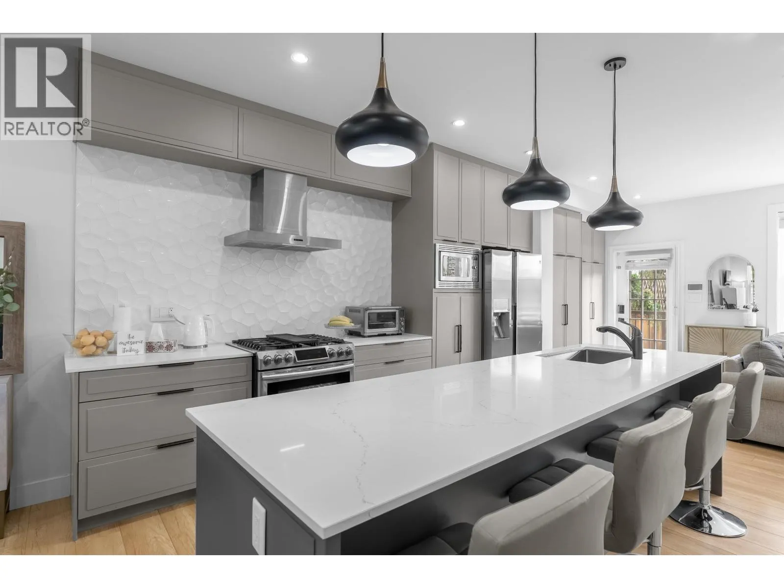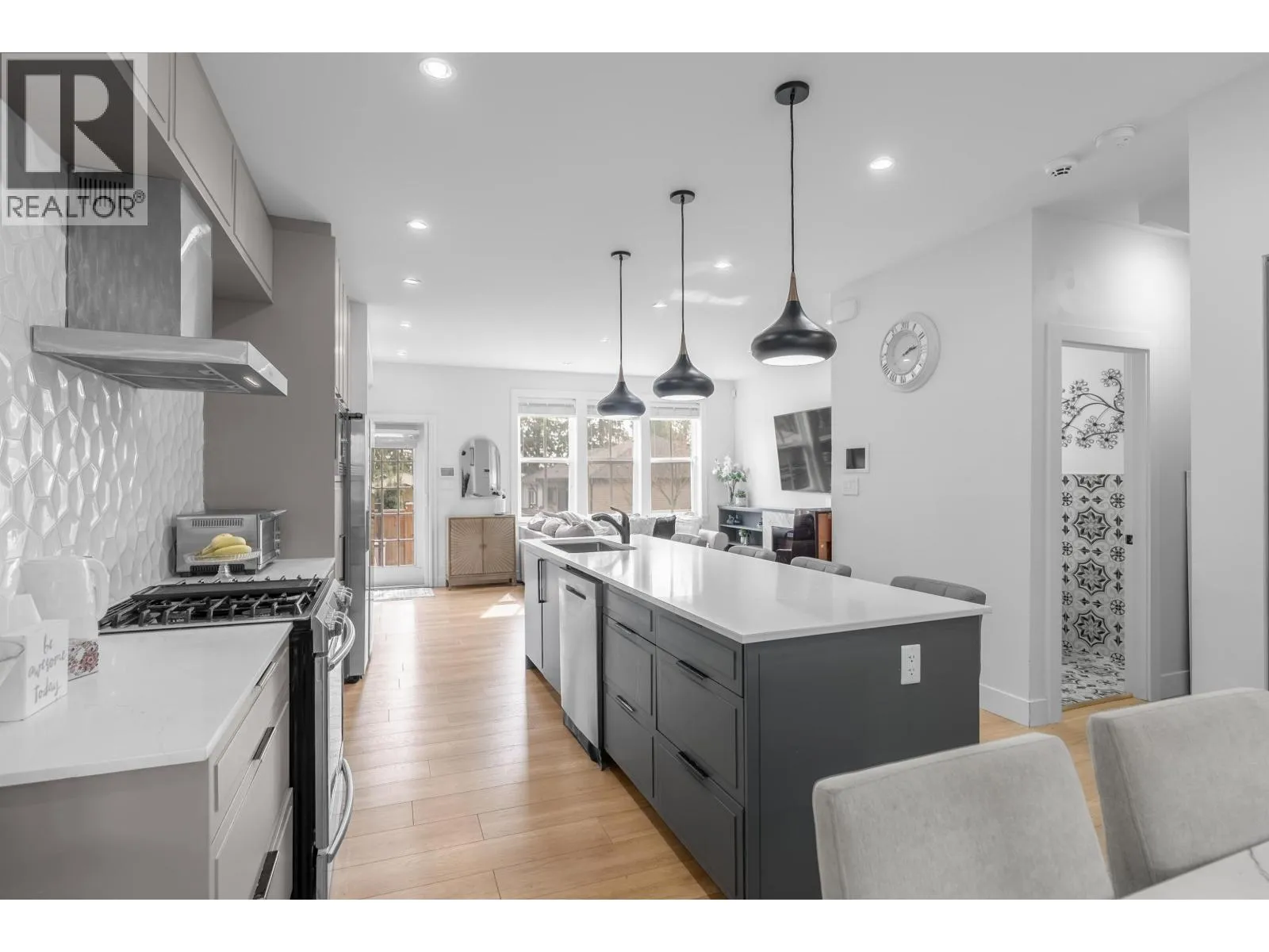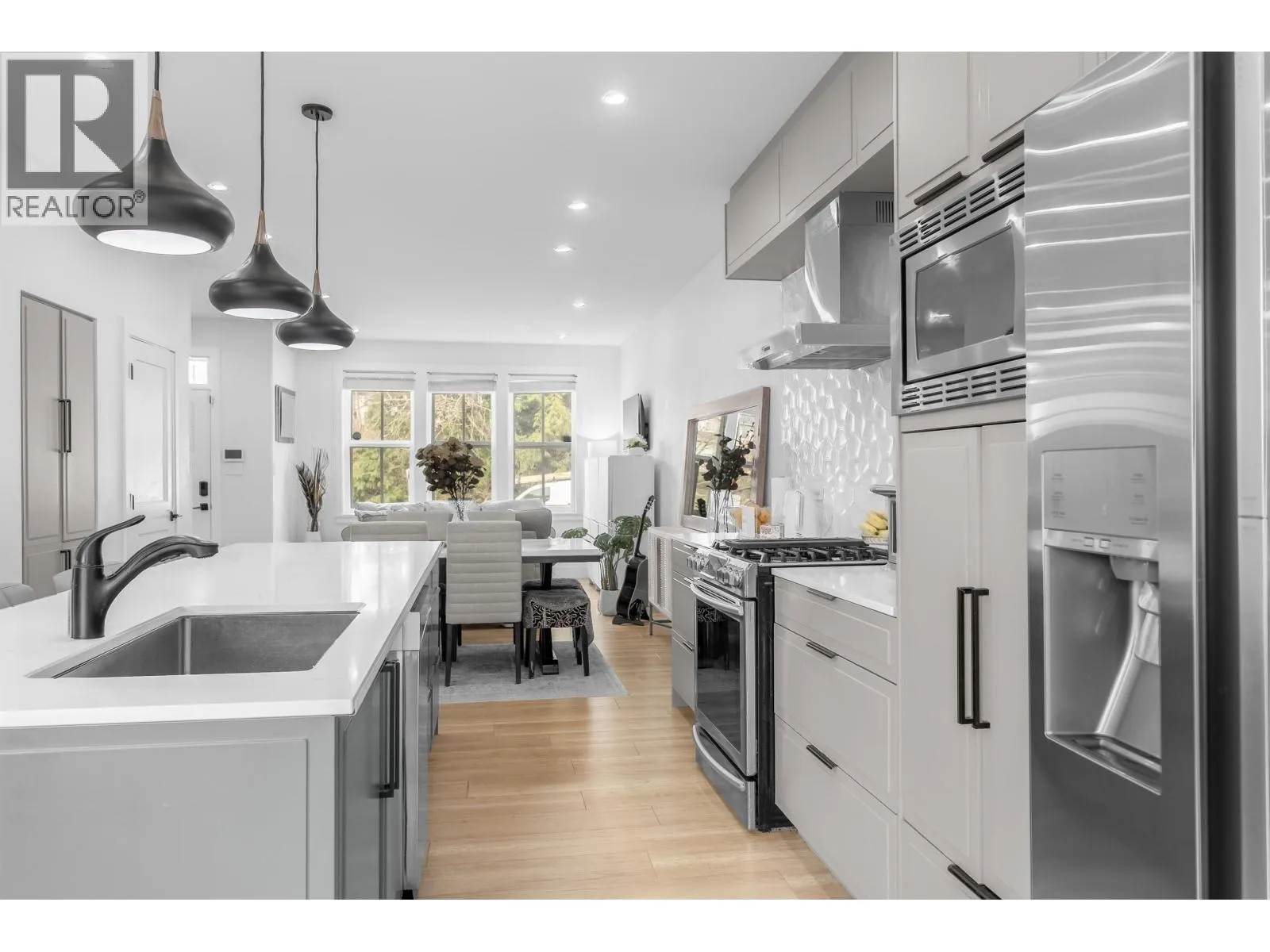 **NO STRATA FEES! Corner Unit Available. ** This modern row home in Burke Mountain features 4 bedrooms, 4 bathrooms, and a media room. The open layout includes a family room, living room, and formal dining room on the main floor, with 3 bedrooms and 2 bathrooms upstairs, and a guest bedroom with a full bathroom downstairs and a media room with a wet bar. The master bedroom has a stylish ensuite, feature wall, and walk-in closet. The property boasts a private yard with patio, three parking spaces, and street parking, all within a 5-minute walk to the elementary school and Queenston Park. Additional upgrades include air conditioning, home automation, a security system/camera, EV charging, central vacuum, paved backyard and more. Priced to Sell - Motivated Seller! (id:27476)