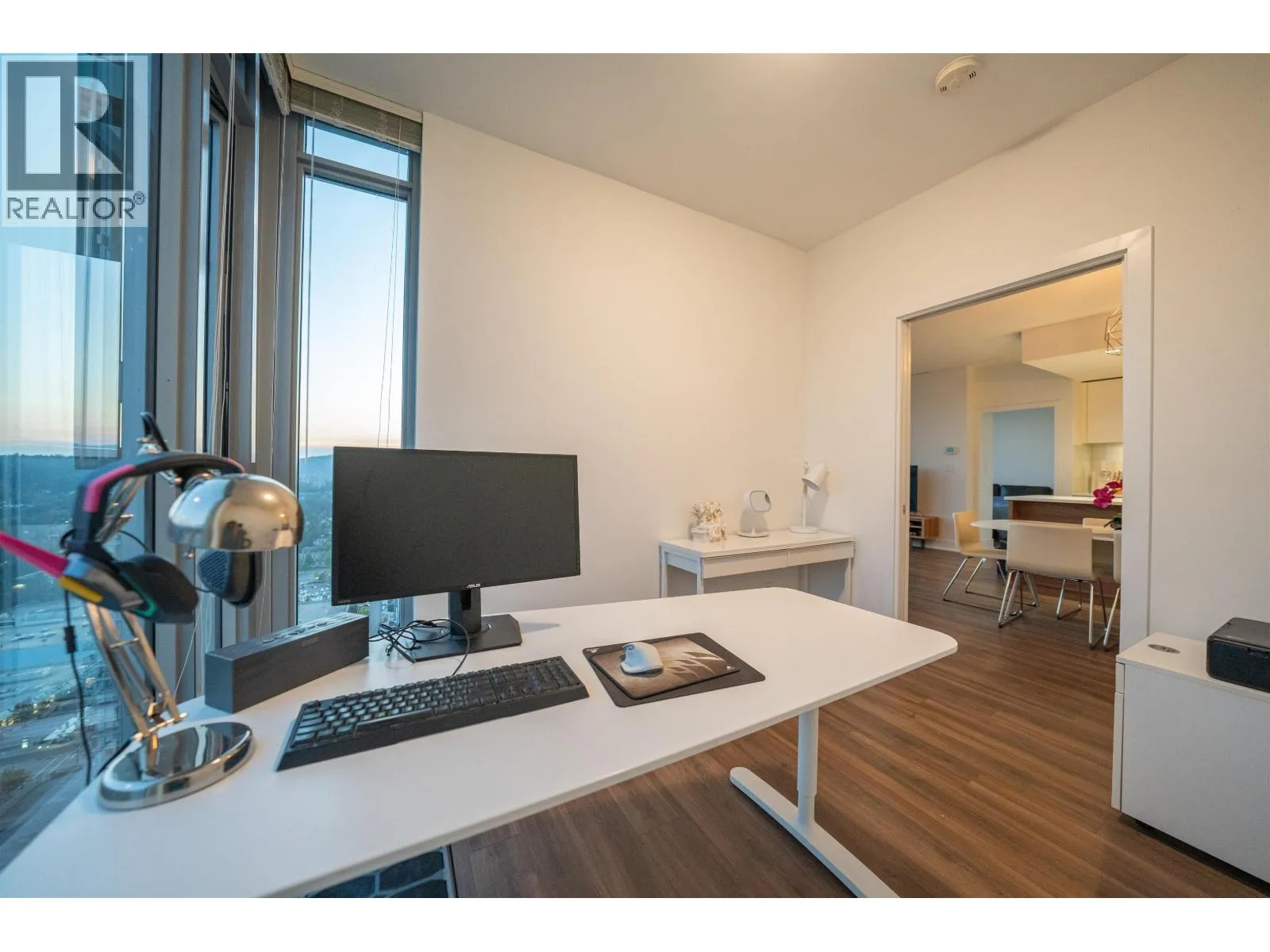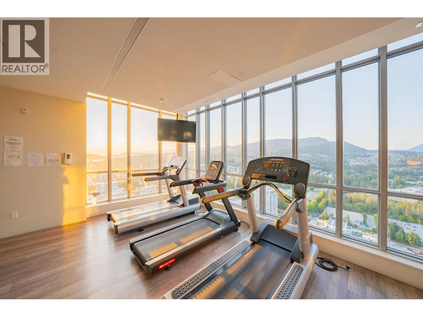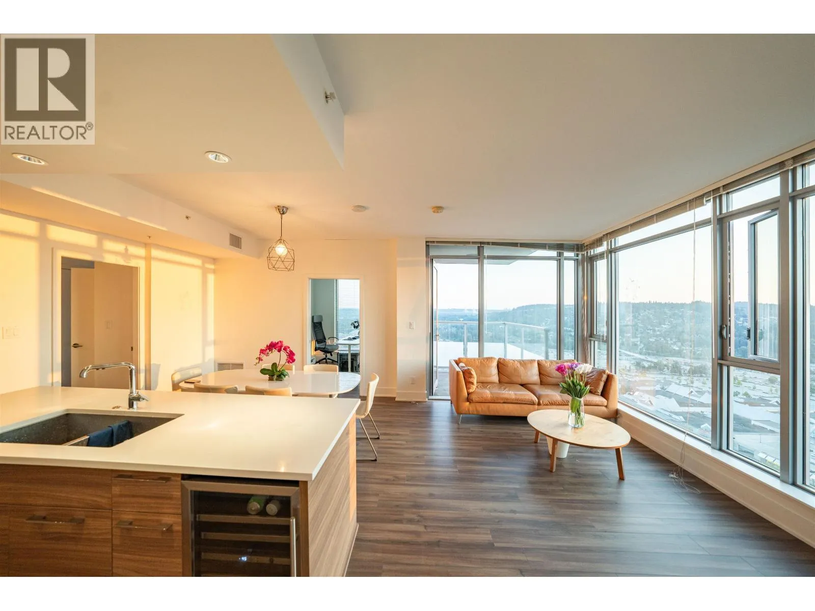 Welcome to M3 by Cressey, Coquitlam's tallest and most sought-after tower. This 2bed/2bath home also includes a spacious den with a large window, easily used as a third bedroom. The southwest-facing corner layout, 9' ceilings, floor-to-ceiling windows, air conditioning, and an efficient floorplan designed for modern living. The signature CresseyKitchen is equipped with Blomberg & Fulgor Milano appliances, double refrigerators, and a wine cooler. Enjoy sweeping, unobstructed views from every room. The primary suite features a spa-inspired ensuite with radiant heated flooring. Exclusive access to the Summit Club on the 47th & 48th floors, offering 9,000 SF of world-class amenities including gym, lounge and entertainment spaces. Just steps to Coquitlam Centre, SkyTrain, Lafarge Lake and more. (id:27476)