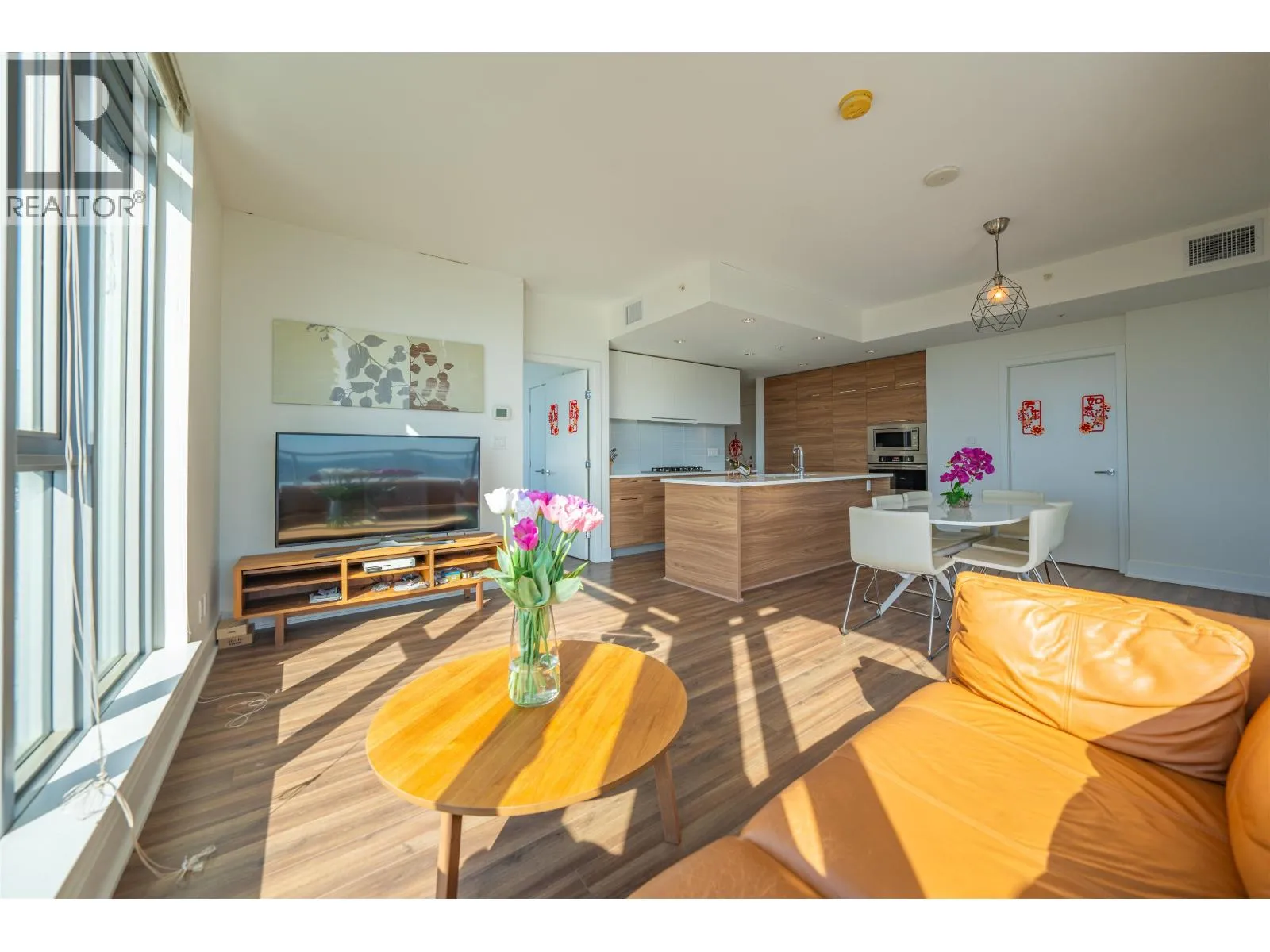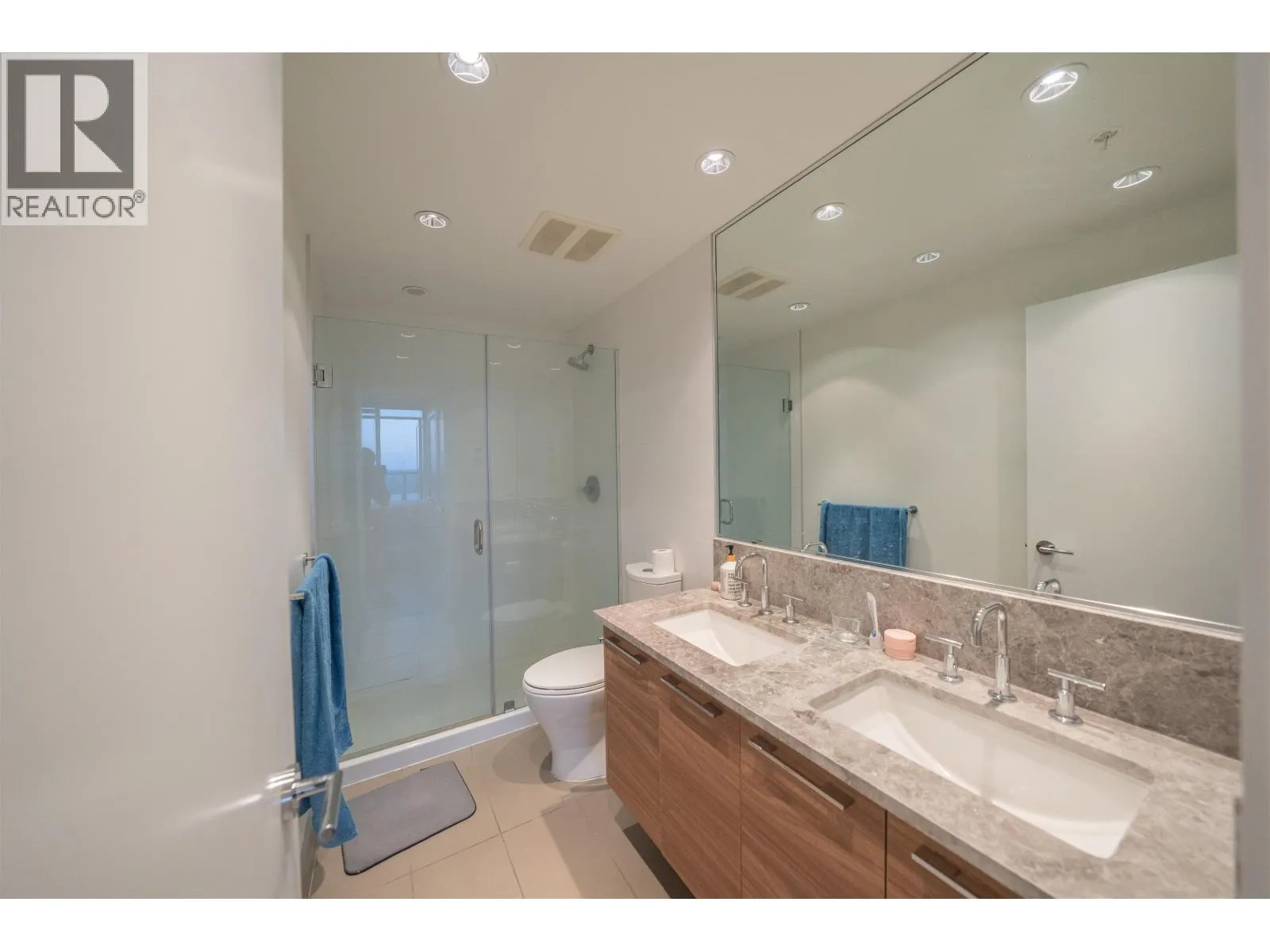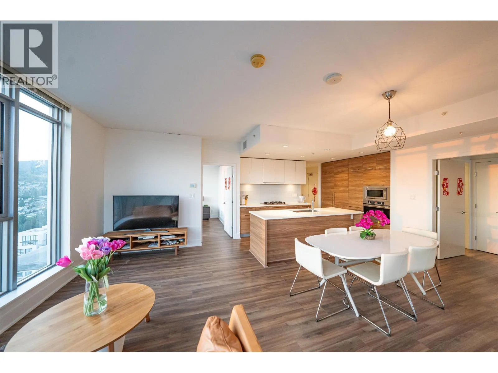 Welcome to M3 by Cressey, Coquitlam's tallest and most sought-after tower. This 2bed/2bath home also includes a spacious den with a large window, easily used as a third bedroom. The southwest-facing corner layout, 9' ceilings, floor-to-ceiling windows, air conditioning, and an efficient floorplan designed for modern living. The signature CresseyKitchen is equipped with Blomberg & Fulgor Milano appliances, double refrigerators, and a wine cooler. Enjoy sweeping, unobstructed views from every room. The primary suite features a spa-inspired ensuite with radiant heated flooring. Exclusive access to the Summit Club on the 47th & 48th floors, offering 9,000 SF of world-class amenities including gym, lounge and entertainment spaces. Just steps to Coquitlam Centre, SkyTrain, Lafarge Lake and more. (id:27476)