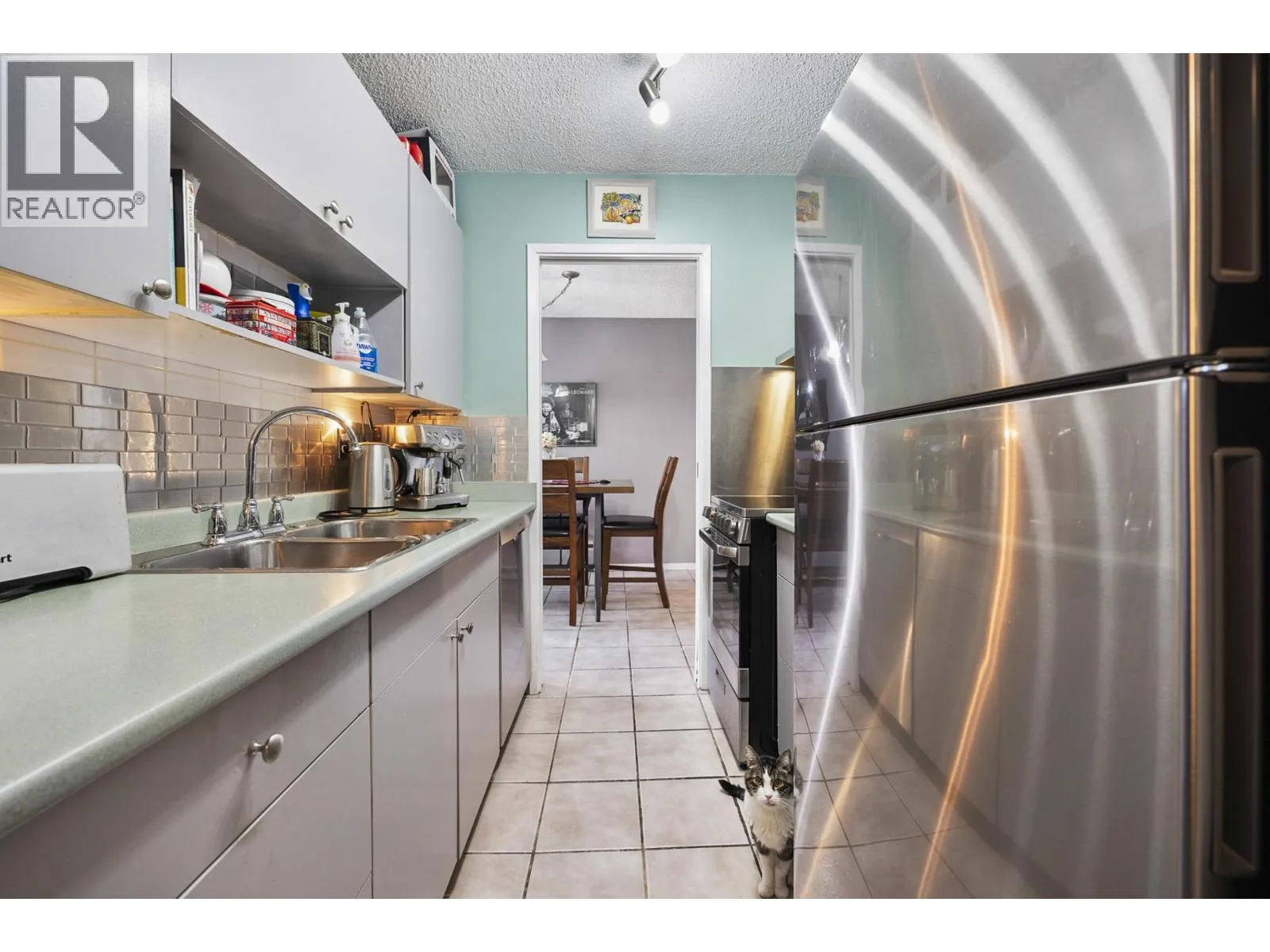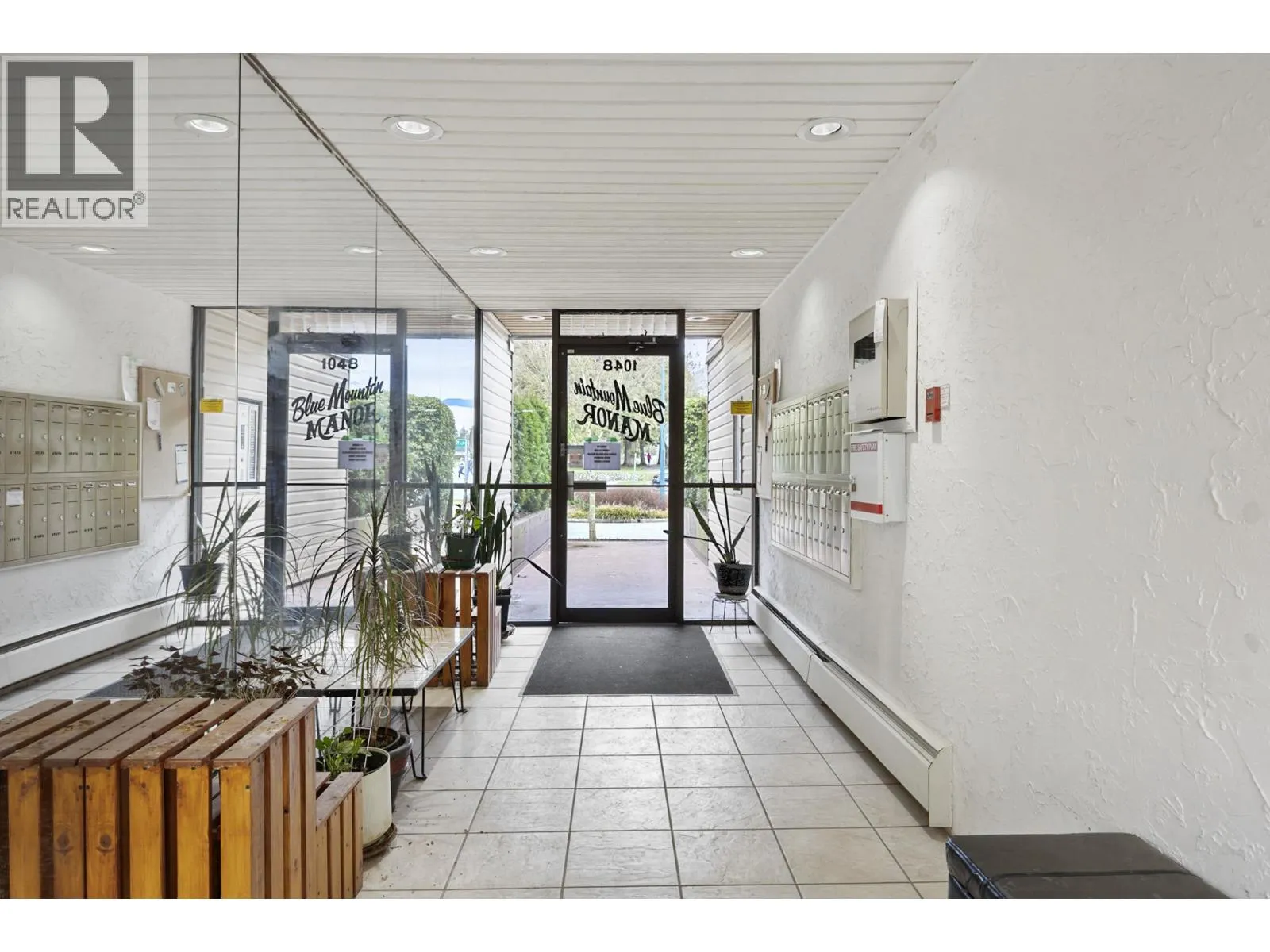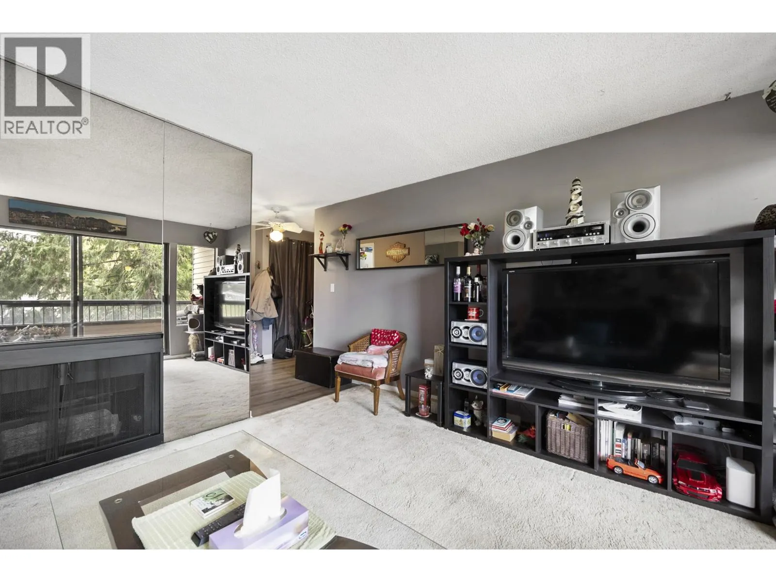Welcome to Blue Mountain Manor. This home has it all with tranquil park & mountain views! Enjoy your morning coffee from one of 2 covered balconies totaling 114SF. This corner unit, 2 bed, 1 bath condo is a great size located across the street from popular Blue Mountain Park. This suite is located on the more favorable north side of the building and offers good natural light. Featuring 2 large bedrooms, living room, separate dining room & gas fireplace for those cold evenings. This well planned galley kitchen comes with updated S/S appliances with restaurant style backsplash. Large pantry/storage room. 1 CP storage locker & 1 CP parking. Strata fee includes heat, hot water, and gas. Close to transportation, schools, shops & much more! (id:27476)