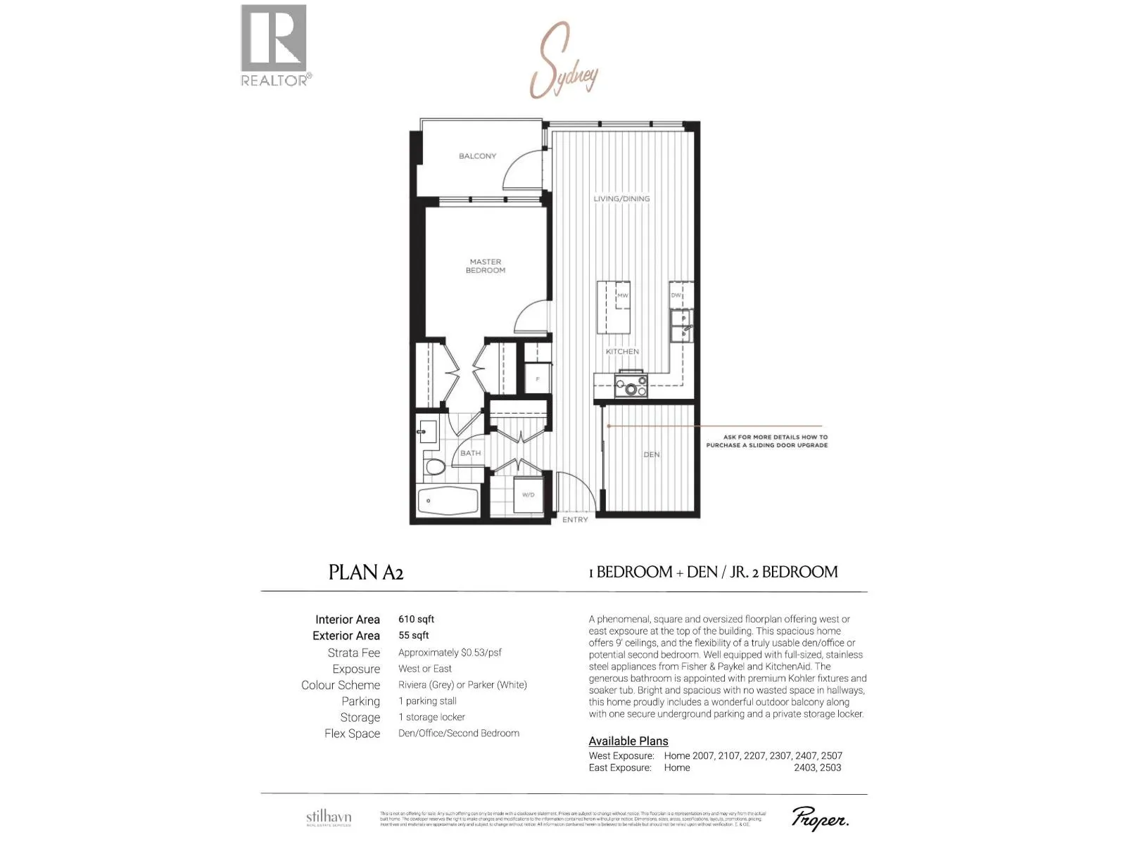 A phenomenal, square and oversized floorplan offering west exposure at the top of the Sydney by legendary Ledingham McAllister. This spacious home offers 9' ceilings, and the flexibility of a truly usable den/office or potential second bedroom. Well equipped with full sized stainless steel appliances from Fisher & Paykel and KitchenAid. The generous bathroom is appointed with premium Kohler fixtures and soaker tub. Bright and spacious with no wasted space in the hallways, this home proudly includes a wonderful outdoor balcony along with one secure underground parking and a private storage locker. Recently reduced prices make this home a fantastic opportunity to invest in a quality Ledingham McAllister home in the heart of West Coquitlam space. (id:27476)