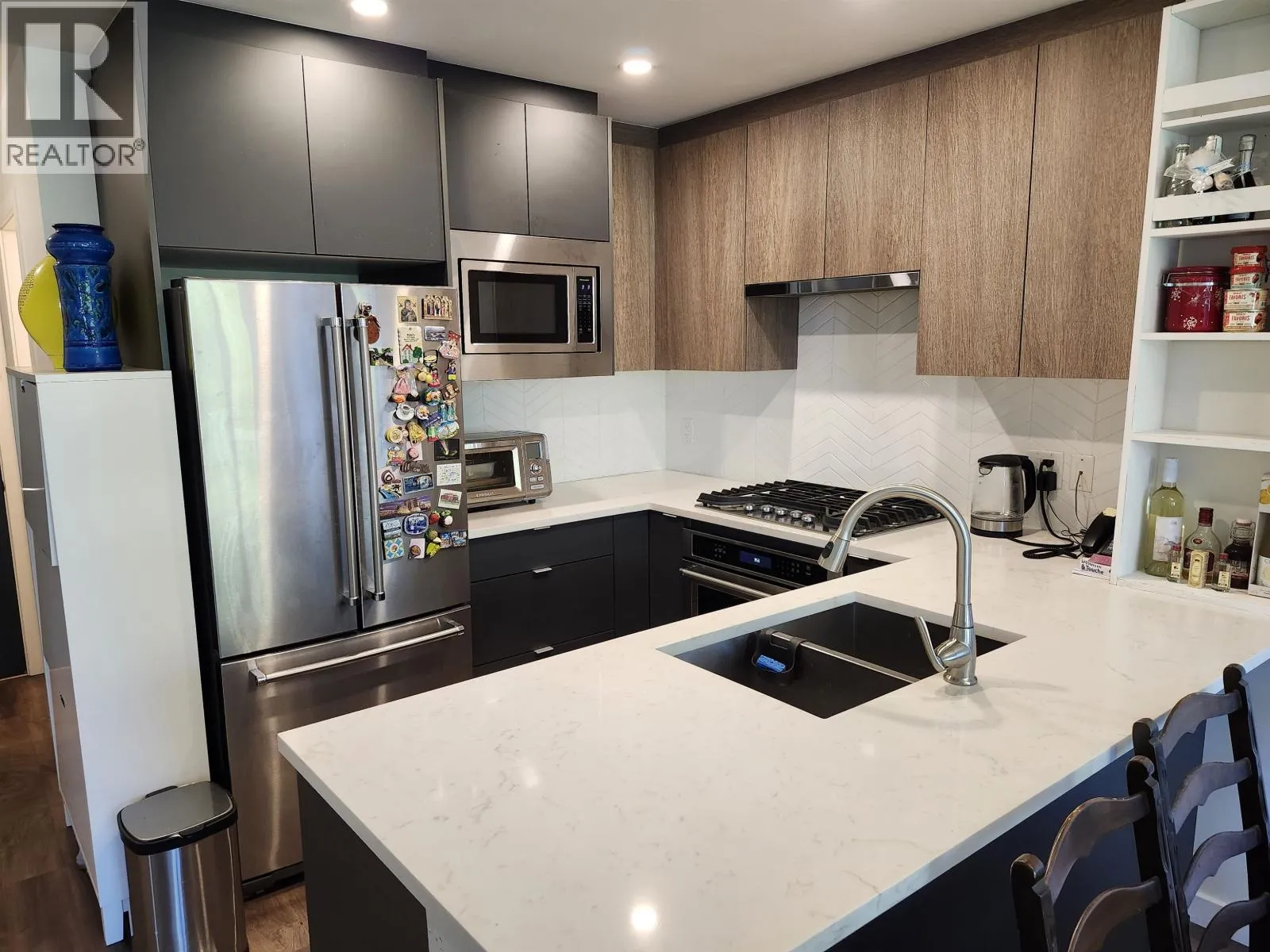 Convenient yet peaceful 2-bedroom, 2 bathroom home located in SIMON at the heart of Burquitlam. This East-facing unit is well-lit, but also faces the quieter side of the building with trees to reduce direct glare. Built with a modern aesthetic grounded in a sense of comfort, this home boasts quartz countertops, high-end stainless steel appliances, and a double-basin undermount kitchen sink. Seperated bedrooms offer privacy, while spacious open-concept living areas and an attached covered balcony allow for shared relaxation or entertainment. Amenities in the building offer a fitness centre, meeting room, an outdoor space, bike room and plenty of visitor parking. Walking distance from Burquitlam SkyTrain Station, Cottonwood Park, Burquitlam Plaza & plenty of food and shopping options. (id:27476)