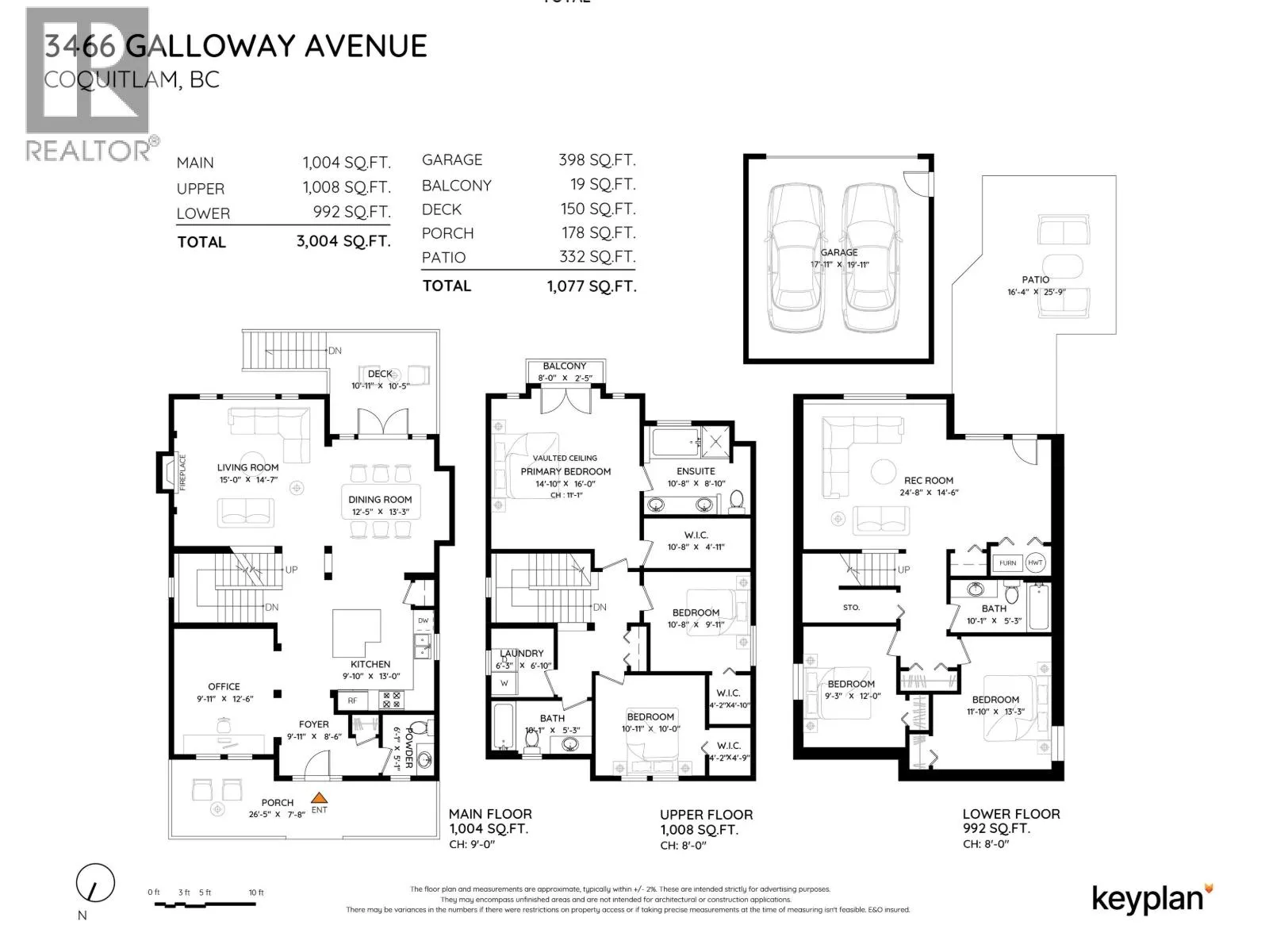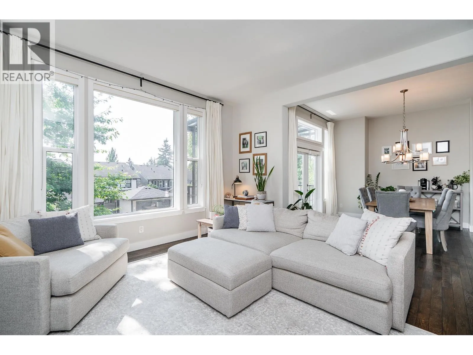 Beautiful Burke Mountain, Foxridge built home offering 5 beds, 4 baths, and 3,004 square ft of bright living space! The main floor is airy and spacious with oversized windows that stream in natural light. The kitchen has an island, shaker style cabinetry, pantry and leads to a generous dining and living area w/gas FP. French doors open to a covered South facing balcony. Office and powder complete the main. Up are 3 large beds all having WIC´s + laundry up for convenience. The primary has 11´ vaulted ceilings, private balcony and 5 piece ensuite. Lower level has a large rec room, additional 2 beds + full bath. Walkout to a private, fenced backyard w/extended patio. Air conditioning, 3 parking including double garage + EV charger. Located walking distance to Ibex Café, parks, trails and transit. (id:27476)