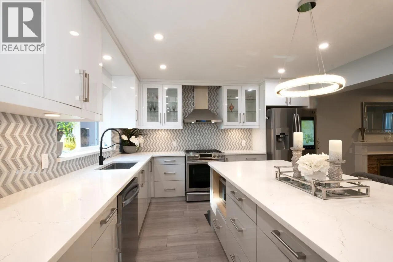 Beautifully updated family home backing onto greenbelt in desirable Lower Westwood Plateau. Set on a generous 8,688 sf lot, this spacious 4,400+ sf property features new windows, upgraded piping, and a functional layout. Main floor includes an open kitchen with premium stainless appliances and smart fridge, plus access to two covered patios. Four large bedrooms up and a main floor office. Huge private yard ideal for entertaining. Basement includes a 2 or 3-bed, 2-bath suite with separate entrance. Steps to Douglas College, golf, Lafarge Lake, SkyTrain, schools, shops, and more. Detached backyard shed/workshop & attached double car garage. (id:27476)