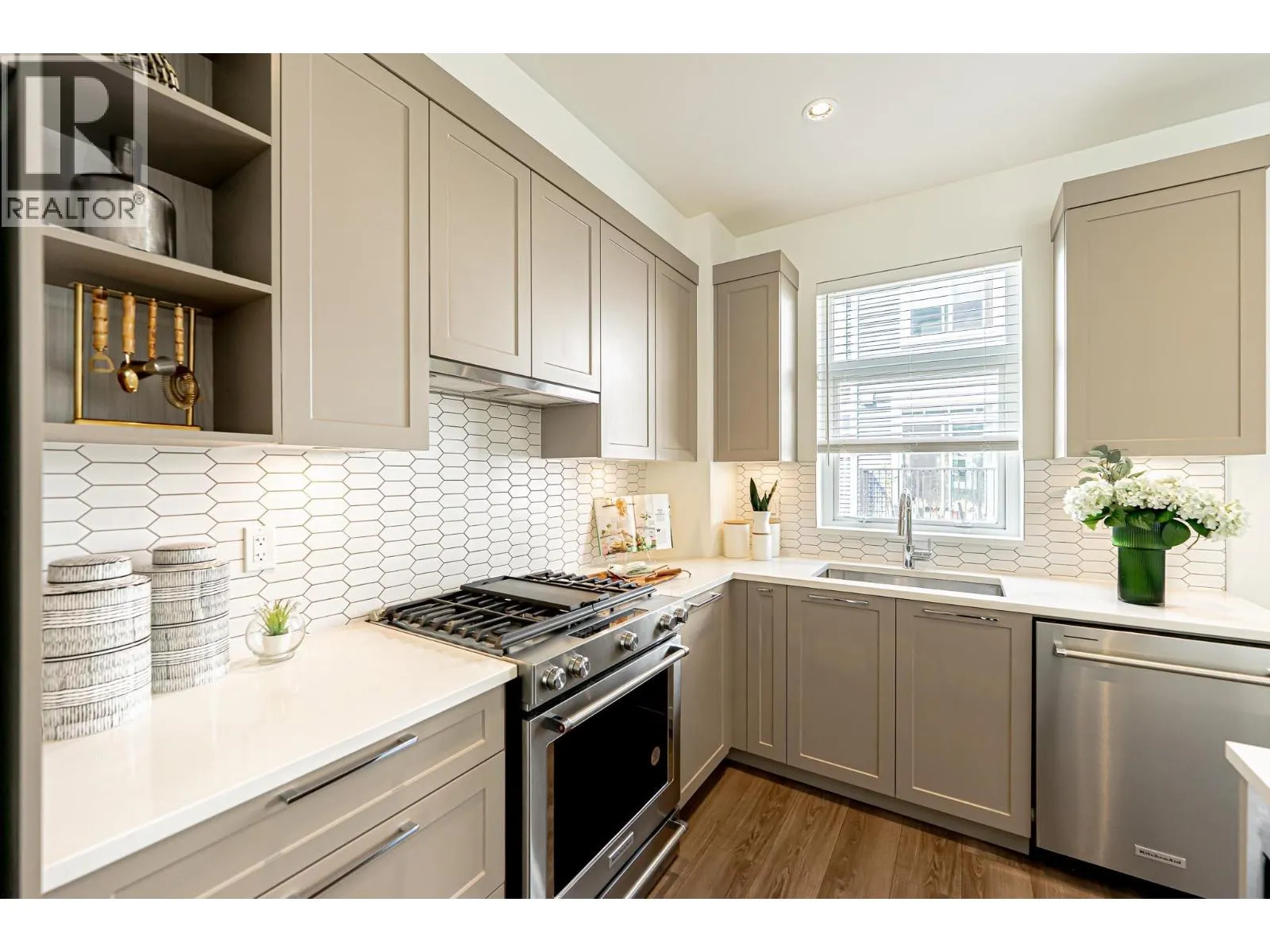 South-North facing, 4-bedroom (2 bedroom are south facing), 4-bathroom, 1870 SF of modem living space with a double side by side car garage, private patio on ground level & balcony on main. The layout includes 3 good size bedrooms and 2 bathrooms upstairs; spacious living, dining, kitchen and 1 bathroom on the main floor; and 1 bedroom, 1 bathroom on ground floor with access to fenced patio. Features include Kitchen Aid appliance package, caesarstone quartz countertops, updated ceiling lighting. (id:27476)