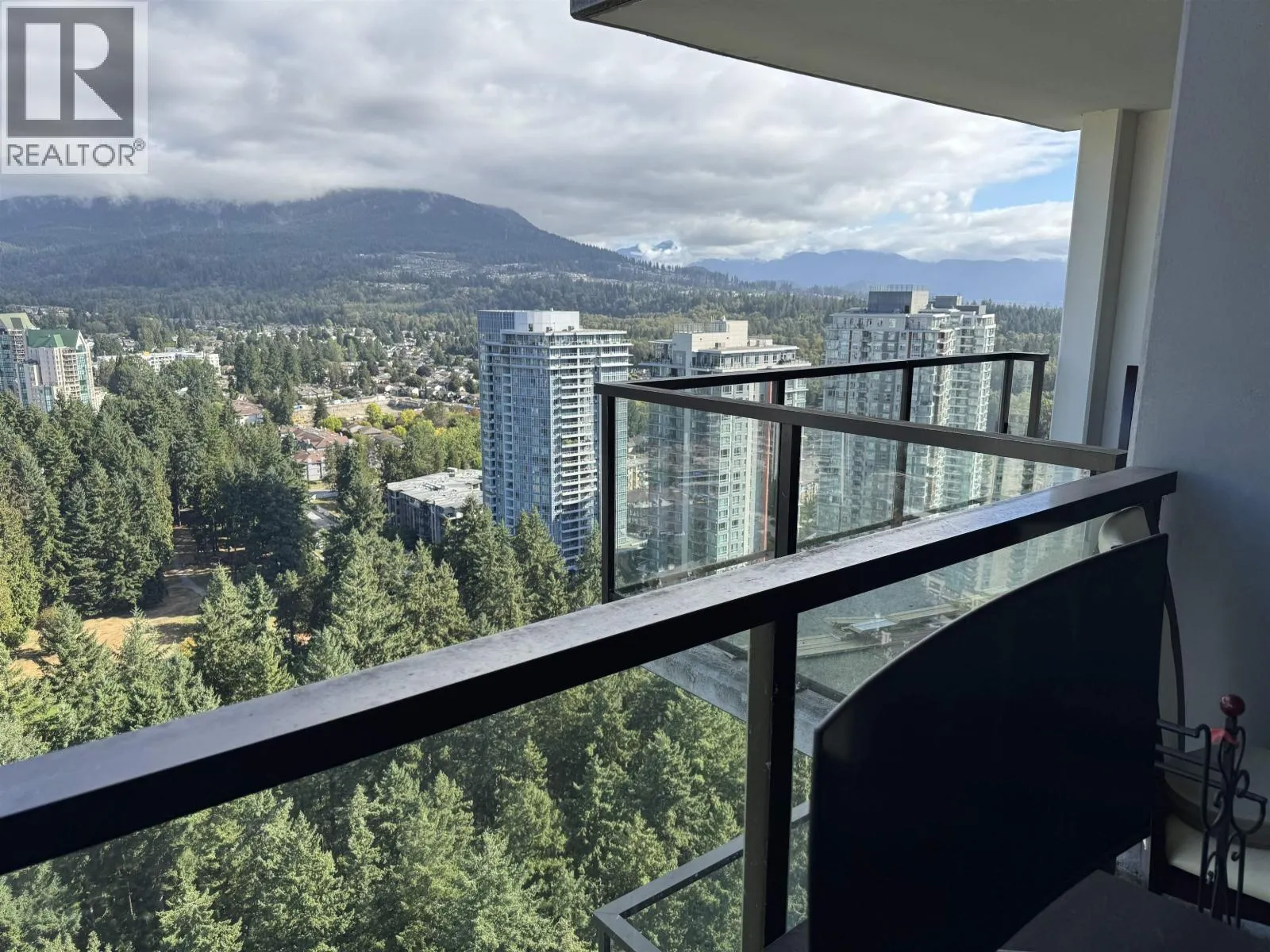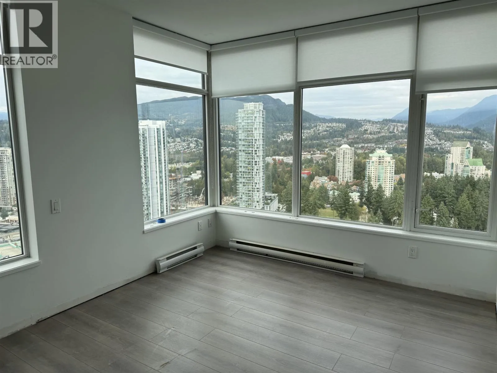 Luxurious Onni built condo located on the 37th floor. 982 SQFT 2 bed/2 bath plus den & 2 balconys. An open-concept unit offers unobstructed, panoramic views of the mountain, city of Coquitlam & Glen Park that will take your breath away. Very desirable floor plan with decent-sized bedrooms. The kitchen features a 6-piece premium KitchenAid stainless steel appliance package with a gas cooktop & quartz counter. NEW laminated flooring throughout. Newly painted; New window blinds. One (1) parking & 1 locker. Over 16000 square ft of indoor & outdoor amenities including a gym/party room, guest suites, outdoor swimming pool & hot tub. Steps to Evergreen Lincoln Station. Walking distance to Coquitlam Centre. Call now. Thanks (id:27476)