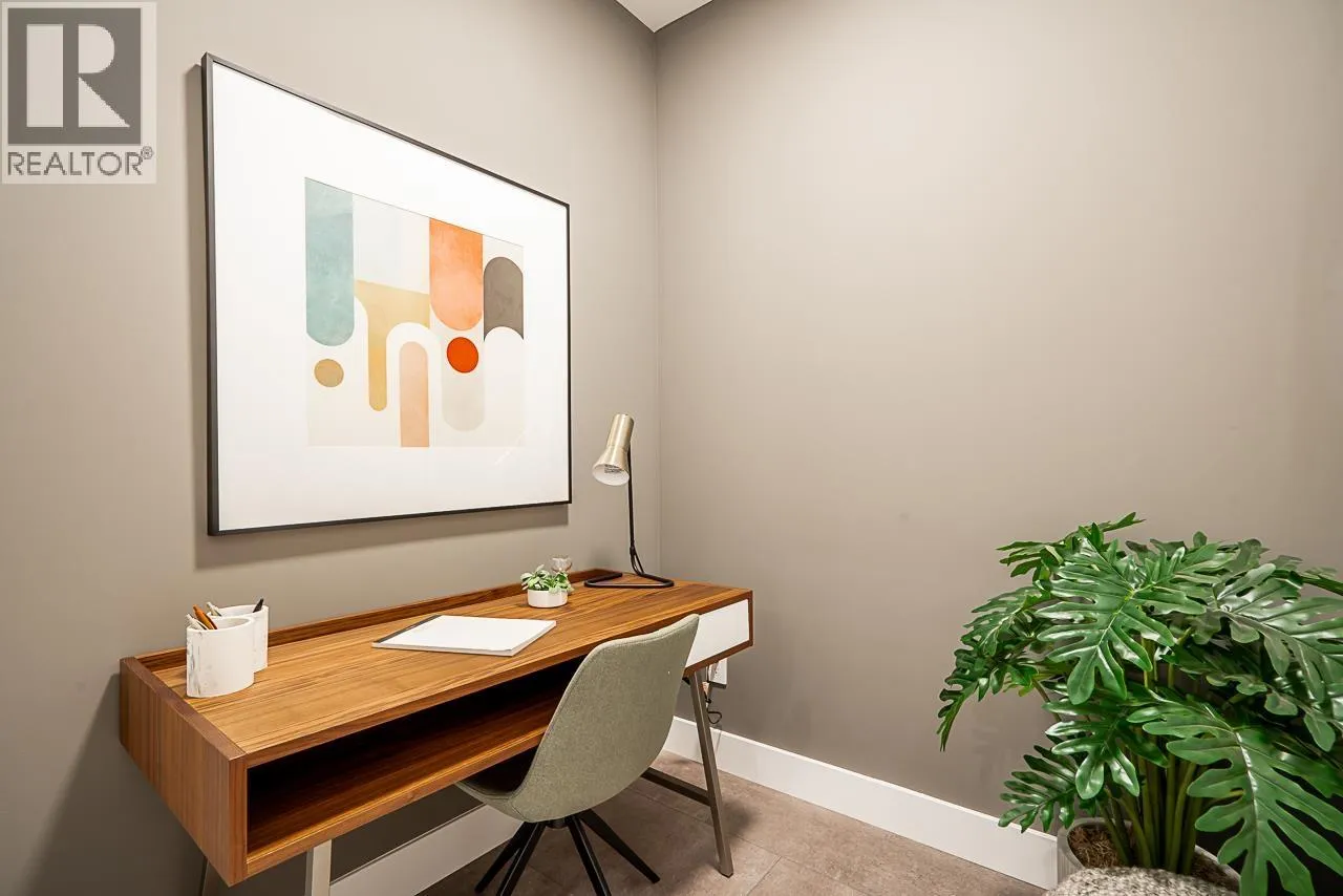 BRAND NEW ONE BED AND DEN in the Oakdale neighbourhood ready for move-in before the end of the year. This unit is a large one bedroom and den with a full sized kitchen for people that like to cook. It also features a large private east facing patio. This home has tond of features including over height ceilings, air conditioning, hard-surfaced flooring, full-sized appliances, a feature pantry, entrance key nook, smart lighting, linen closet, shampoo niches, master closet built-ins, one parking (EV ready) and one locker. Aavand is at the corner of Kemsley, Elmwood & Harrison with a new city park going in across the street. The building features a Dinner Party Room with Lounge, Co-Working Space, Gym, Dog Run, Dog Wash & Child Play Area. BOOK A HARD HAT TOUR! (id:27476)