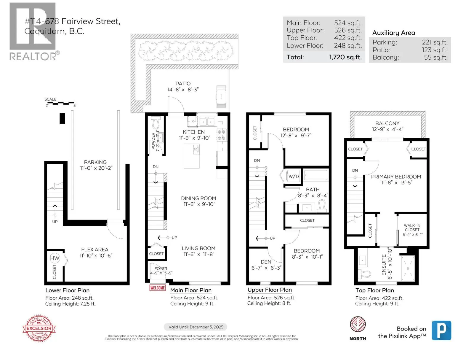 Welcome to this immaculate well kept Move-In ready 3 Bedroom+Den+Flex Townhown at AVANA in Central Burquitlam! Perfectly nestled adjacent to Cottonwood Park, this spacious 1,720sqft 4 levels home offers a smart open concept layout w/all the upgrades you have been dreaming of. Features include A/C, Nu-Heat floorings in both bathrooms & flex space, huge walk-in closet w/built in organizers & tons of storage in the Primary Bedroom, a modern kitchen w/Fisher Paykel S/S appliances package with gas stove, 2 Spa-inspired bathrooms w/rainhead & shower wand, a den w/windows, a versatile flex space, a private patio great for summer BBQ, a EV Ready parking stall w/direct access from the unit. Prime location w/minutes walk to Burquitlam skytrain station, YMCA, shoppings, schools, parks & everything. (id:27476)