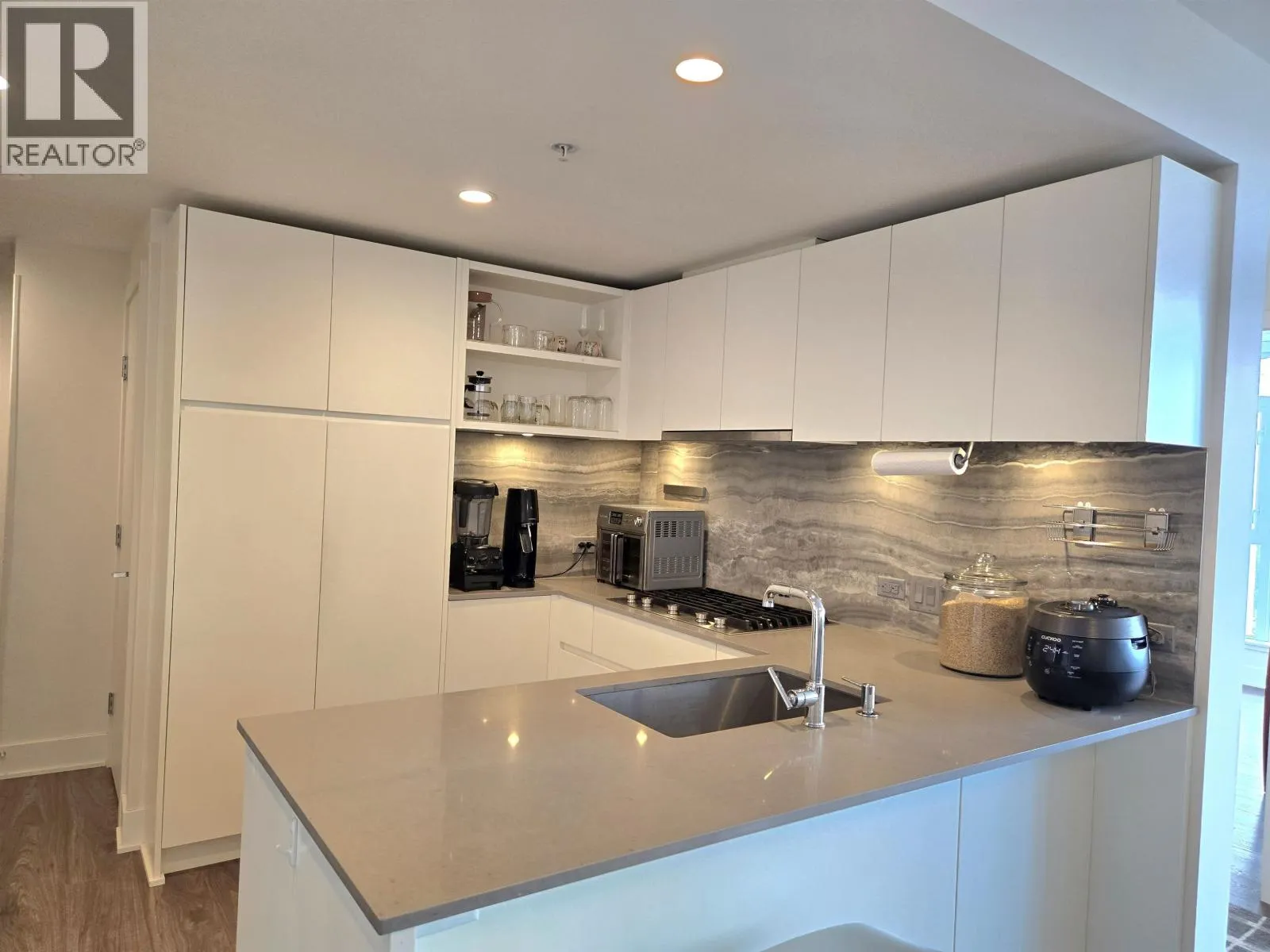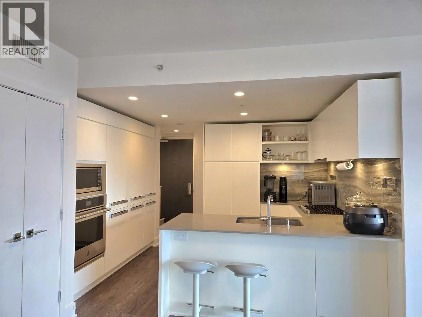 HENSLEY by award-winning developer Cressey. SOUTH facing 2 bed 2 bath home offers A/C, laminate floors, and an ideal layout with bedrooms on opposite sides of the home for privacy. The home is completed with the signature CresseyKitchenTM, blending style and function with high-end Blomberg appliances, a 48" double-door fridge, porcelain slab backsplash, and quartz countertops. A spacious balcony extends your living space outdoors. Included are 1 parking spot and a private storage room. Hotel-amenities include a concierge, penthouse lounge, zen garden, gym, pool, hot tub, and steam rooms. Steps from the City of Lougheed, transit, and restaurants. OPEN OCT.4 (SAT) 1-5PM / OCT.5 (SUN) 1-4PM (id:27476)
