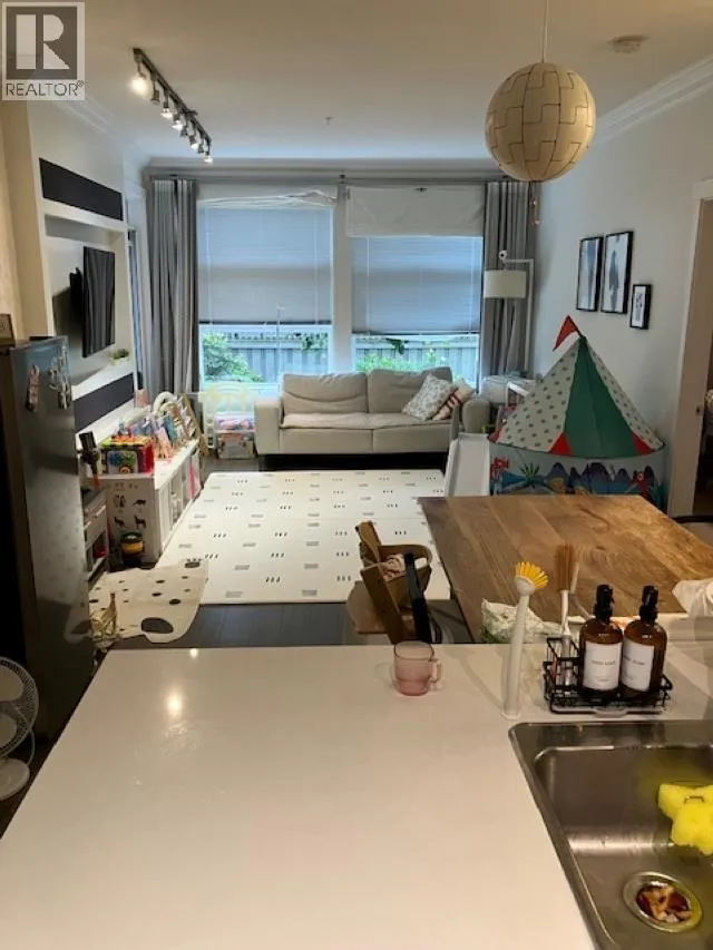 Spacious and well-maintained 2 bedroom, 2 bathroom ground floor unit at Stanton House by Polygon featuring 9-foot ceilings, a large private patio, and a smart floor plan with bedrooms on opposite sides for added privacy. The open kitchen includes a breakfast bar, stainless steel appliances, and stone countertops, leading into a comfortable living and dining area with no wasted space. Building amenities include a fitness centre and EV charging, all just steps away from SkyTrain, shopping, recreation, and more. (id:27476)