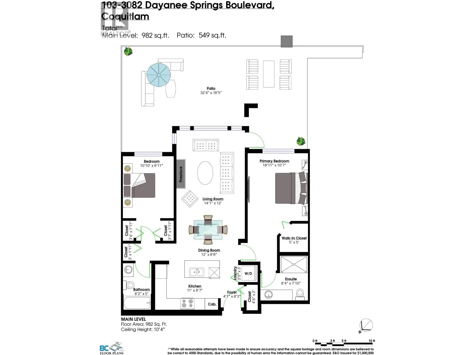 Spacious 2 bed-room apartment unit( 982 sf) with high ceiling( 10'4") and a big patio (549 sf). The unit is just newly painted and in a move in condition. Within walkable distance to Douglas College, schools, bus stops ,town Centre Park and sky train station. Enjoy a 7,500 sf Timbers Club house featuring resort-style outdoor pool, fitness room and recreation facilities. (id:27476)