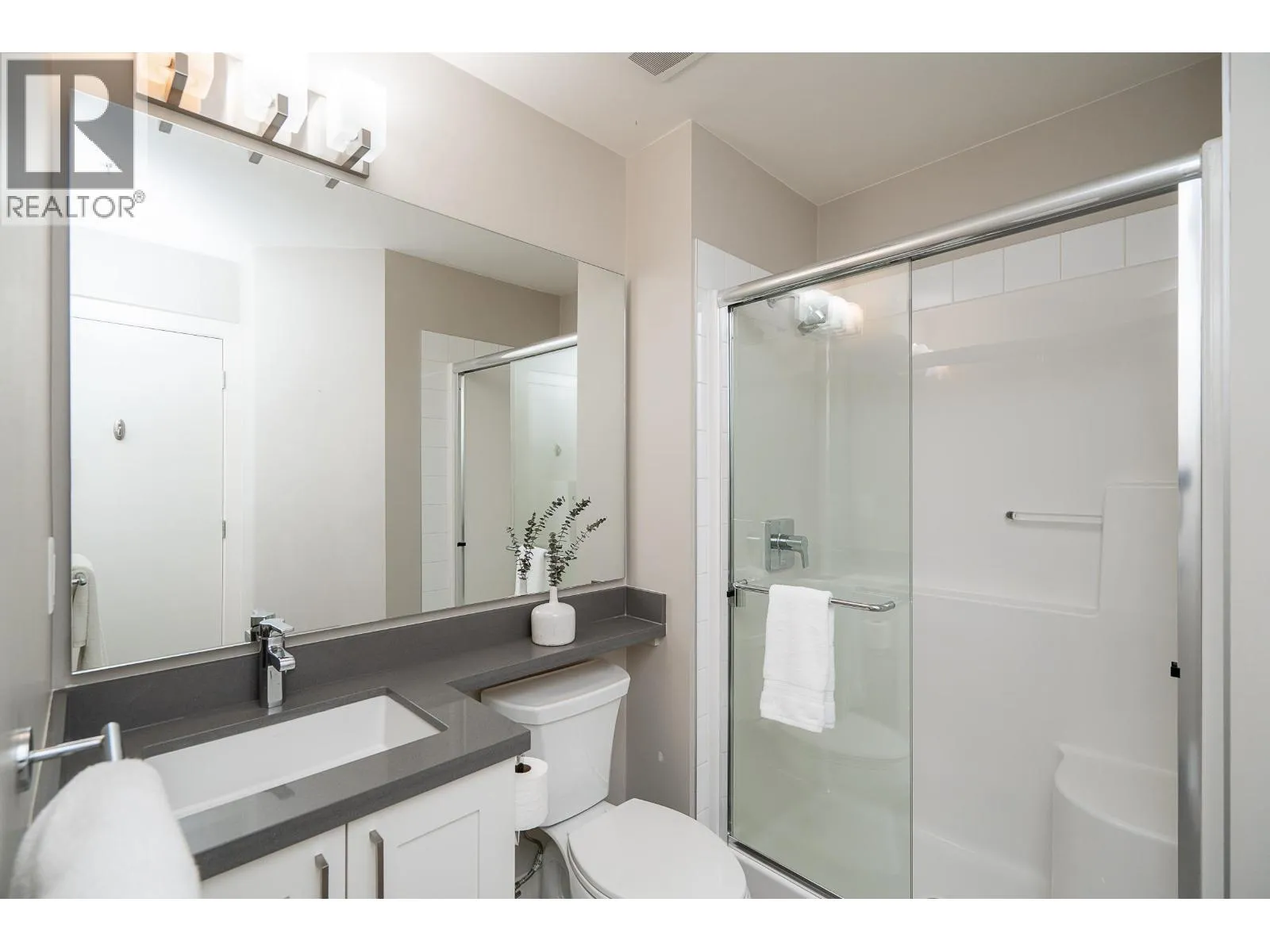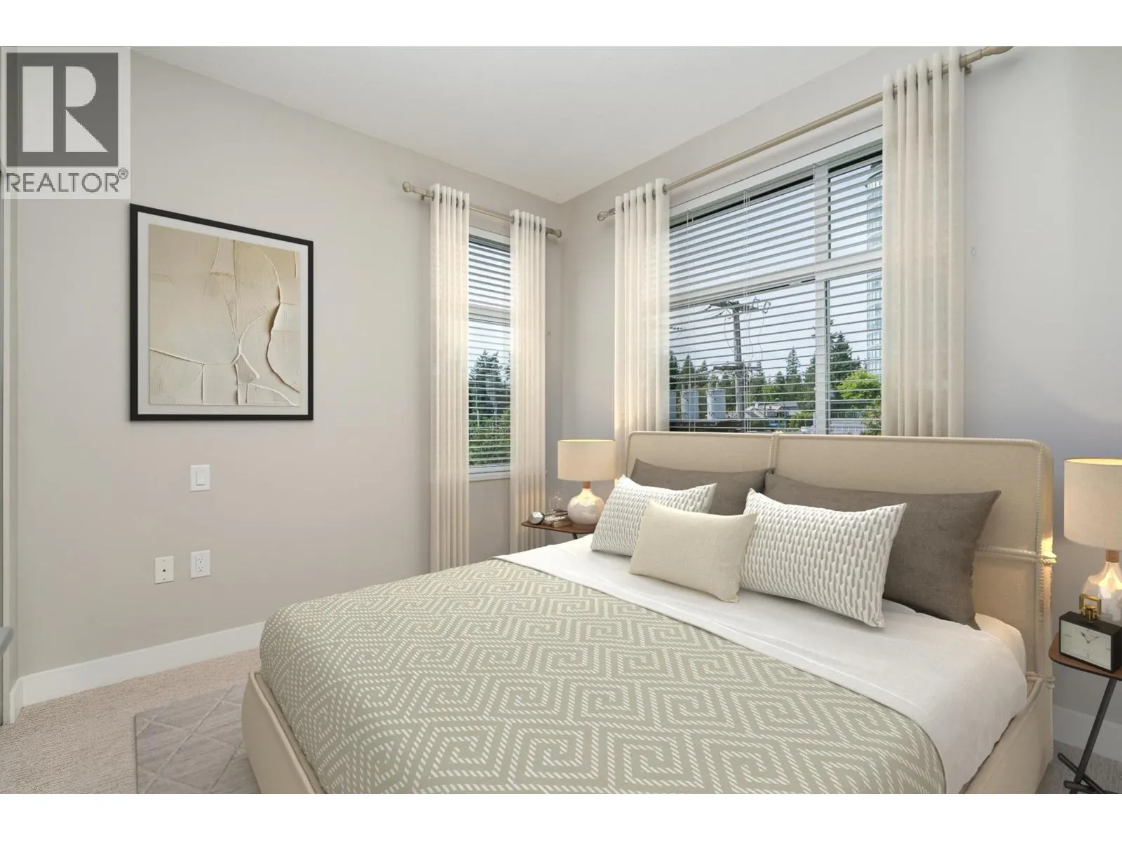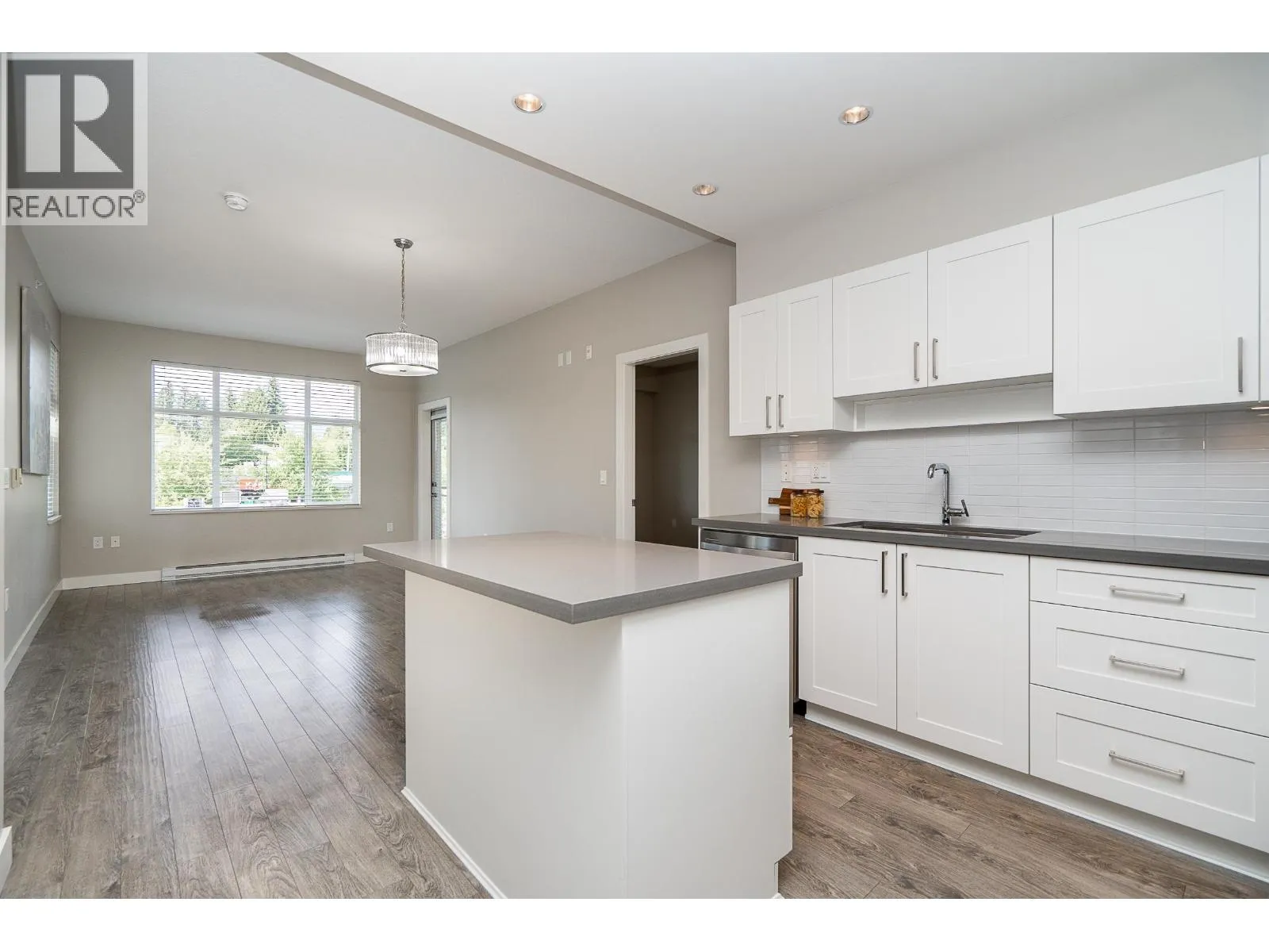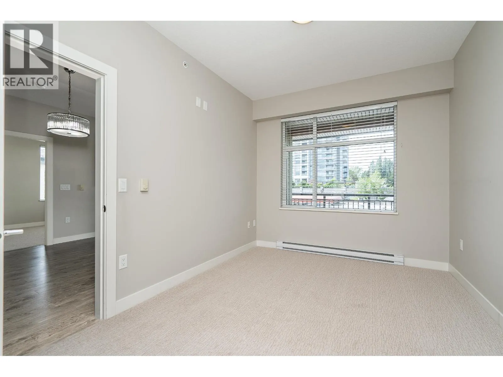 Welcome to Charland by Ledingham McAllister-a modern, well-built home in a prime location! This end unit offers 2 beds, a den, and 2 baths with 878 square ft of functional living space. The open layout has a spacious kitchen w/pot lights, an island, quartz counters, shaker style cabinets, and S/S appliances. The living and dining flow seamlessly to a covered balcony. The primary is generous with a walk thru closet and ensuite. The 2nd bed has a cheater ensuite for added convenience. Den off the entry is ideal for a home office. Highlights include 9 ft ceilings, laminate flooring, brand new carpet, 2 parking, and storage locker. EV charging in visitor parking. Centrally located with access to highways and skytrain, walking distance to Blue Mountain Park, Austin Heights shops and restaurants. (id:27476)