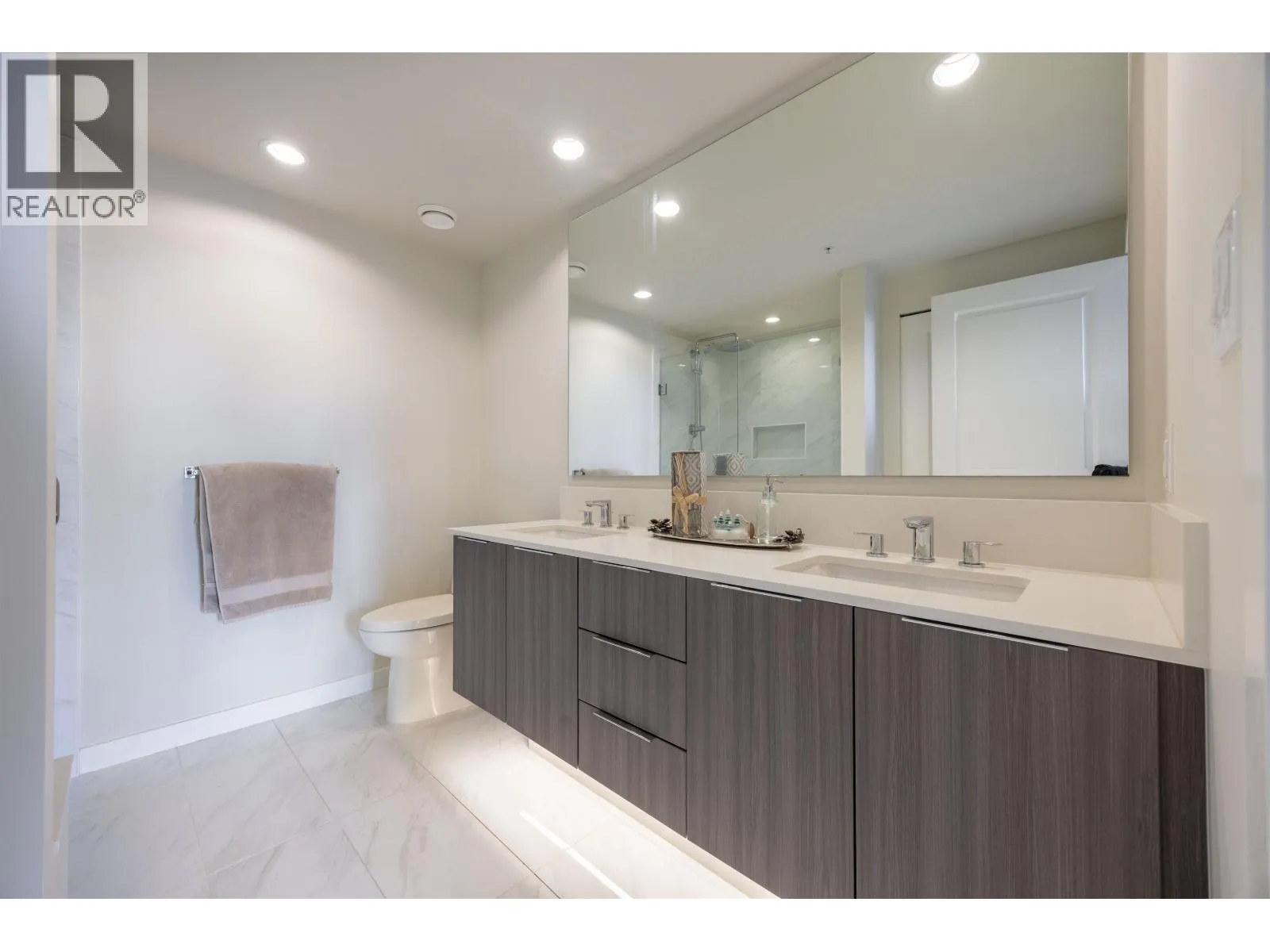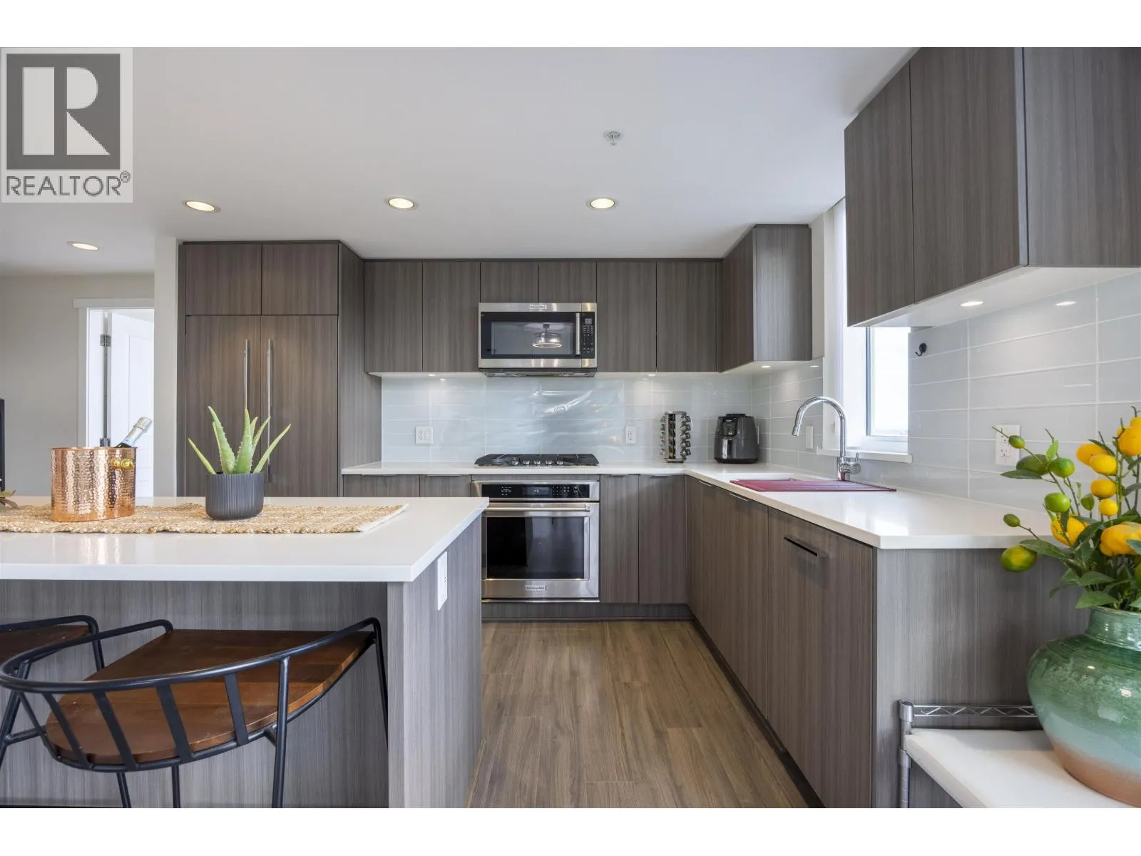Welcome to Mantyla by Polygon in Windsor Gate community. This corner unit features with over 1000SF 2B2B floor plan with gorgeous panoramic city and green views. Open concept gourmet kitchen with full sets of appliances. South facing and oversized windows bring in natural lights through out the unit. Primary bedroom has a spa ensuite bathroom. Massive storage spaces in the unit. One parking and one full size locker come along. Amenity rooms including party room, gym, patio garden and playground. A significant feature of Nakoma club is shared within the community with over 18000 sft, gym, basketball court, media room, party room, multifunction room, outdoor pool and hot tub etc. Central location closed by shopping, sky train, schools, lafrage lake etc. Please come to visit. OH: Nov 2 1-3pm (id:27476)