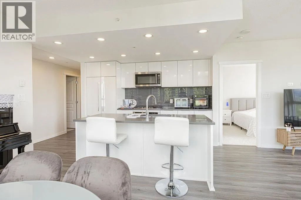 Bright & spacious southwest corner unit with 2 bedrooms, offering panoramic mountain and city views. The open concept floor plan features a gourmet kitchen with high-end stainless steel appliances, quartz countertops, gas range, and a centre island with breakfast bar. The primary bedroom includes double closets and a spa-inspired ensuite for ultimate comfort. Residents enjoy 18,000 sq. ft. of resort-style clubhouse amenities. Ideally located just steps to transit, shopping, dining, and schools-The Lloyd truly has it all. Book your private showing today! Parking & locker included. (id:27476)