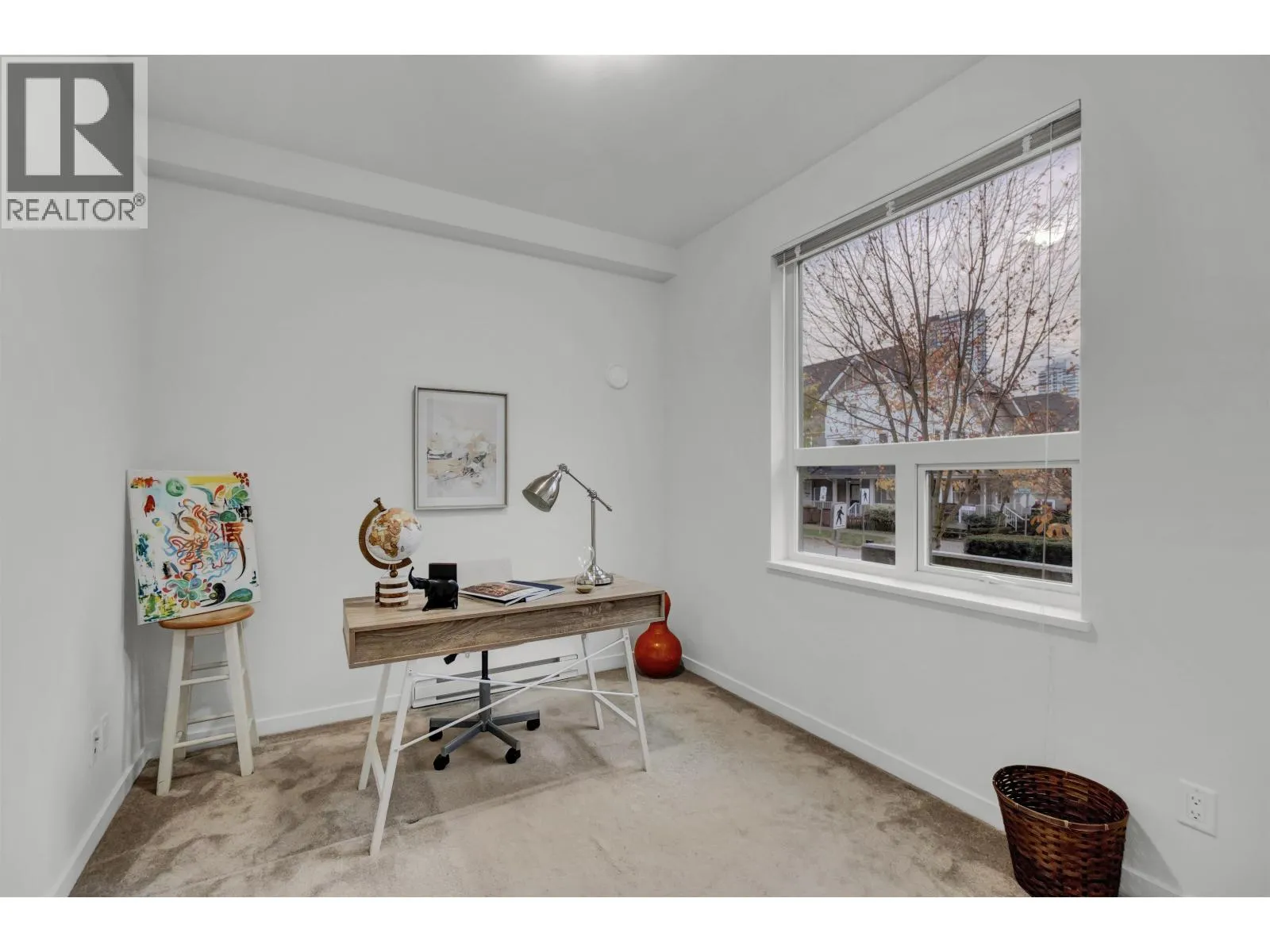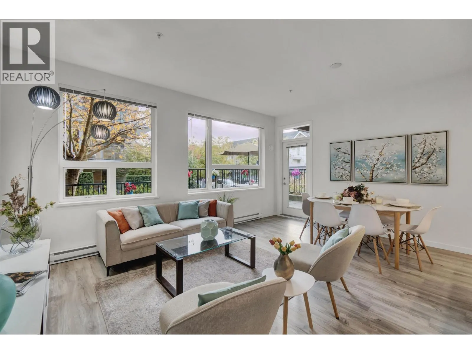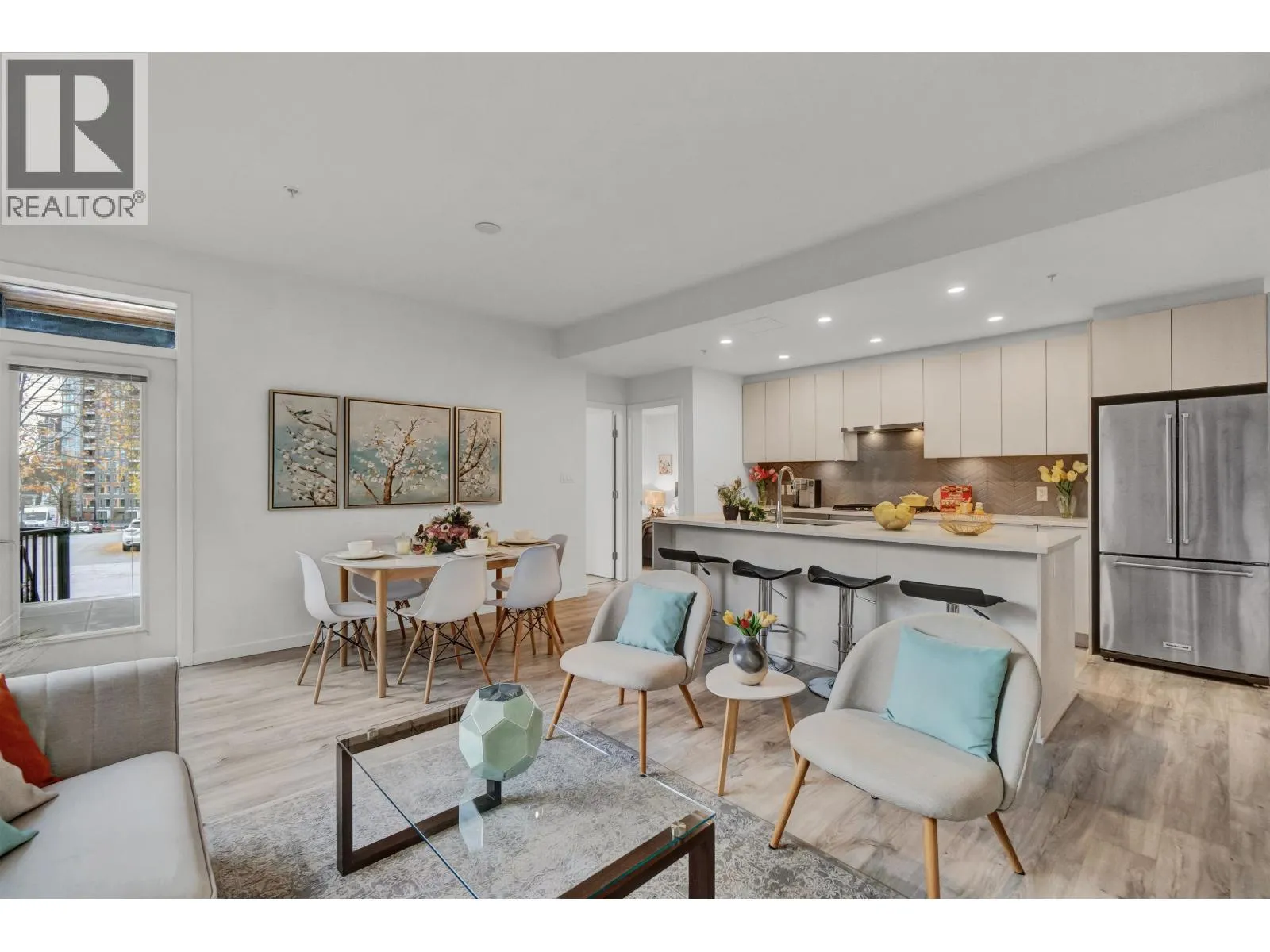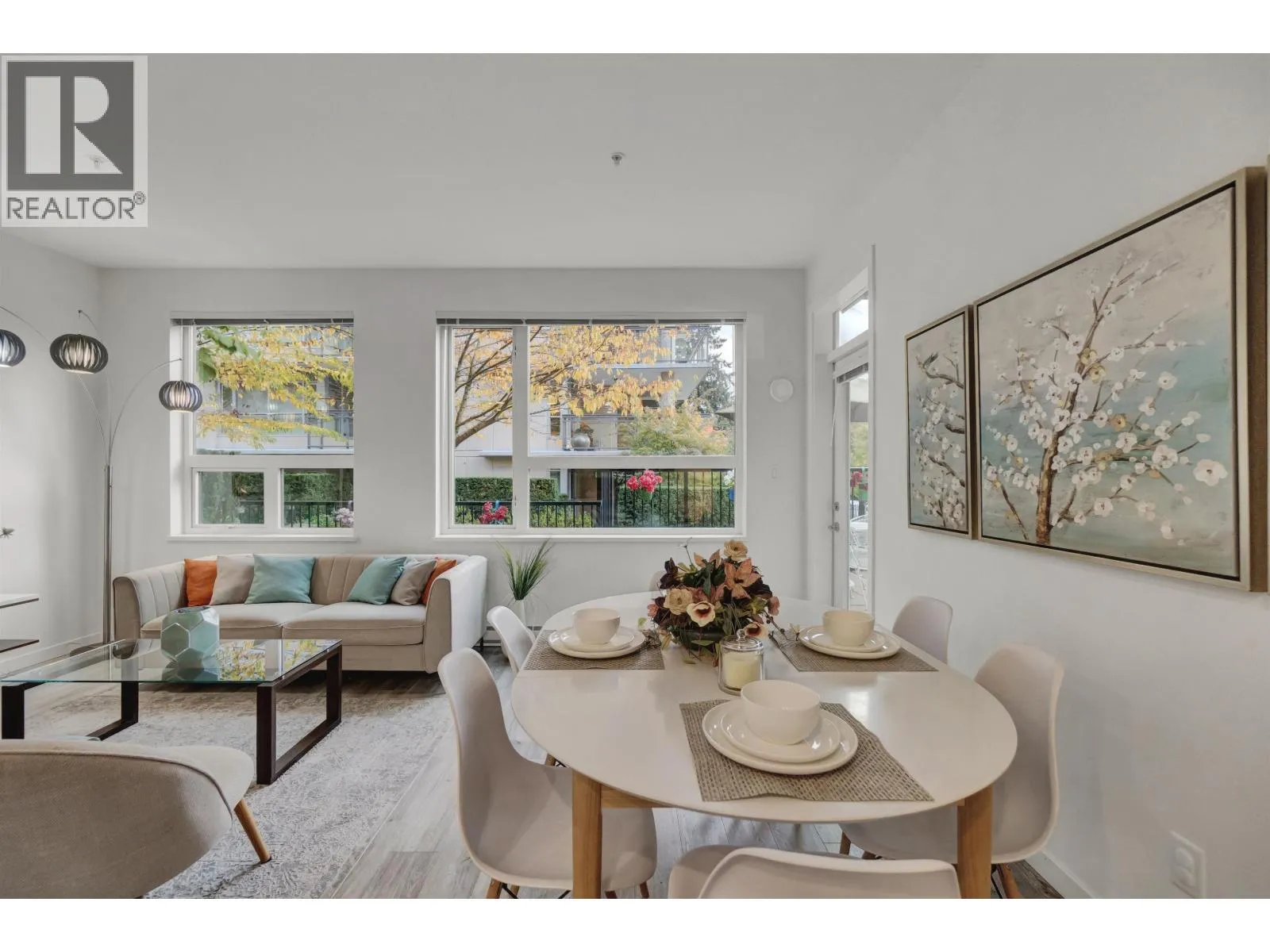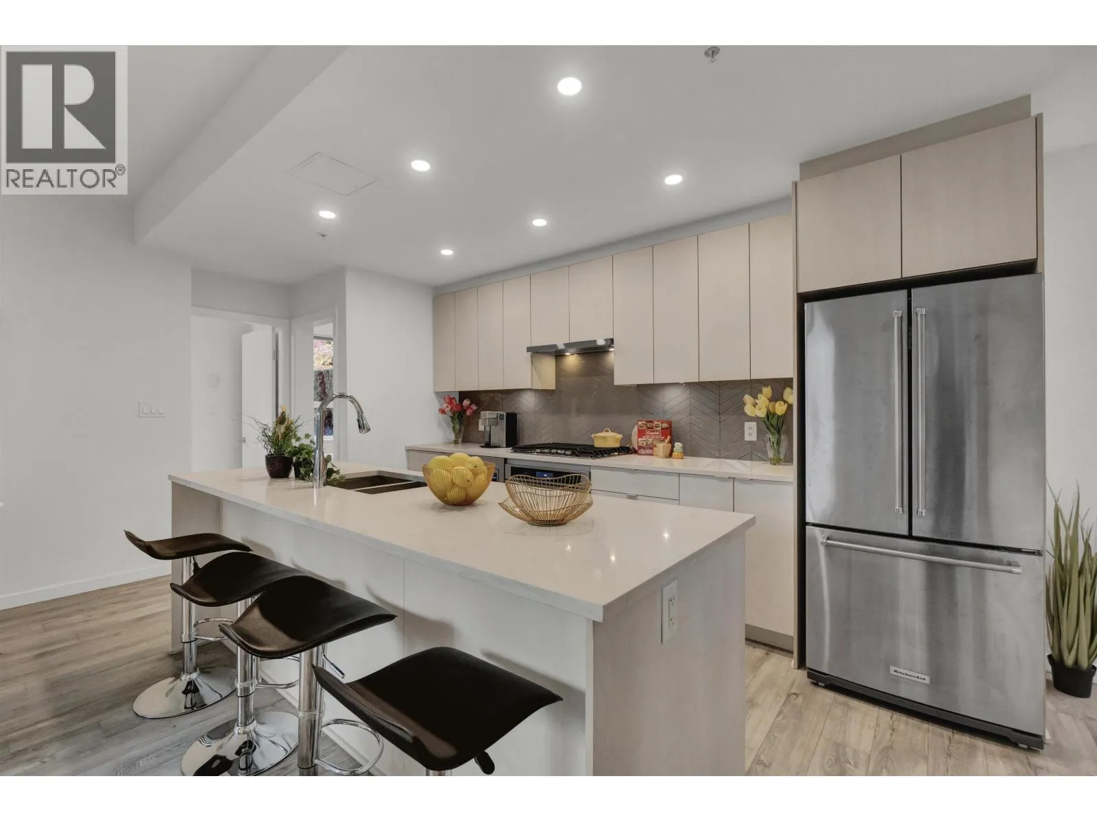 Welcome to SIMON by Otivo, a boutique residence in the heart of Burquitlam. This rare 3-bedroom, 2-bathroom ground-level home offers 1,017 sq.ft. of modern living with 9-ft ceilings, an open-concept layout, and two spacious private patios-perfect for indoor-outdoor living. The kitchen features quartz countertops, stainless steel appliances, and a double-basin undermount sink. The primary bedroom includes an ensuite and direct patio access, while the two additional bedrooms are separated for privacy and flexibility. East-facing exposure brings natural light yet maintains peace and quiet. Building amenities include a fitness centre, meeting lounge, landscaped courtyard, bike storage, and ample visitor parking. Ideally located steps from Burquitlam SkyTrain, Cottonwood Park, and Burquitlam Plaza, this home offers the perfect balance of comfort, style, and convenience in one of Coquitlam´s most connected neighbourhoods. (id:27476)