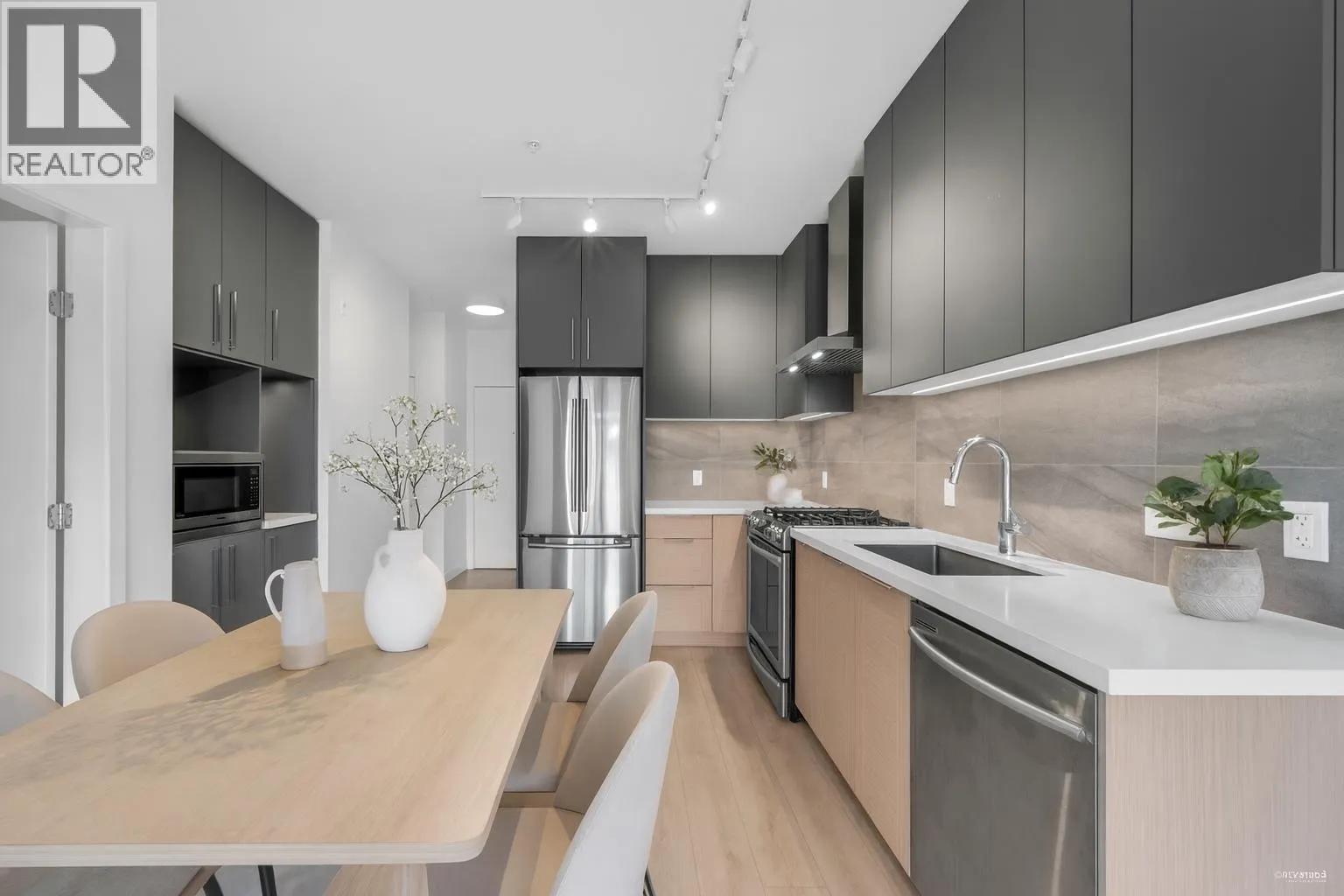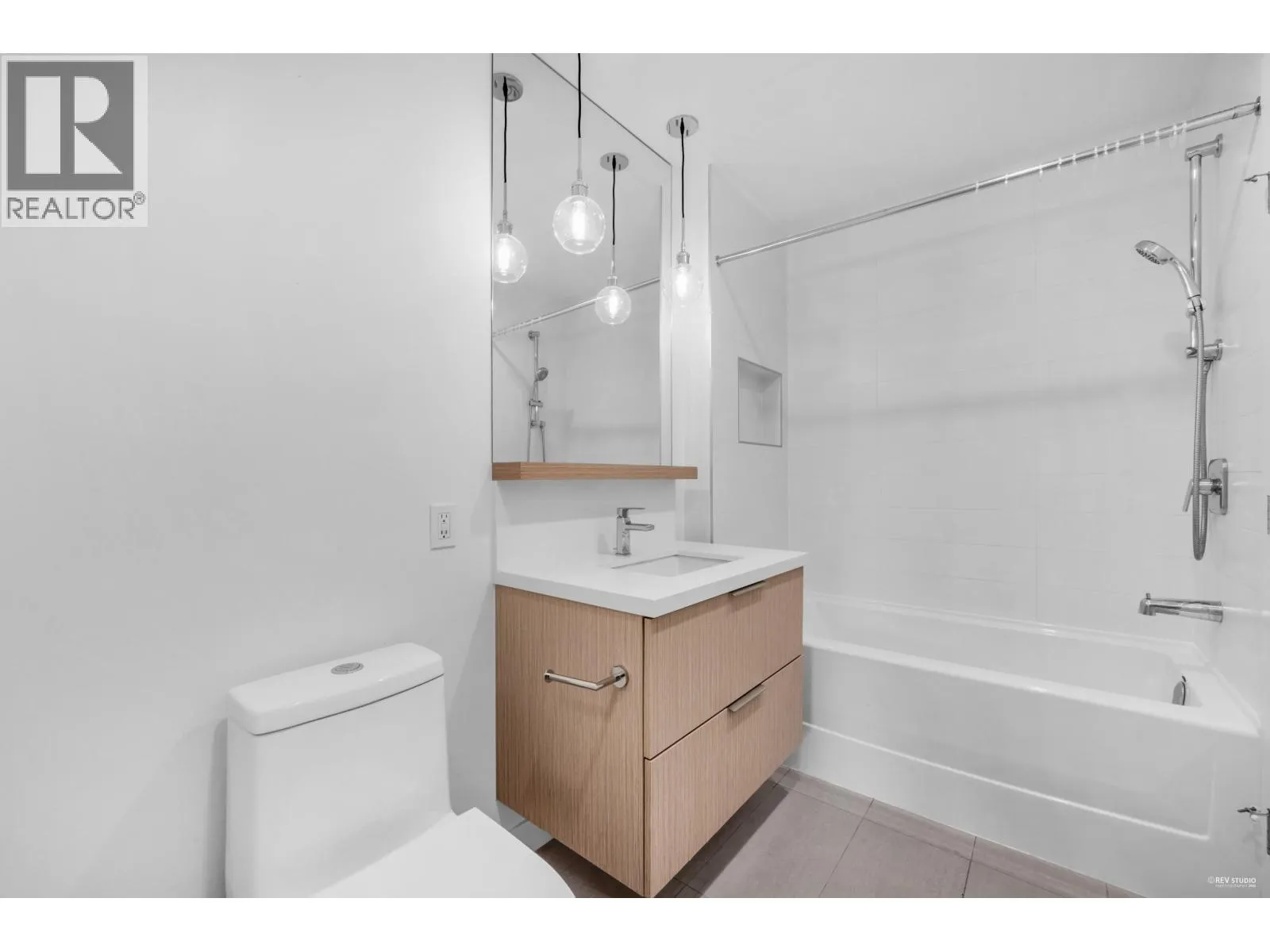 Experience refined living at Regan West by Marcon. This well-designed 1-bed + den home features 9-ft ceilings, an open layout, and a covered balcony for year-round enjoyment. The chef-inspired kitchen includes quartz countertops, stainless steel appliances, and ample storage. The primary bedroom offers a walk-through closet and spa-like ensuite with a deep soaker tub, while the den is perfect for work or study. Comes with one parking and one storage locker. Enjoy a rooftop patio with mountain views-ideal for relaxing or entertaining-plus a meeting room and bike storage. Steps to Burquitlam SkyTrain, Safeway, and shops, and minutes to Lougheed Centre, SFU, and The Vancouver Golf Club. (id:27476)