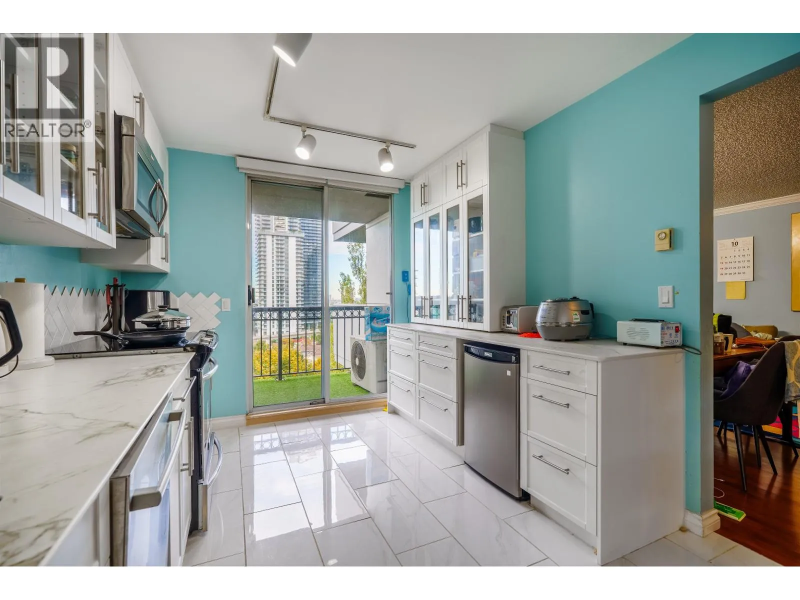 Bright. Beautifully renovated. Perfectly located. Welcome to Brookmere Tower, where comfort meets style. This bright and beautifully updated 2-bedroom, 2-bath home offers a spacious and functional layout with a stunning west-facing view, the perfect spot to enjoy breathtaking sunsets. The kitchen has been fully renovated with modern finishes, brand-new appliances, an added bar fridge, and a separate pantry for extra storage. The open-concept living area features a cozy gas fireplace and air conditioning, complemented by two generous balconies for seamless indoor-outdoor living. Residents enjoy top-notch amenities including an indoor pool, sauna, and fitness room. Ideally located just steps from the SkyTrain, Lougheed Mall, Coquitlam College, restaurants, the Vancouver Golf Course. (id:27476)