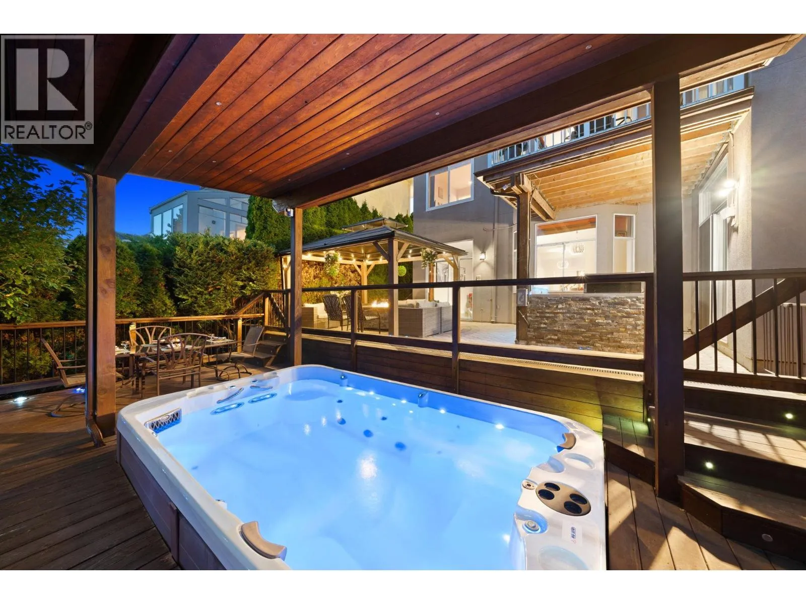 Experience elevated living in this stunning Coquitlam home with panoramic views that will take your breath away. Flooded with natural light, this nearly 4900 square ft residence blends sophistication and comfort throughout. The grand foyer features custom tile work leading to a formal dining room and a bright great room with a cozy fireplace-perfect for entertaining. Upstairs offers four spacious bedrooms, including a luxurious primary suite that spans the entire south side with sweeping views, a jetted tub, walk-in closet, and separate shower. Downstairs, enjoy a games room, built-in sauna, and potential for a mortgage helper. Step outside to a serene backyard oasis with a stone BBQ area, covered hot tub, and peaceful zen patio ideal for gatherings or quiet relaxation. Situated in one of Coquitlam´s most desirable neighbourhoods, this exceptional property truly defines luxury living. (id:27476)