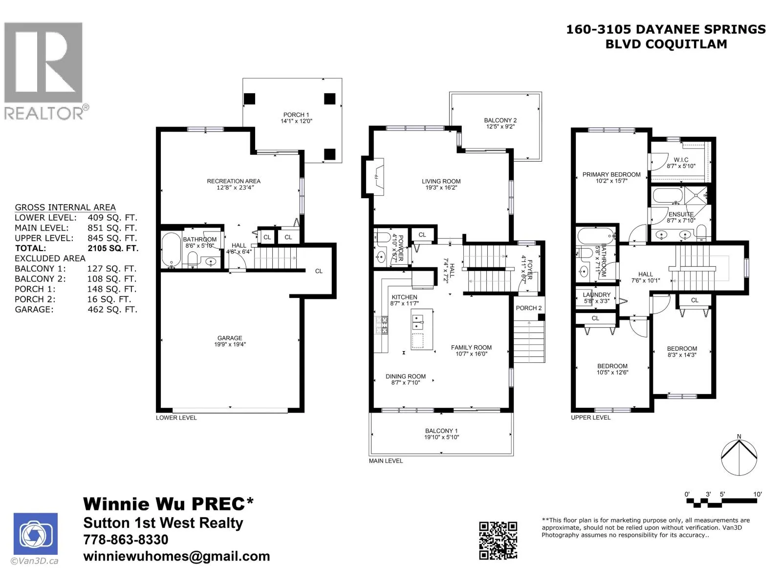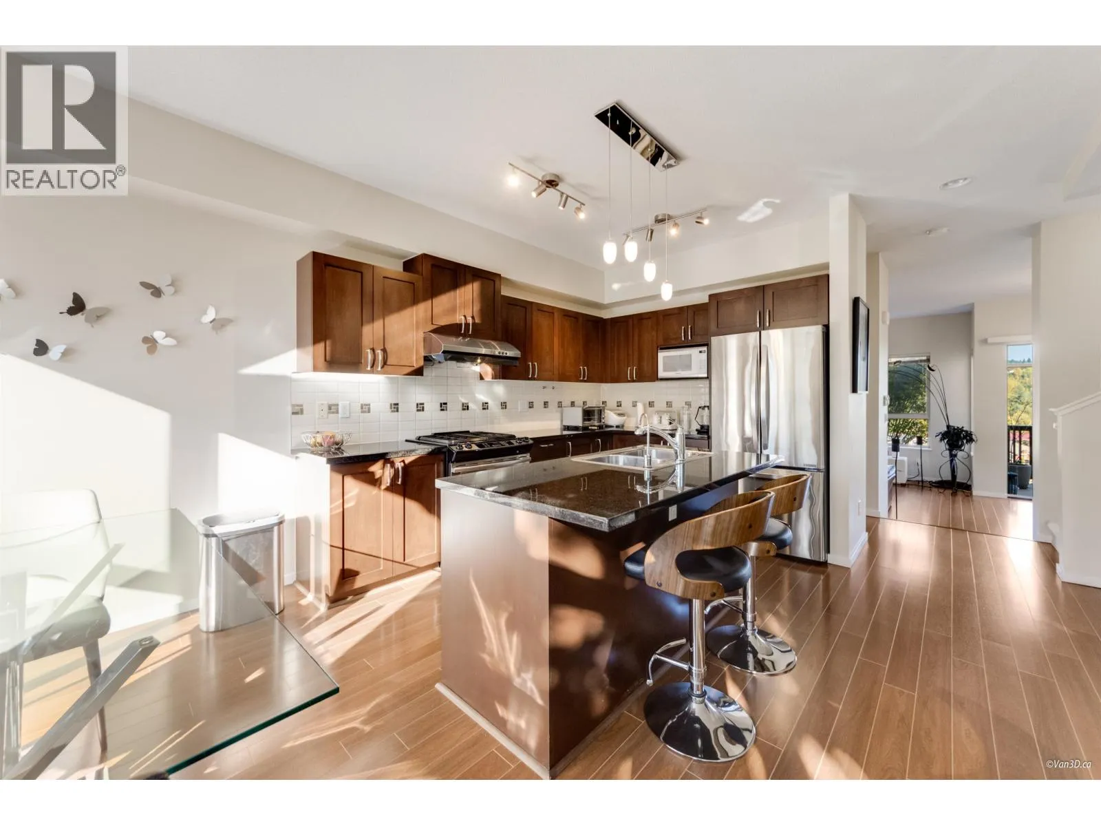Rarely available 3 bed 4 bath townhome with a large recreation room (could be 4th bedroom) in Polygon´s Whitetail Lane, located in the desirable Dayanee Springs community at the foot of Westwood Plateau. This meticulously-kept unit features bright & spacious layout, gourmet kitchen with S/S appliances & granite countertop, bright walk out basement with a large & versatile recreation room, side-by-side garage plus additional driveway parking, 2 balconies, & a fenced yard facing greenbelt for added privacy. East/west facing with views from all three levels. Recent updates: dishwasher/washer/dryer 2024, HWT 2023, new blackout blinds & lights in bedrooms. Walking distance to bus stops, schools, community centre & Lafarge Lake. 7,500 sqft exclusive clubhouse with gym, swimming pool & more. (id:27476)
