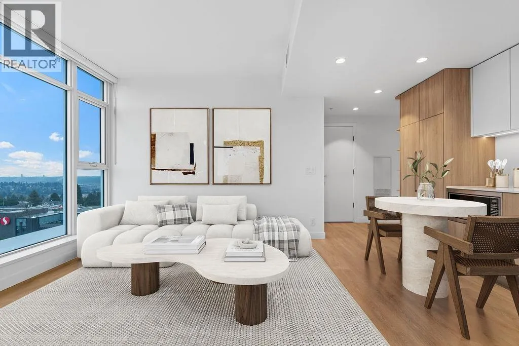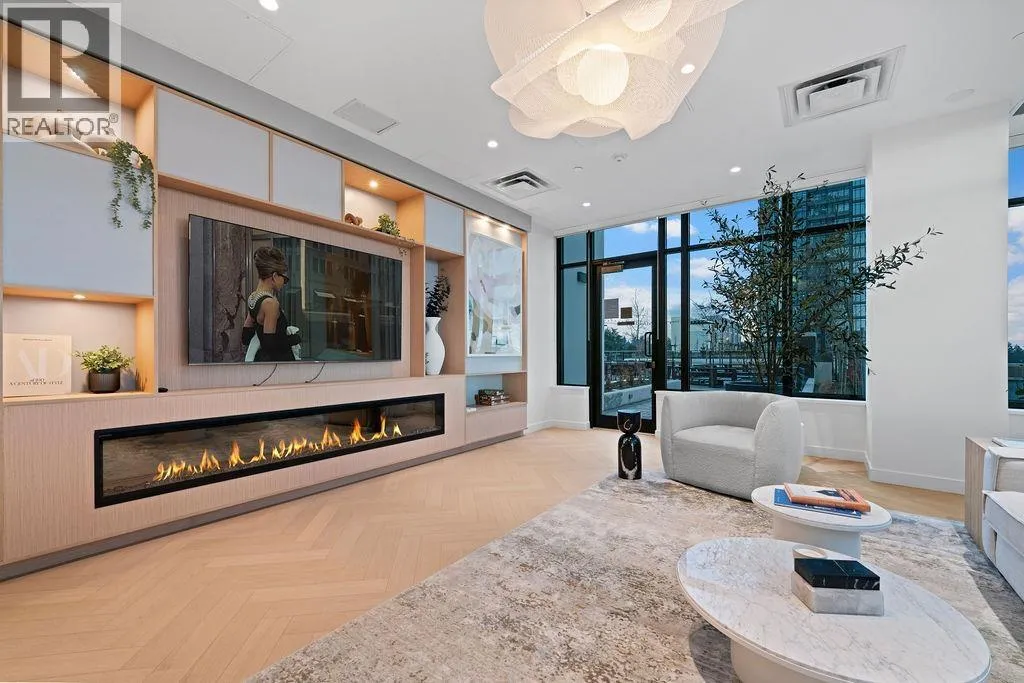Welcome into this gorgeous 2 bed, 1 bath in WEST, built by award-winning Beedie Developments. Light & Bright Corner unit featuring high quality concrete construction, nearly 9' ceilings, AC, and floor to ceiling windows. Efficient layout with open concept living / kitchen, separated bedrooms with a spacious primary walk-in closet plus an oversized 180 sf balcony. Sleek two tone kitchen featuring integrated Fisher & Paykel appliance package and quartz counter with waterfall edge. Incredible amenities incl. concierge, lounges and workspaces, fitness center, sports court, outdoor terrace & kitchen, and guest suite. Easy access to Safeway and the many shops, restaurants, and cafes along Austin Ave. 1 parking & locker included with 2-5-10 warranty in place. Pets and rentals welcomed! (id:27476)