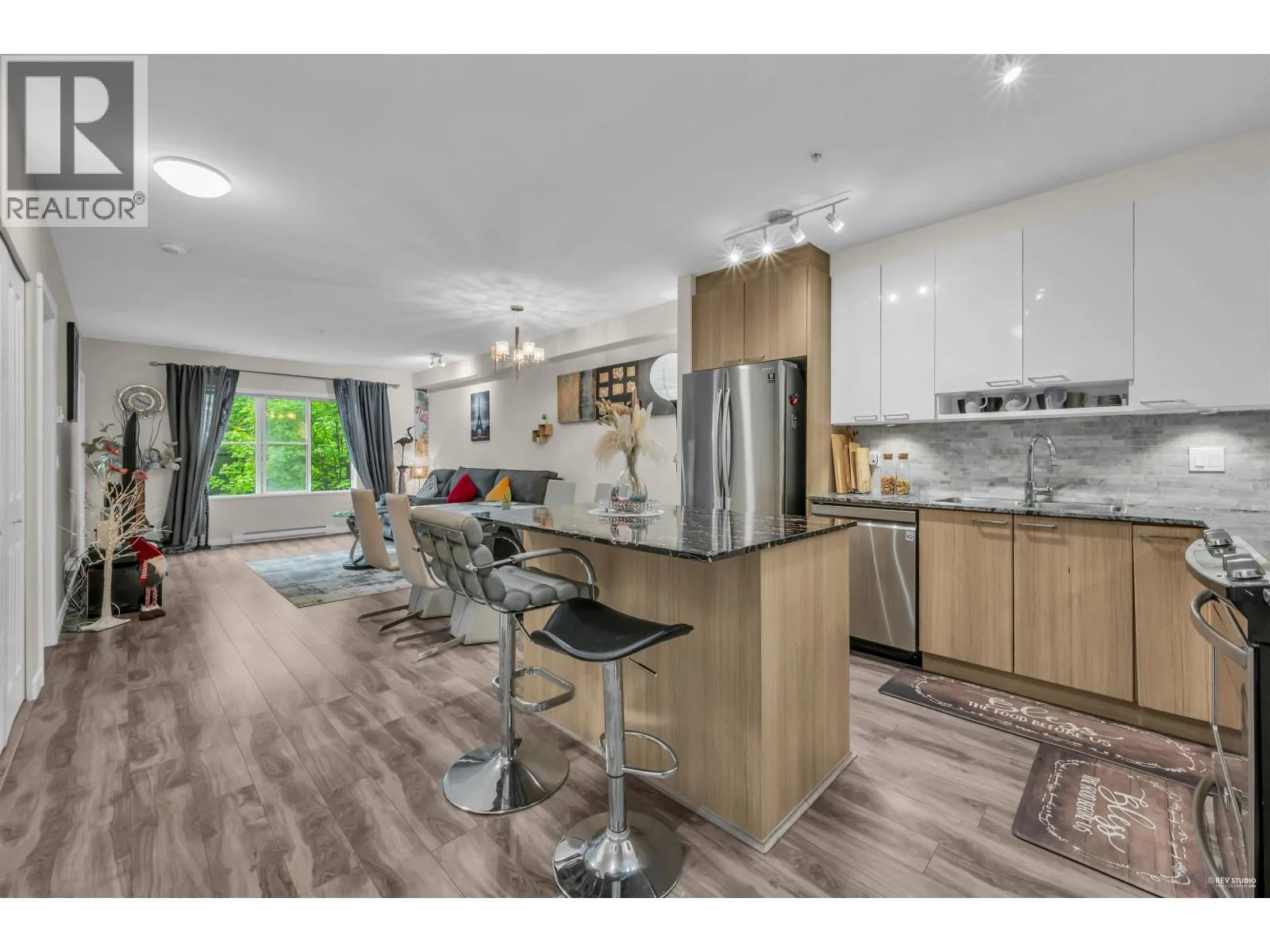 Welcome to this bright and modern 1-bed + junior suite condo in Maillardville, Coquitlam! Just minutes from IKEA, Hwy 1, and Braid SkyTrain, this home offers exceptional convenience. Features include an open layout, sleek kitchen with quartz counters and stainless steel appliances, updated laminate flooring, and large windows. The junior suite is ideal as a home office, guest room, or nursery. Enjoy a private balcony, 4-pieces bath, in-suite laundry, 1 parking, locker, gym, and amenities room. Pet-friendly and rentals allowed. Steps to shops, dining, and parks! (id:27476)