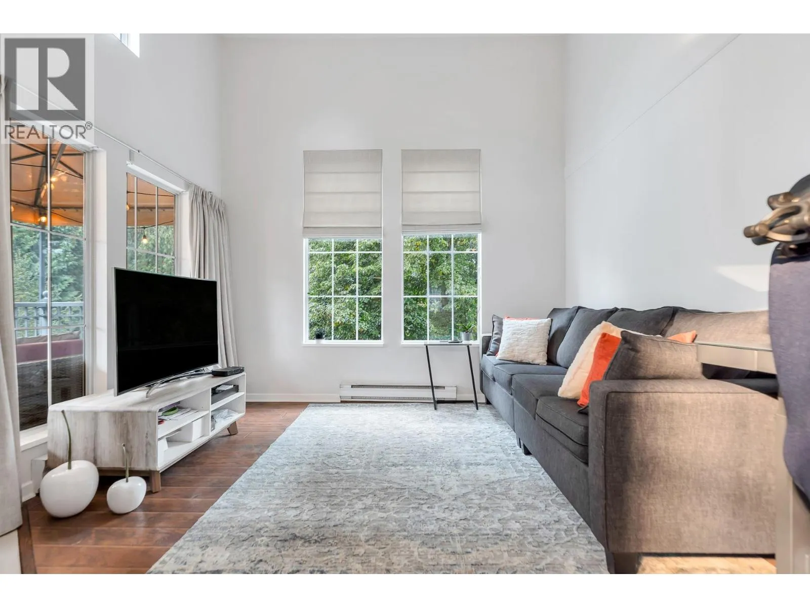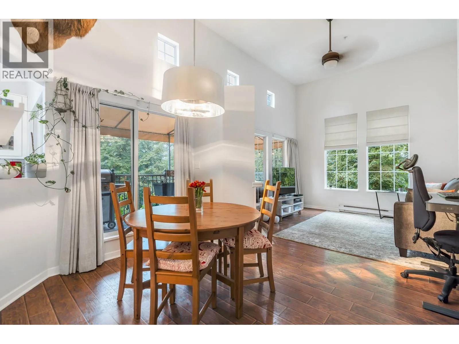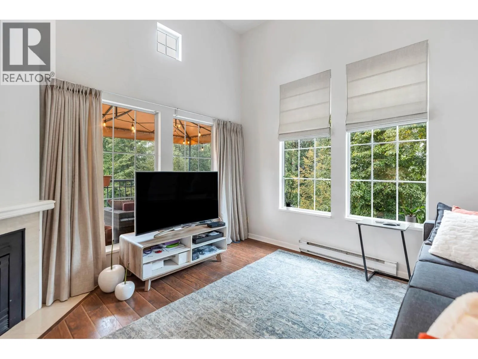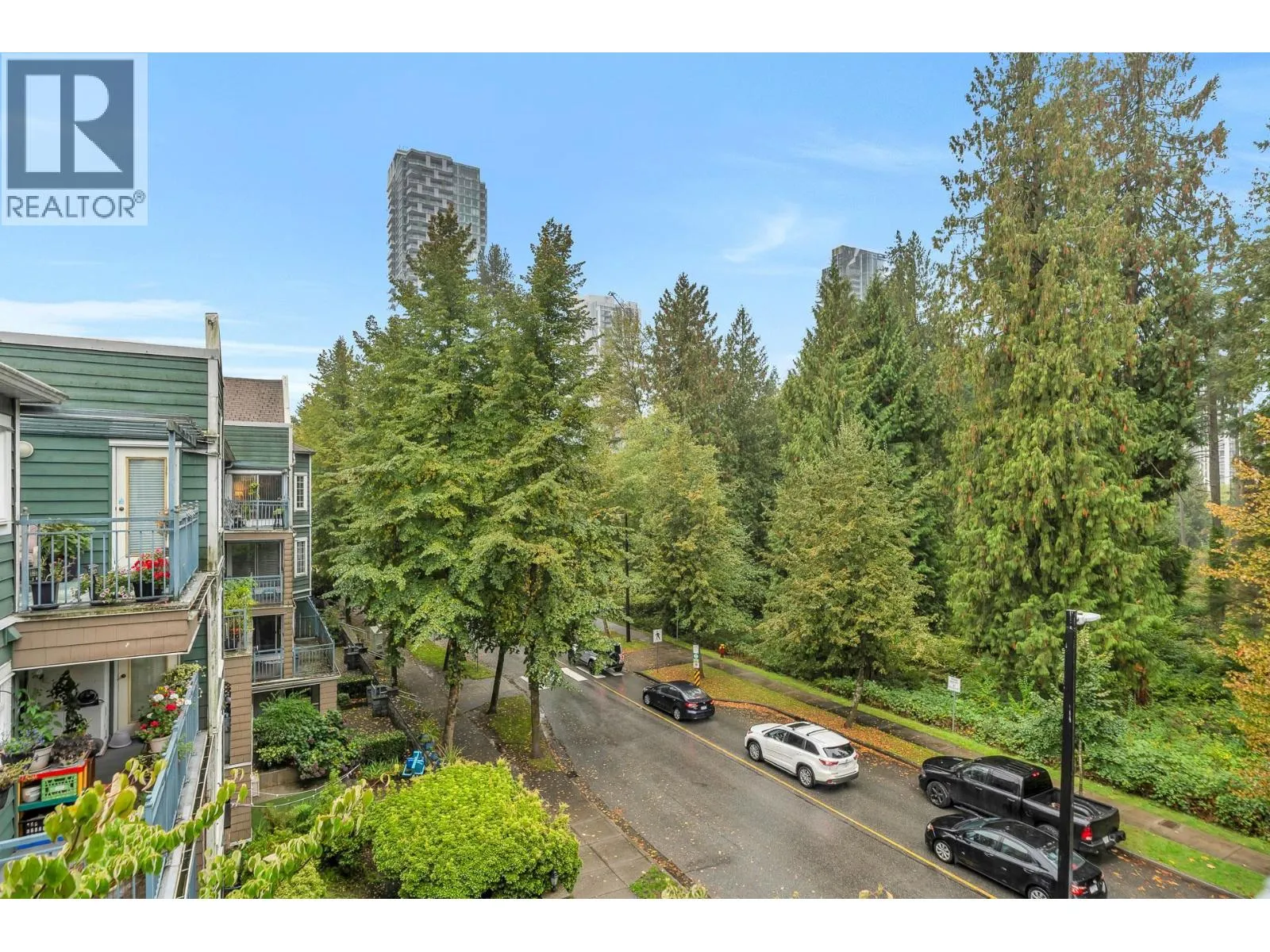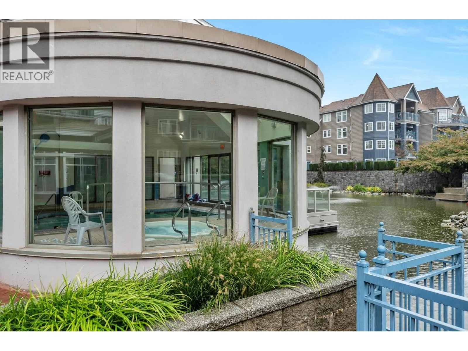 Top-floor comer gem at Lakeside Terrace! This bright and inviting 2-bed, 2-bath home impresses with soaring 13' vaulted ceilings and rare East, South and West exposures with an abundance of light. Relax on your expansive, sunlit covered deck overlooking lush greenery-perfect for year-round enjoyment. The open, airy layout features a bright kitchen, cozy gas fireplace (gas included in strata fees), and a generous primary suite with walk-through closets and a spa-inspired ensuite. Includes parking and storage. Set amid tranquil water features and gardens, this well maintained resort-style community offers an indoor pool, two hot tubs, saunas, gym, party room, guest suite-just steps from Lafarge Lake, SkyTrain, parks, and Coquitlam Centre. Discover your sanctuary at the heart of Coquitlam. (id:27476)