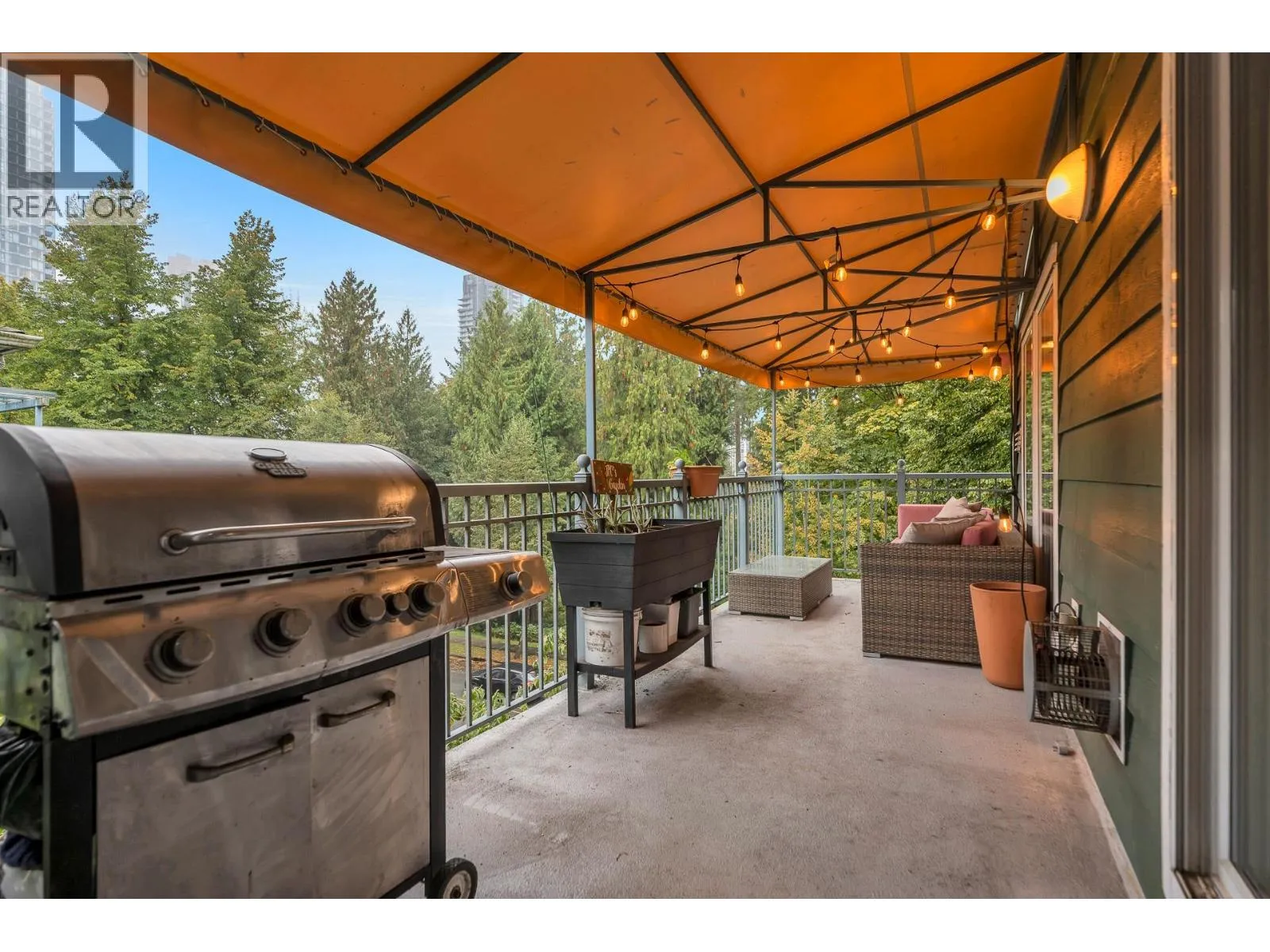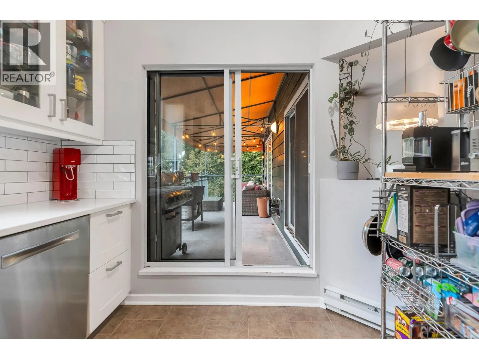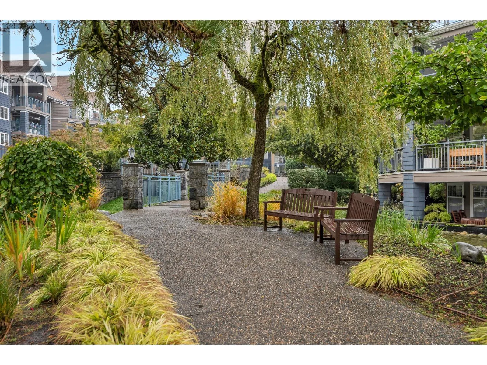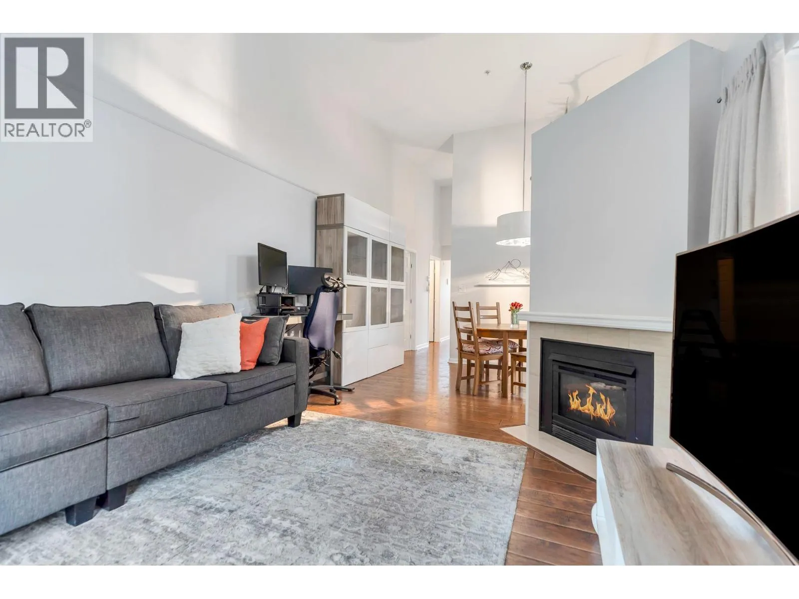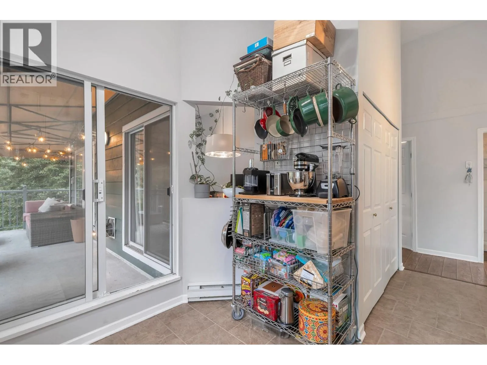 Top-floor comer gem at Lakeside Terrace! This bright and inviting 2-bed, 2-bath home impresses with soaring 13' vaulted ceilings and rare East, South and West exposures with an abundance of light. Relax on your expansive, sunlit covered deck overlooking lush greenery-perfect for year-round enjoyment. The open, airy layout features a bright kitchen, cozy gas fireplace (gas included in strata fees), and a generous primary suite with walk-through closets and a spa-inspired ensuite. Includes parking and storage. Set amid tranquil water features and gardens, this well maintained resort-style community offers an indoor pool, two hot tubs, saunas, gym, party room, guest suite-just steps from Lafarge Lake, SkyTrain, parks, and Coquitlam Centre. Discover your sanctuary at the heart of Coquitlam. (id:27476)