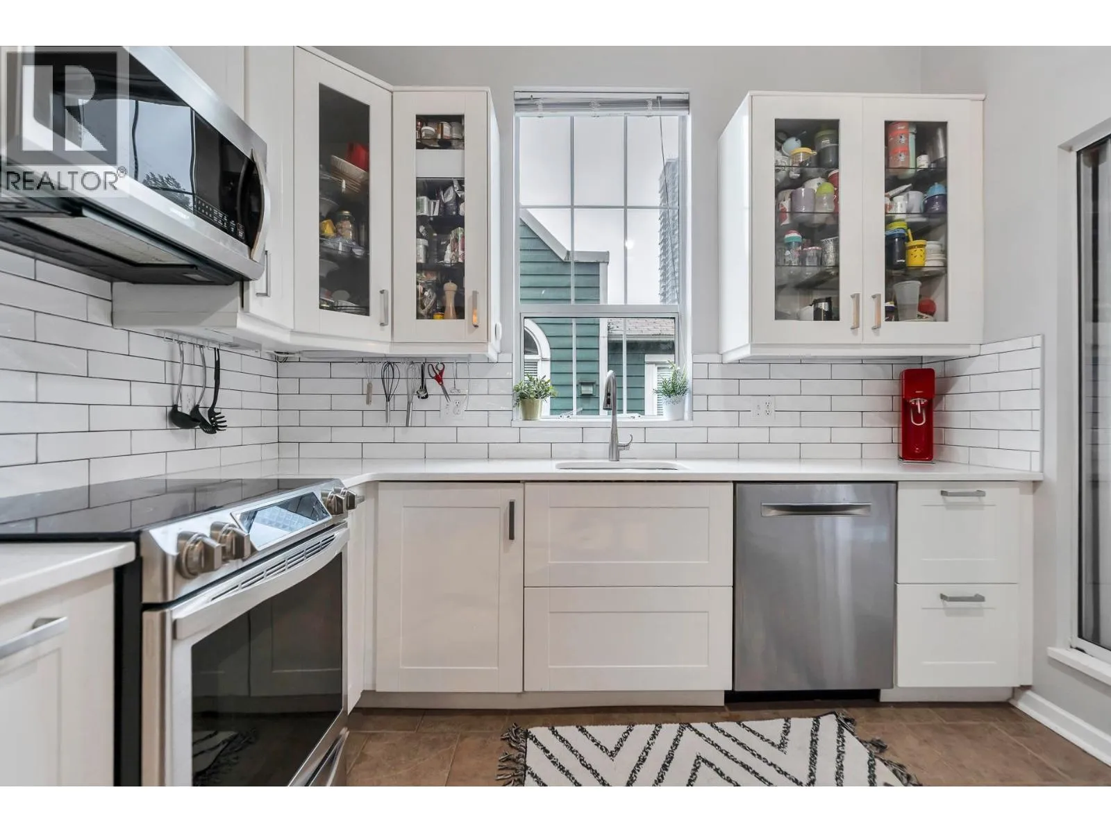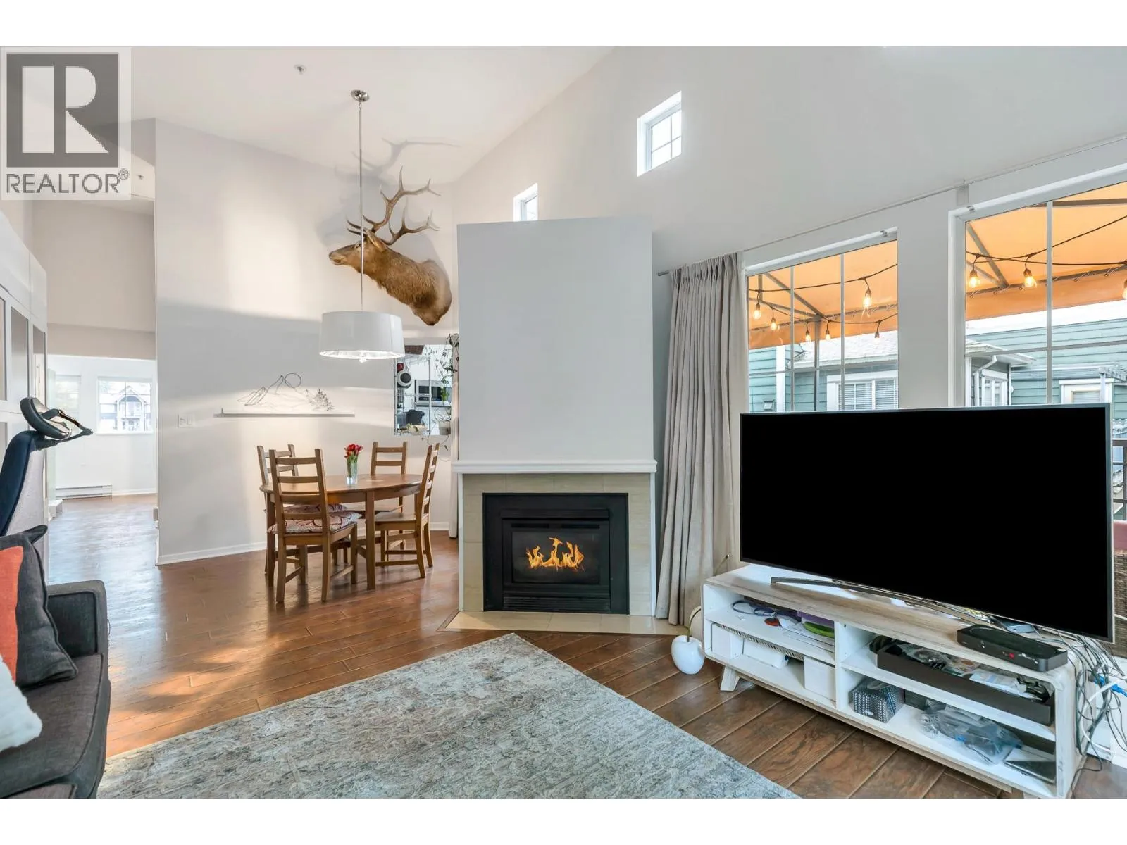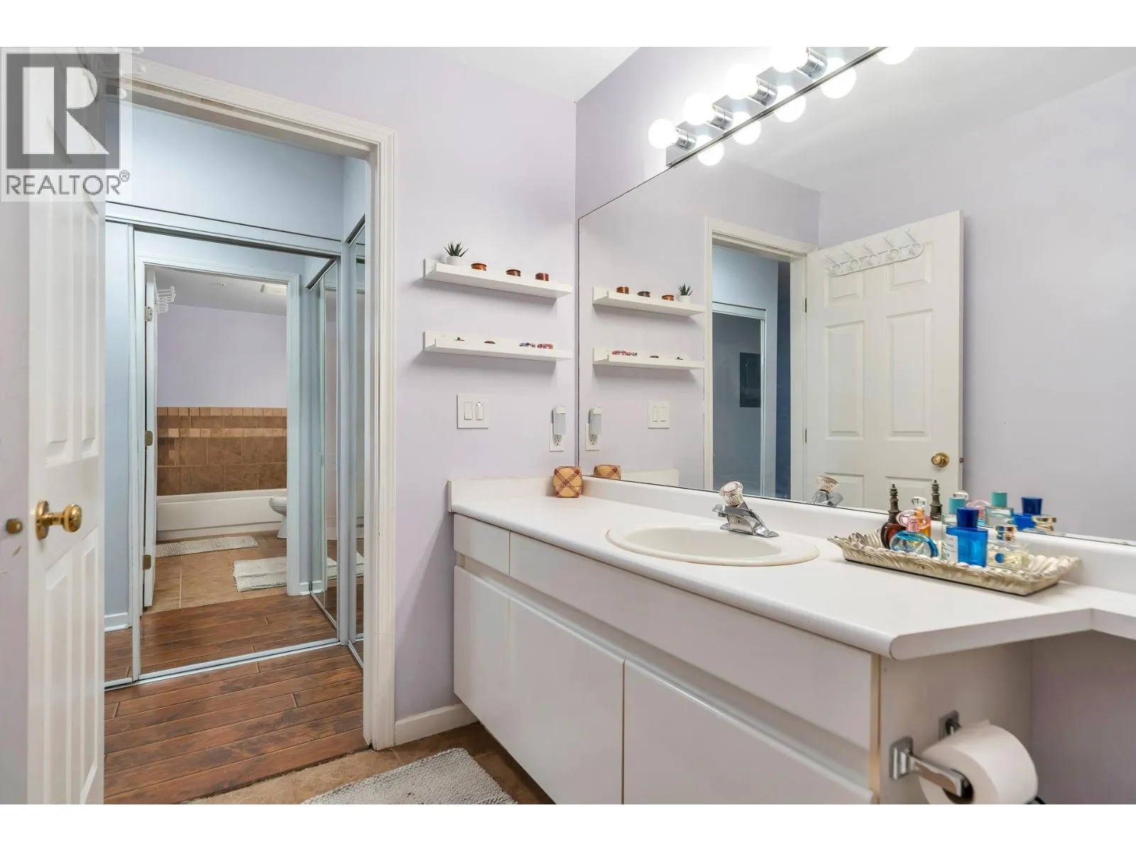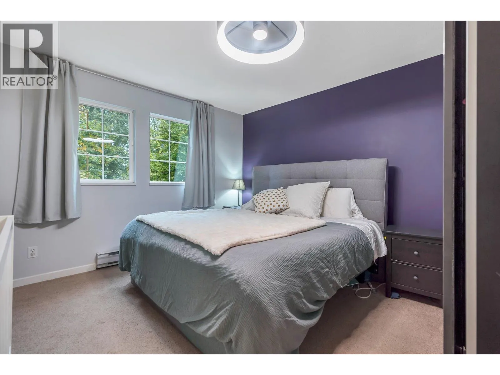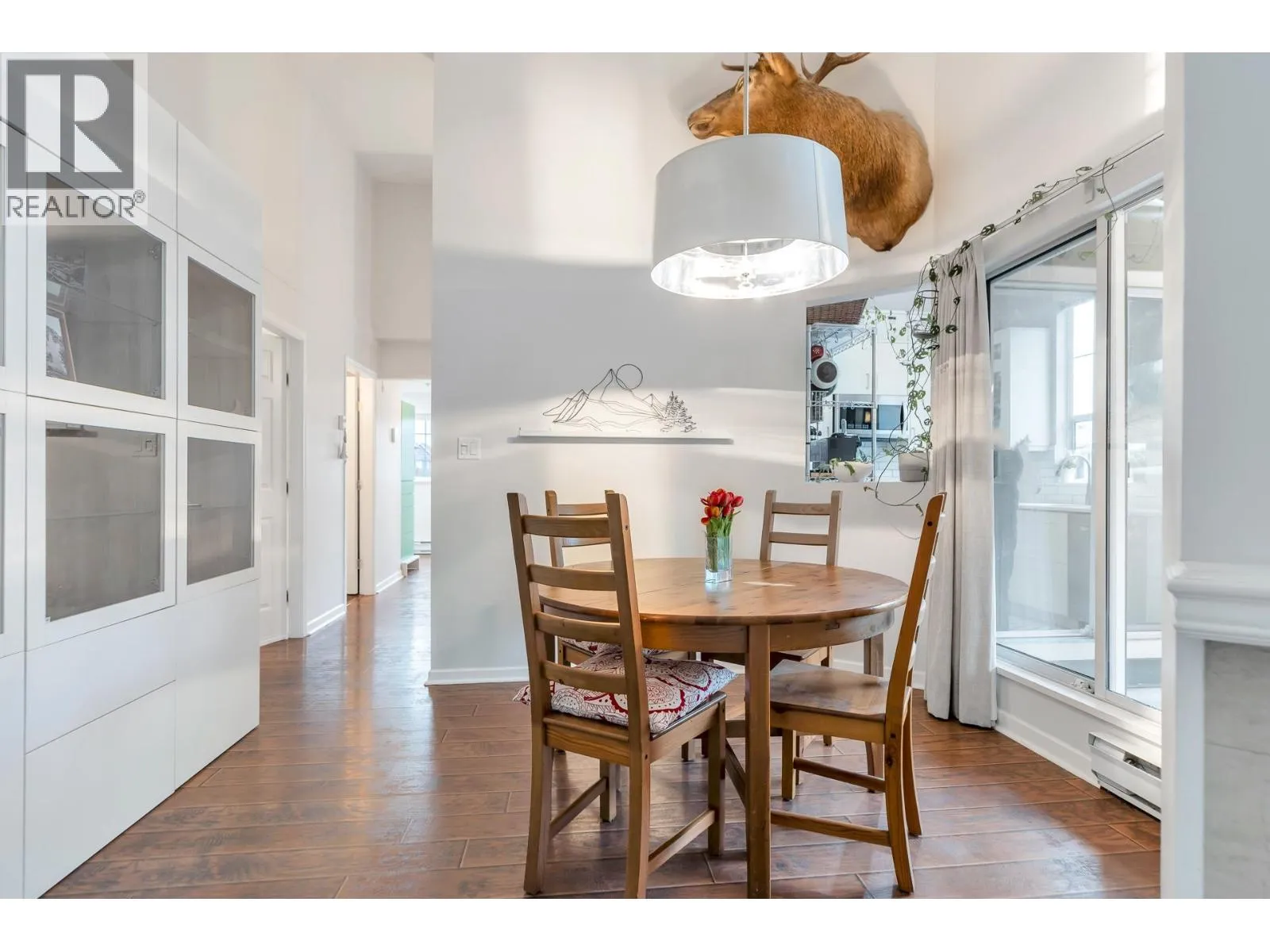 Top-floor comer gem at Lakeside Terrace! This bright and inviting 2-bed, 2-bath home impresses with soaring 13' vaulted ceilings and rare East, South and West exposures with an abundance of light. Relax on your expansive, sunlit covered deck overlooking lush greenery-perfect for year-round enjoyment. The open, airy layout features a bright kitchen, cozy gas fireplace (gas included in strata fees), and a generous primary suite with walk-through closets and a spa-inspired ensuite. Includes parking and storage. Set amid tranquil water features and gardens, this well maintained resort-style community offers an indoor pool, two hot tubs, saunas, gym, party room, guest suite-just steps from Lafarge Lake, SkyTrain, parks, and Coquitlam Centre. Discover your sanctuary at the heart of Coquitlam. (id:27476)