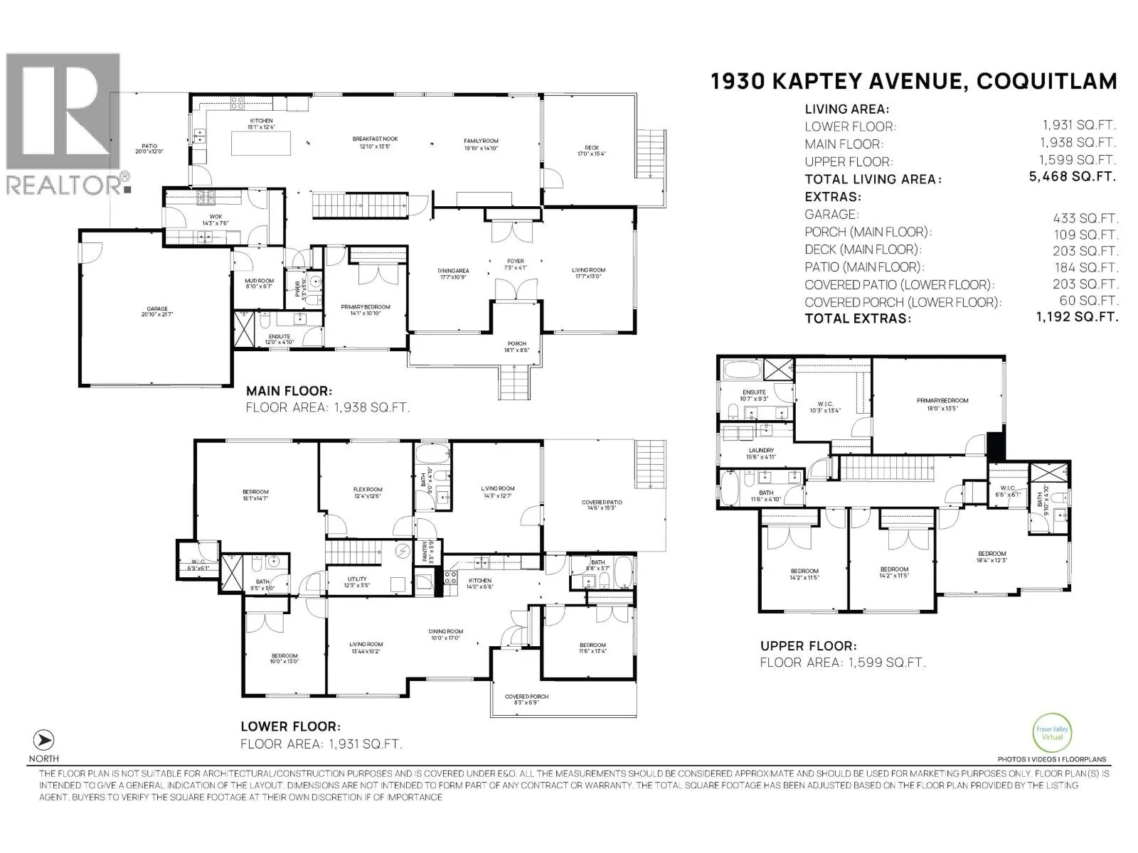 Suite Deal X 2, A fully finished walkout 2 bed suite downstairs + 2nd inlaw suite. Brand-new 8-bed, 8-bath home on a bright almost 10,000 square ft corner lot with south and west exposure. This 5,468 square ft home features a gourmet kitchen with a built-in wall oven, glass top range, and a separate butler's kitchen. The main floor includes a bedroom with an ensuite and level walk to the garage. Upstairs offers four bedrooms, including a master with a large dressing room and spa-like ensuite, plus a 2nd Master suite. Covered decks and patios extend your living space, and the side yard can accommodate RV parking. Easy access to HWY 1 and transit. Close to Cape Horn Elementary, Montgomery Middle, Centennial Secondary, Mundy Park, Superstore, and major shops (id:27476)