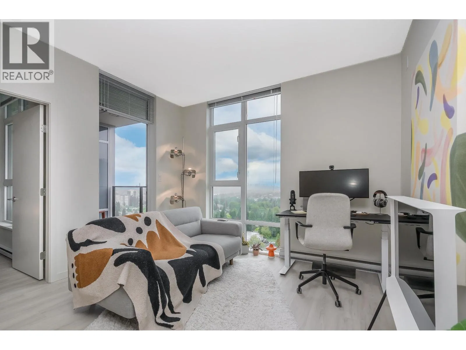 A rare opportunity to own a pristine & immaculately maintained view suite offering panoramic city & mountain views. A bright & airy feel. 2 Beds, 1 bath. The largest parking space you'll ever see; near the entry door + storage locker. Luxurious & modern finishes featuring newly updated light oak colored flooring. SS appliances, undermount mood lighting & sleek cabinetry. Building amenities: gym, lounge & outdoor BBQ. Conveniently located next to shopping, transit, entertainment & minutes to SFU. Walk to Skytrain & Lougheed Town Centre. EV Charging Stations. Secure visitor parking. Not to be missed, a terrific investment or peaceful place to call home. (id:27476)