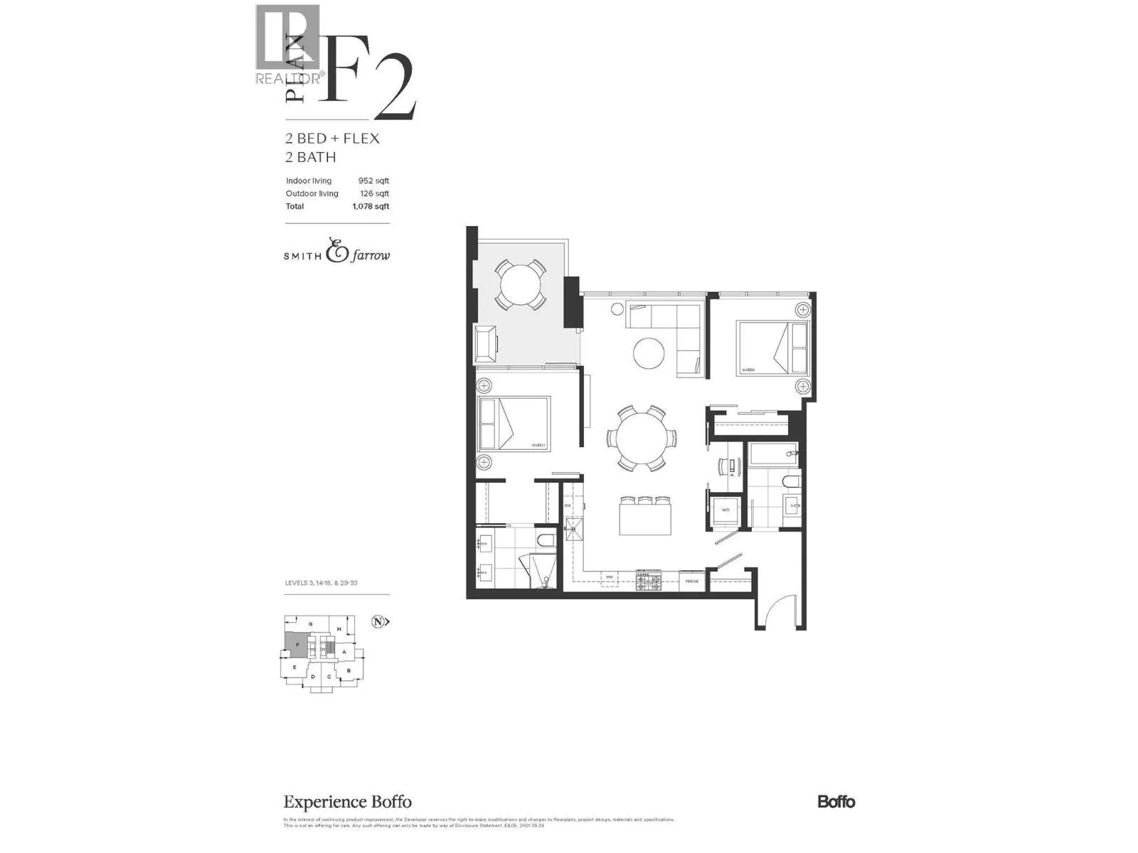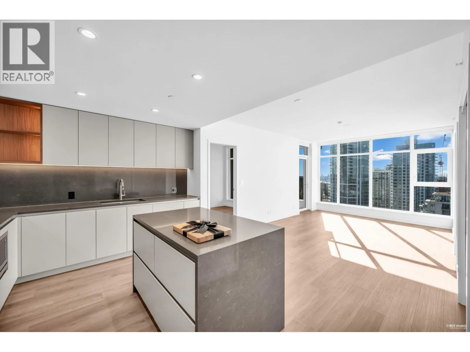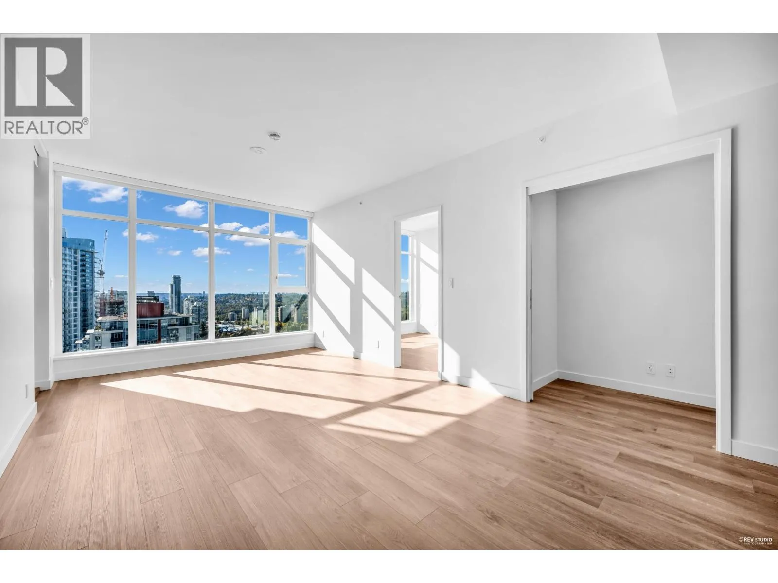 Luxury living with UNOBSTRUCTED VIEW at Smith & Farrow by Boffo in West Coquitlam. One block to Burquitlam SkyTrain, minutes to SFU, restaurants, shopping, and parks. 27th floor 952sqft of interior space with 9´ ceilings, this 2 bed + flex home offers abundant natural light with SOUTH-FACING windows overlooking the Fraser River. Extra-large kitchen features full-size 30" integrated Fisher & Paykel / Bosch appliance package, brilliant storage solutions, and waterfall island with cabinetry drawers. All bedrooms include built-in wardrobe system and European wide-plank flooring. Entertain in the comfort of AC indoors or outside on the 132sqft covered balcony with gas outlet. Extensive amenities include concierge, outdoor pool, hot tub, rooftop indoor/outdoor lounge, gym, yoga studio and more! (id:27476)