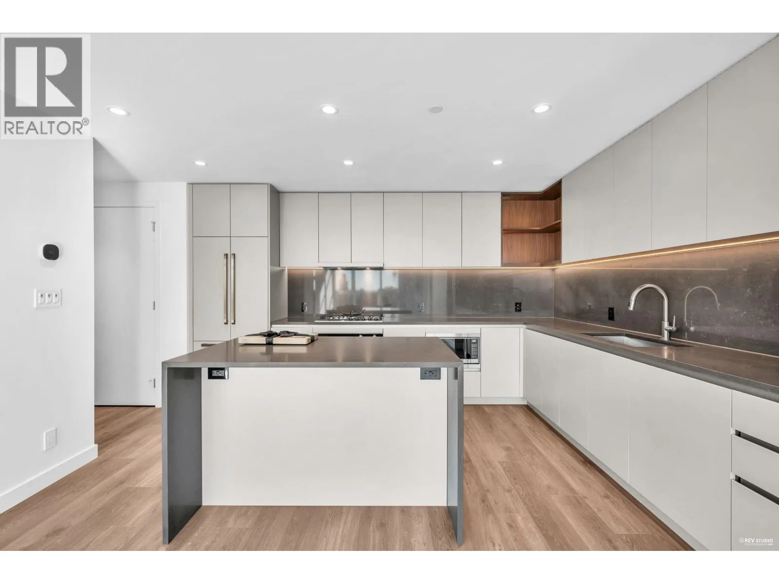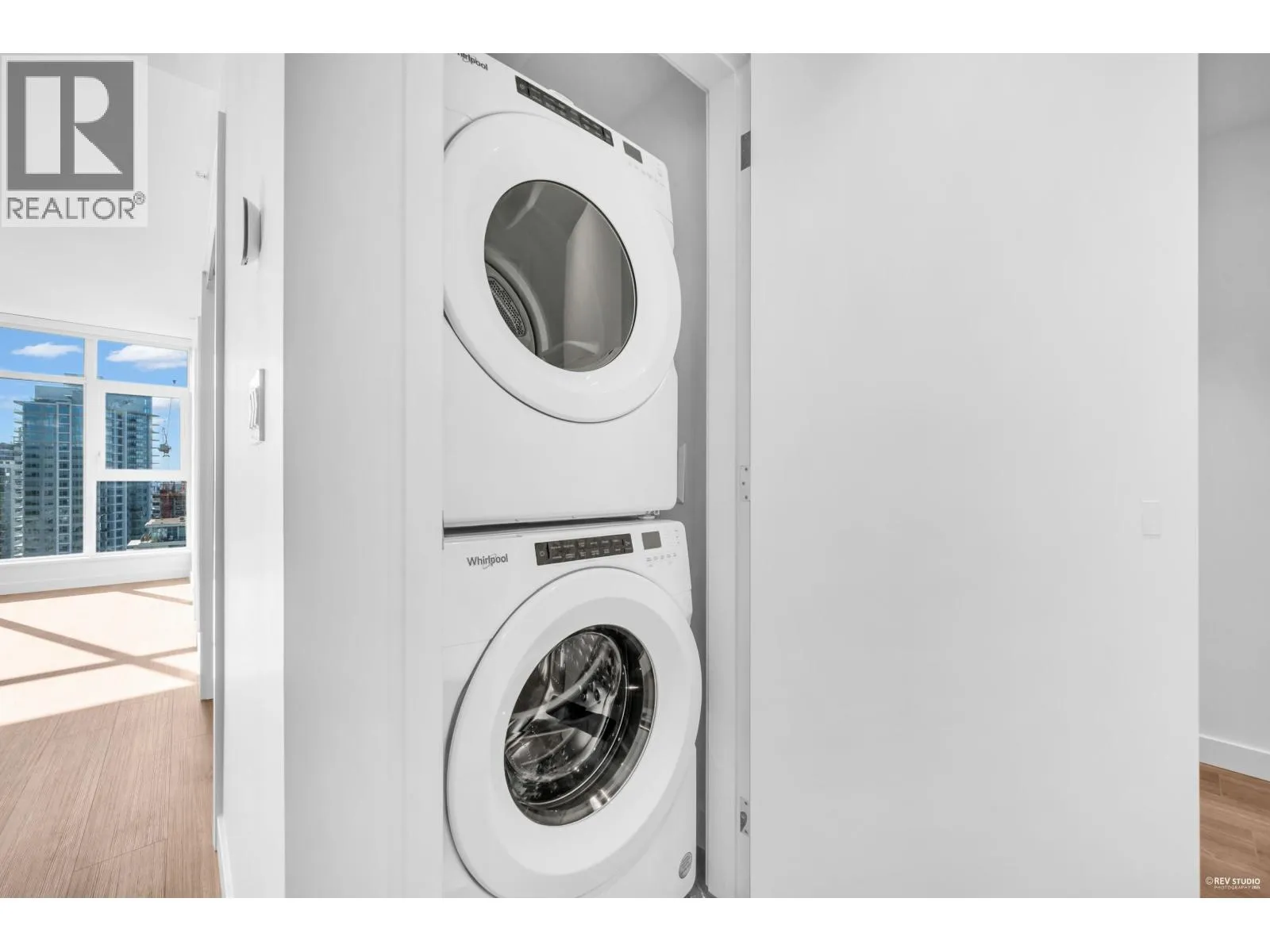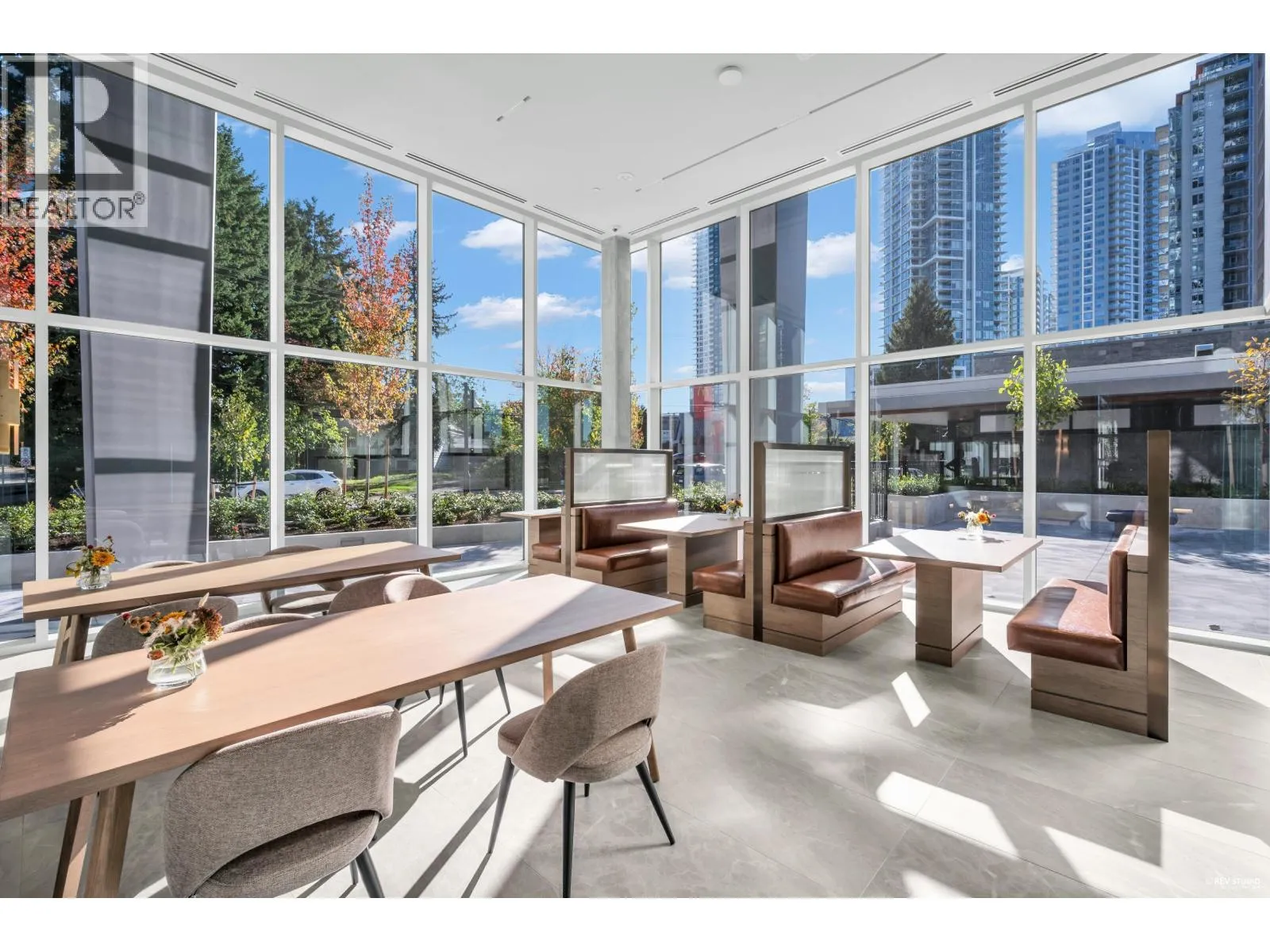 Luxury living with UNOBSTRUCTED VIEW at Smith & Farrow by Boffo in West Coquitlam. One block to Burquitlam SkyTrain, minutes to SFU, restaurants, shopping, and parks. 27th floor 952sqft of interior space with 9´ ceilings, this 2 bed + flex home offers abundant natural light with SOUTH-FACING windows overlooking the Fraser River. Extra-large kitchen features full-size 30" integrated Fisher & Paykel / Bosch appliance package, brilliant storage solutions, and waterfall island with cabinetry drawers. All bedrooms include built-in wardrobe system and European wide-plank flooring. Entertain in the comfort of AC indoors or outside on the 132sqft covered balcony with gas outlet. Extensive amenities include concierge, outdoor pool, hot tub, rooftop indoor/outdoor lounge, gym, yoga studio and more! (id:27476)
