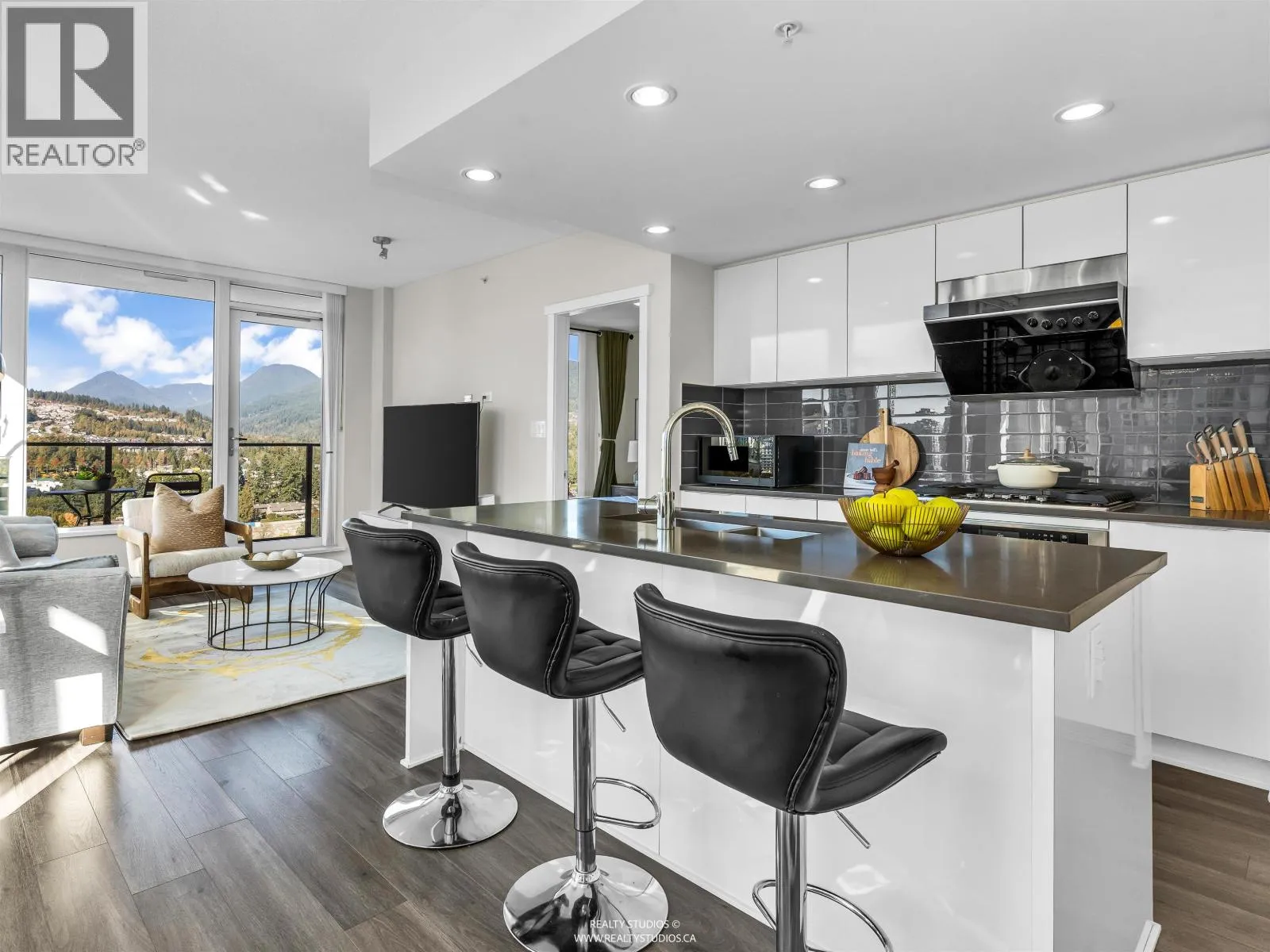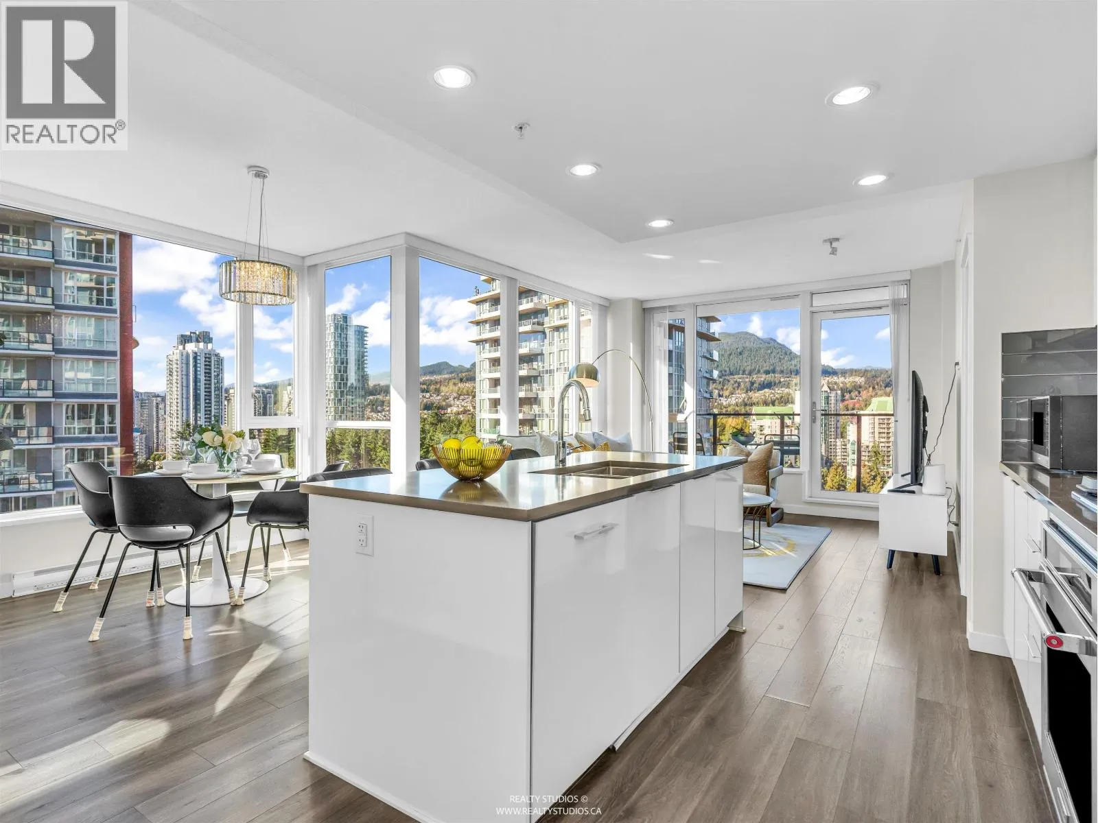 Lloyd by Polygon. Owner occupied 2 bedroom & 2 full bath bright corner unit w/open floor plan. Panoramic mountain views. Gourmet kitchen w/large island, stainless steel appliances, gas range. Freshly painted & move in ready. New washer & dryer. Laminate flooring. Pet Friendly building w/dog washing station. Steps to Glen Park. Nearby Coquitlam Centre & Evergreen skytrain station, 7 min walk to Glen Elementary School. Close to Maple Creek Middle School & Pinetree Secondary School. Building Amenities: Lounge, gym, bike room & courtyard garden. Nakoma Club: Outdoor swimming pool & hot tub, Fitness area, Gym (basketball, badminton, pickleball) table tennis, Amenity room (Mahjong & Billards), 2 guest suites & concierge. OPEN HOUSE CANCELLED (id:27476)
