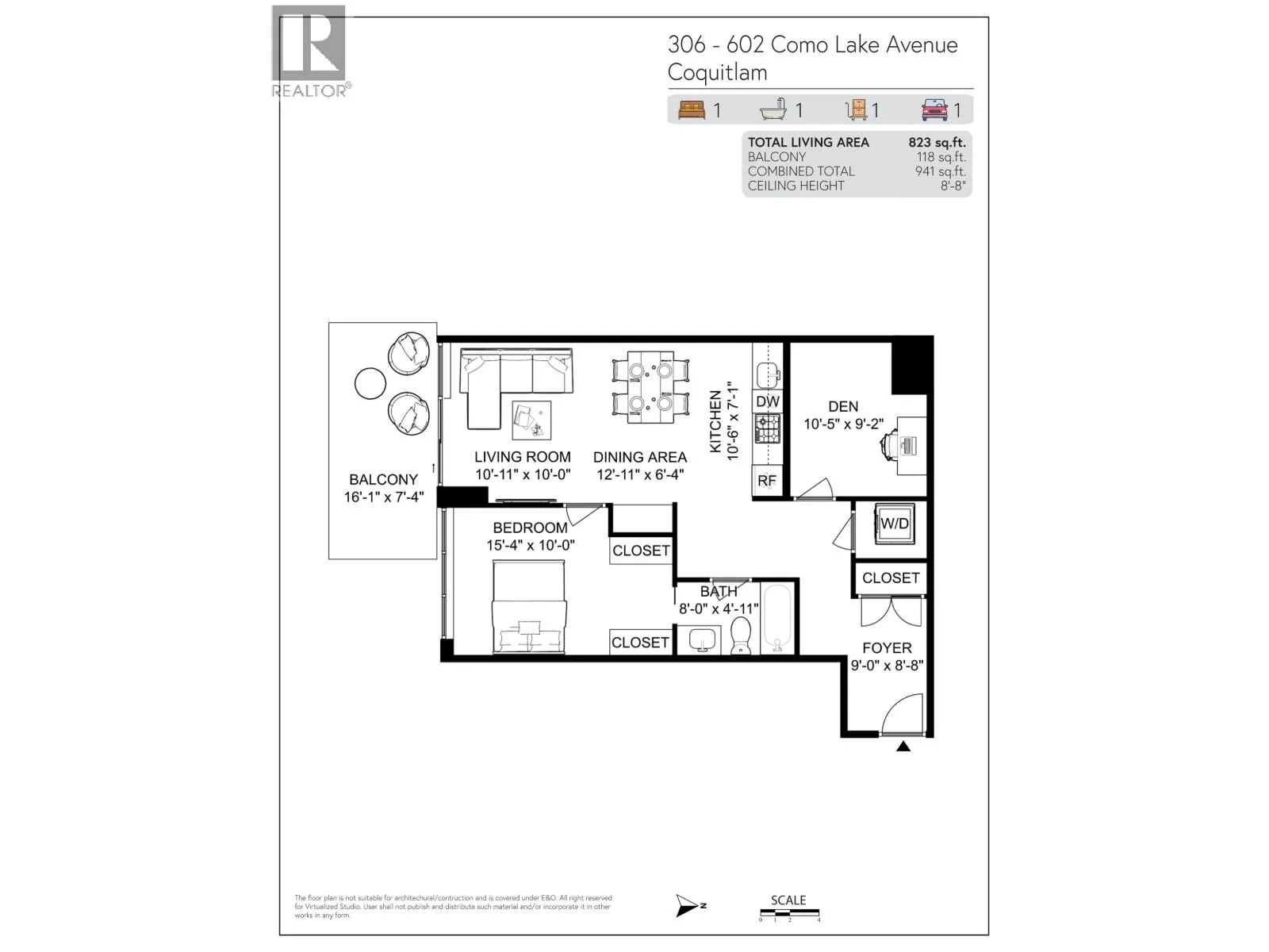 Are you looking for space? Efficient layout? This 1-bedroom and den, plus 1 Bath, boasts a 10'5"x9'2" den that feels like a 2-bedroom! NO UNITS below or beside provide privacy, peace. Uptown 1 by BOSA is conveniently located within steps to restaurants, shops, transit, schools, and quick access to HW1. Floor-to-ceiling windows allow for ample natural light, and a large patio overlooking a courtyard that faces a quiet street offers a private, covered outdoor entertaining space. The kitchen is equipped with SS European-style appliances and a gas stove for the chefs! The building offers a wide range of amenities, including a gym, yoga studio, dry and steam sauna, lounge, and courtyard. Priced low for 800+ sq.ft. Living! (id:27476)