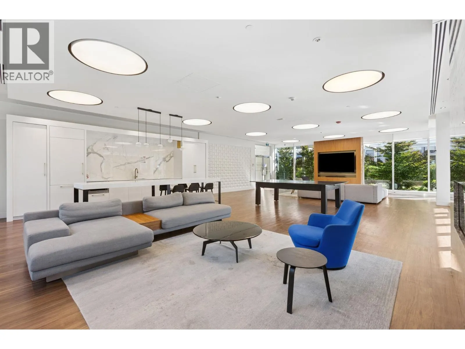 Welcome to Wynwood Green by Anthem, perfectly situated beside the Vancouver Golf Course. Bright & spacious 1 BED offers lovely views of Brookmere Park, mountains & city sunsets from your floor to ceiling windows & LARGE covered balcony. Open-concept layout feats wide-plank laminate, quartz countertops, almost 9 ft ceilings & AC. Sleek gourmet kitchen w/integrated Bosch appls, gas cooking, pull out pantry & smart storage will delight the inner chef. Spa inspired bath provides great storage & a shower niche in your soaker tub. Enjoy 4500 SF of amenities w/landscaped courtyard, play areas, club house, bbq & fireside lounge, gym, sauna, dog wash, workshop, guest suite & 24/7 concierge. 1 parking & 1 locker. Quiet location walking distance to City of Lougheed, PriceSmart, Skytrain & more. Some photos virtually staged (id:27476)