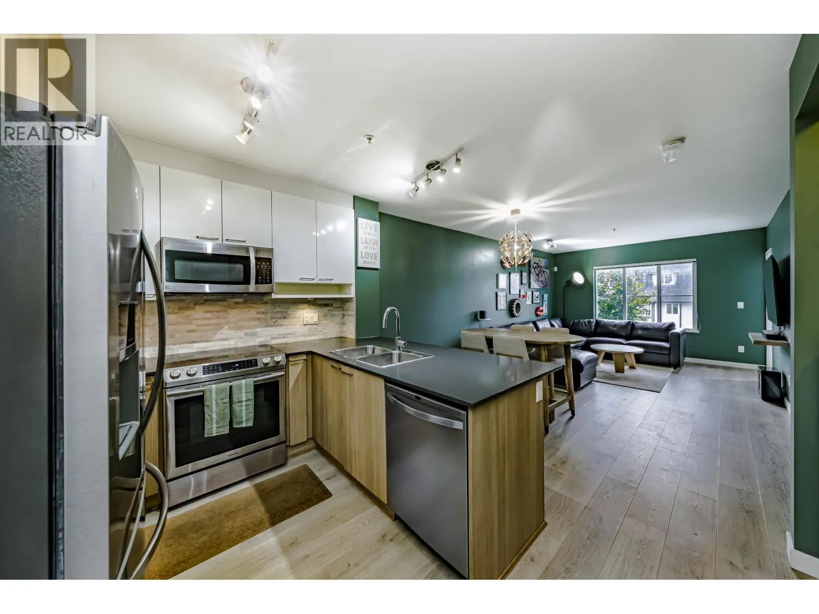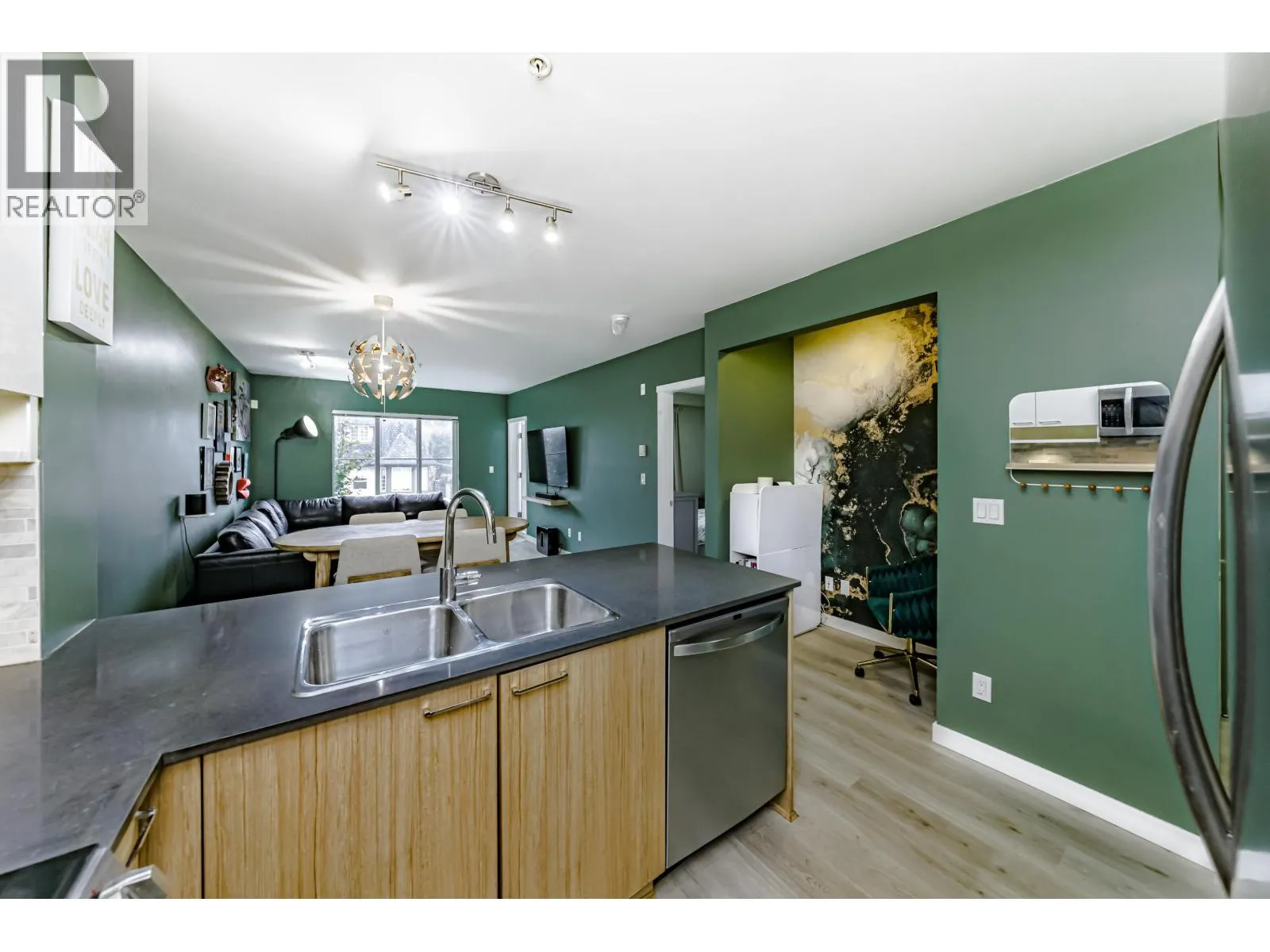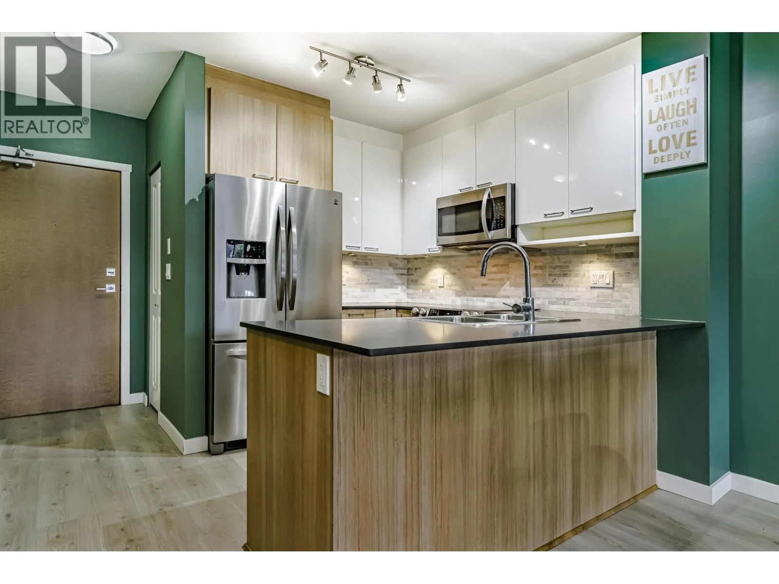 Welcome to this bright and spacious 1-bedroom plus den home built by Blue Tree Homes, offering modern comfort and unbeatable convenience. This beautifully maintained suite features brand new vinyl plank flooring and an open-concept layout filled with natural light. The functional den is ideal for a home office or hobby space. Enjoy excellent building amenities, including a fitness Centre, plus the added bonus of one parking stall and one storage locker. Located in a fantastic neighborhood, you're just steps to shopping, dining, recreation. IKEA, Superstore, Canadian Tire, and more are all nearby. Quick access to Braid SkyTrain Station and the freeway makes commuting a breeze. Perfect for first-time buyers, downsizers, or investors seeking a quality home in a prime location! O/H Nov 18 1-3 (id:27476)