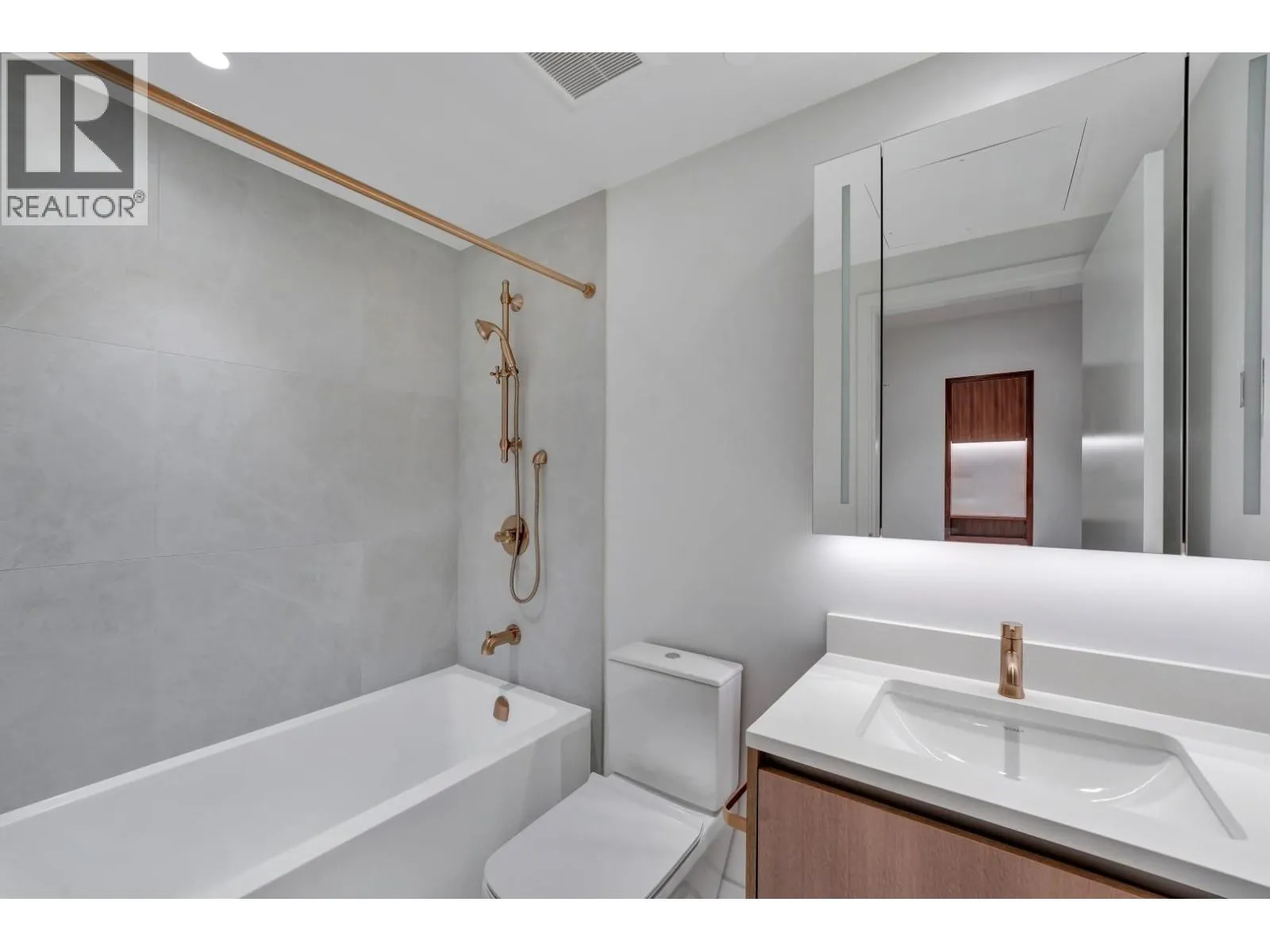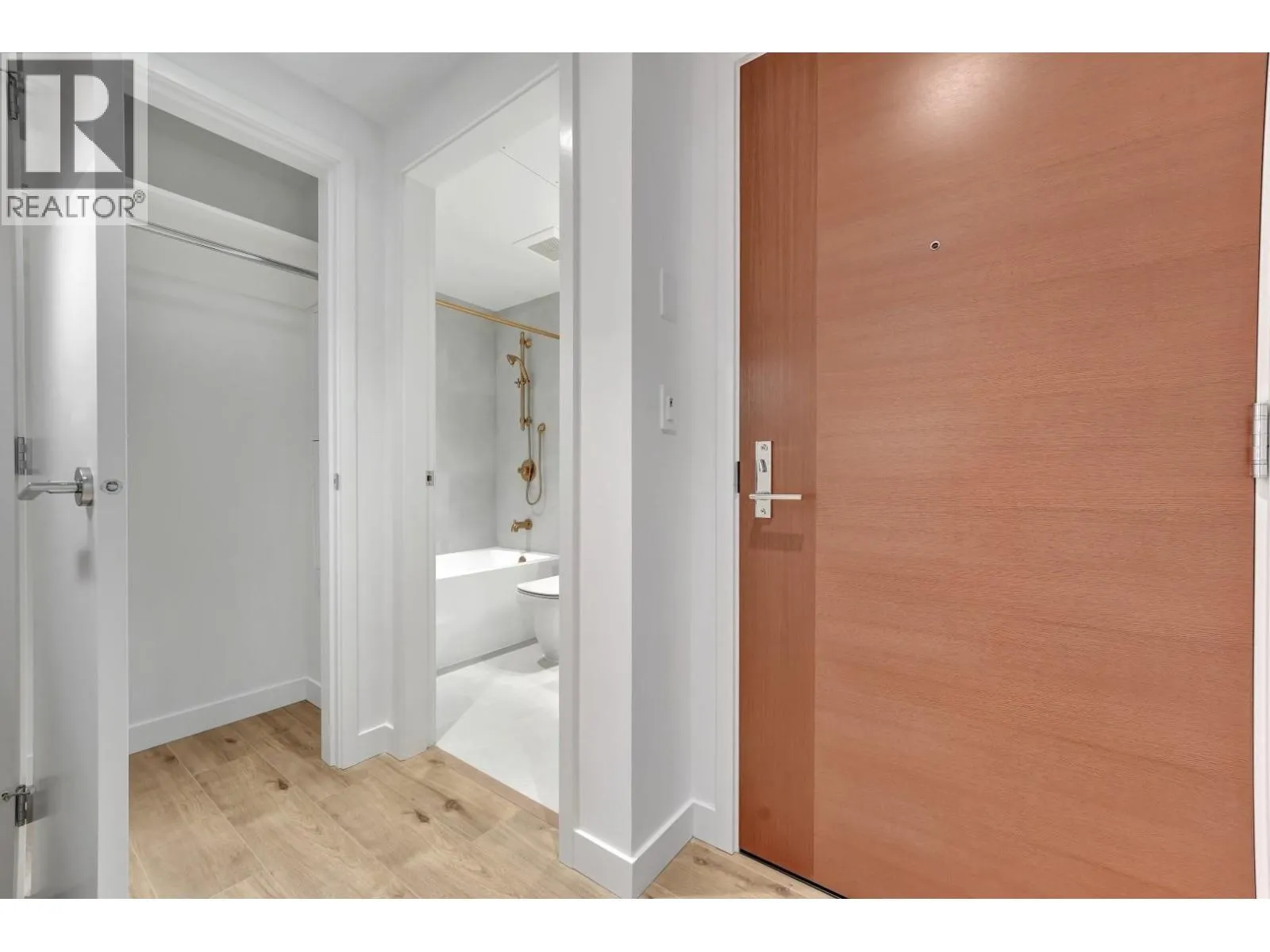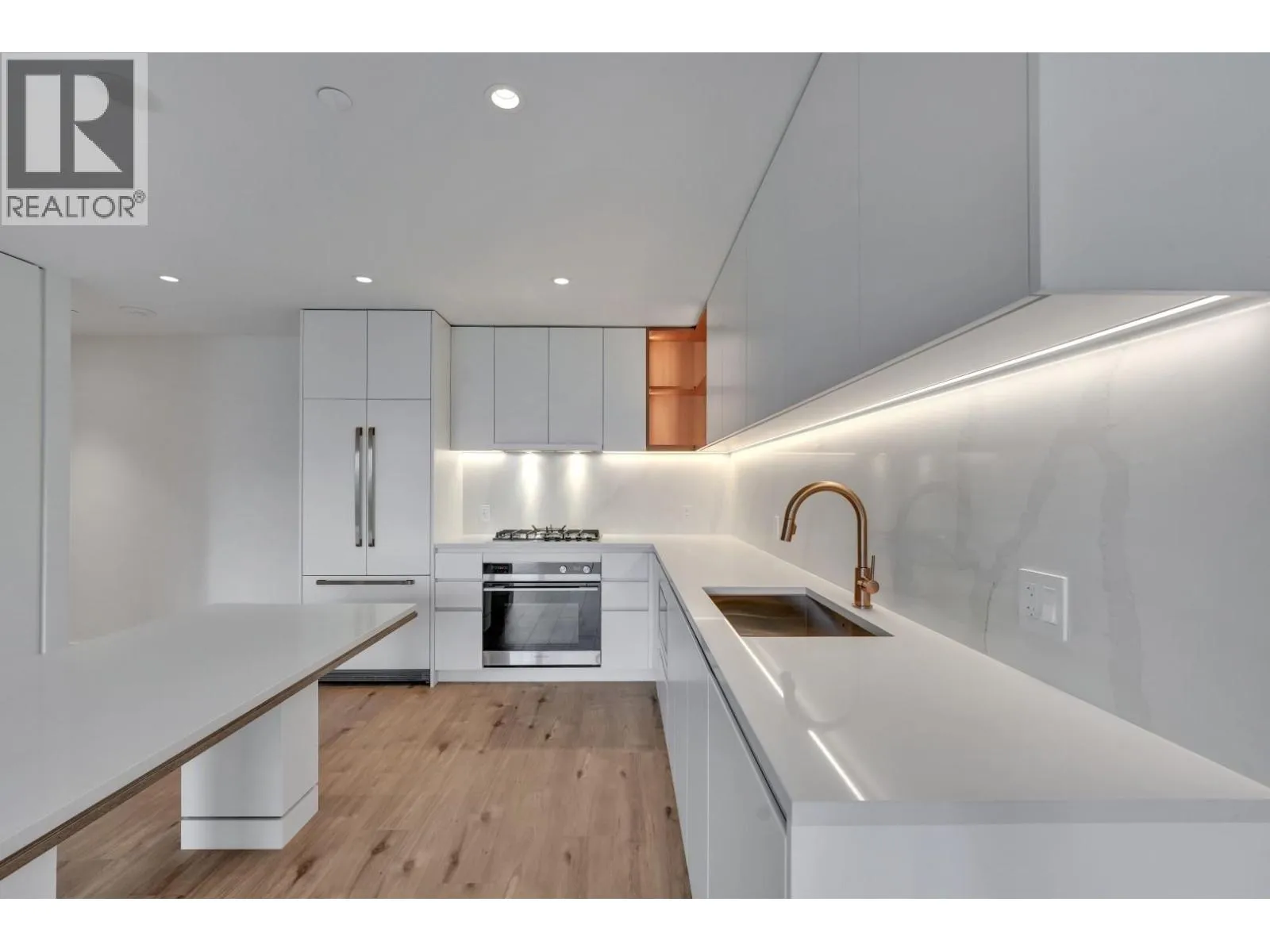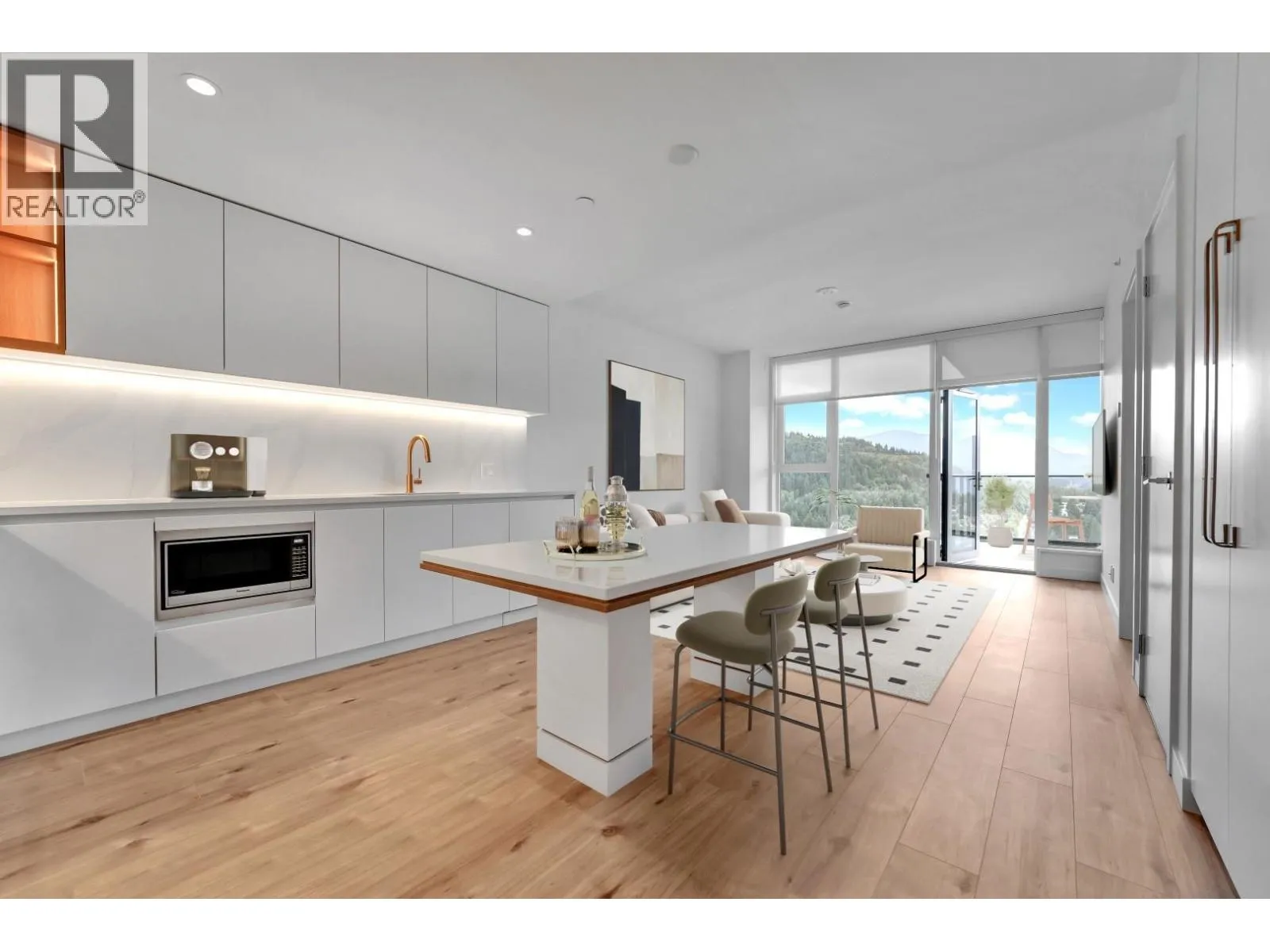 Discover the Boffo difference at Smith & Farrow, Coquitlam's new standard for refined living. This elegant 1-bedroom home features 9' ceilings, A/C, and floor-to-ceiling windows that fill the space with natural light. The chef-inspired kitchen showcases custom cabinetry, integrated Fisher & Paykel appliances, quartz countertops, and a waterfall island. Enjoy a spacious covered balcony for year-round entertaining and access to resort-style amenities-including an outdoor pool, hot tub, sauna/steam rooms, fitness Centre, rooftop lounge, and concierge service. Steps from Burquitlam SkyTrain , parks, shops, and dining. Legacy-level living by Boffo,Open Hs November 8th 2:00-4:00 (id:27476)