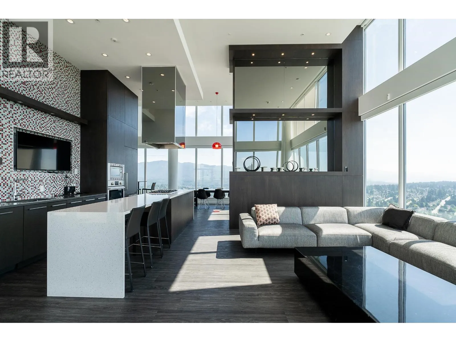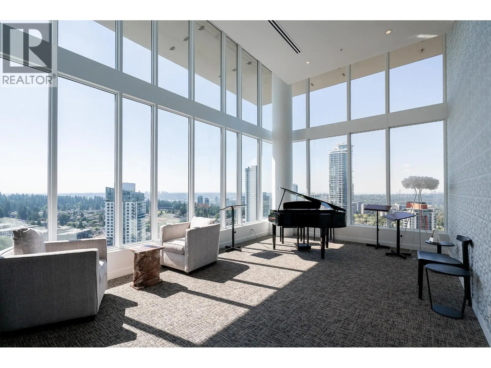 LUXURY 2 bed, 2 bath home at Clarke & Como by Marcon! Offering an elevated living experience with High-End Finishes, A/C, and sweeping views of both the City and Mountains from all rooms. Enjoy an open plan with a contemporary kitchen w/quartz counters, gas cooktop and floor ceiling cabinetry. The dining and living room are generous, and lead to a balcony that spans nearly the width of the home! Bedrooms have separation for privacy, the primary has a walk-through closet and a spa-inspired bath. 2nd bed has cheater ensuite. 9´ ceilings and floor to ceiling windows stream in natural light! Resort style amenities with fitness center, sauna, basketball court, lounge and more! Walkable lifestyle with quick access to Burquitlam Station, groceries, SFU, Lougheed Mall & trails on Burnaby Mountain. (id:27476)