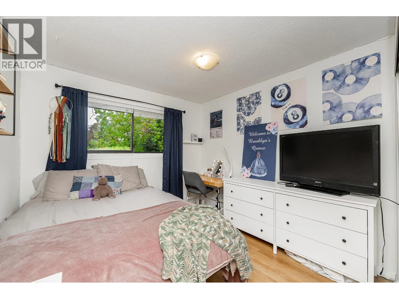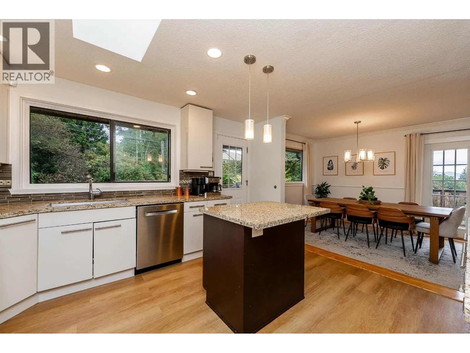 Family-friendly Ranch Park home on a 9,900 square ft corner lot on a quiet cul-de-sac! This 4 bed, 3 bath residence offers 2,082 square ft of updated living space. The main level features a spacious living room w/hardwood floors, a cozy fireplace, and a dining area w/French doors leading to a wrap-around balcony with views! The kitchen has granite countertops, updated stainless steel appliances including a gas cooktop, island, and abundant storage. The primary bed overlooks lush greenery and includes a 4-piece ensuite. The main bath is beautifully updated w/a frameless glass shower and heated floors. Downstairs is self-contained with a separate entrance, kitchen, rec room, and 4th bed. Updates include roof, A/C, furnace, and hot water tank. In a prime location with sought-after school catchment. (id:27476)